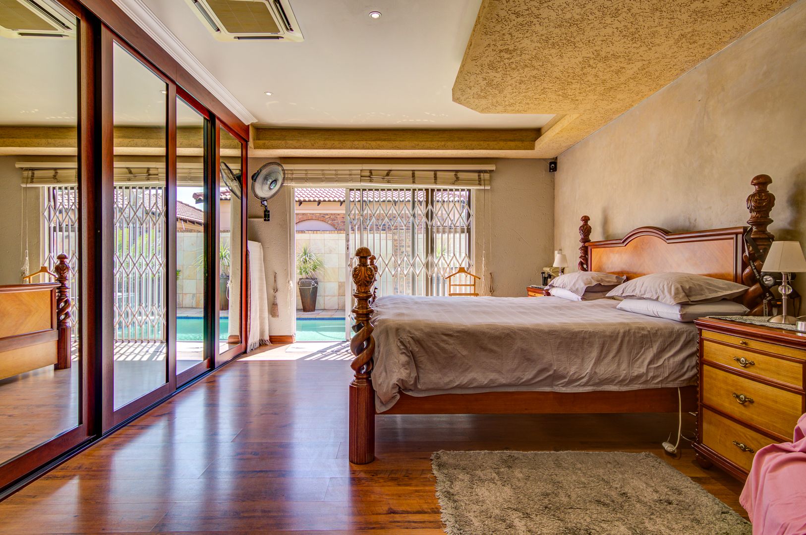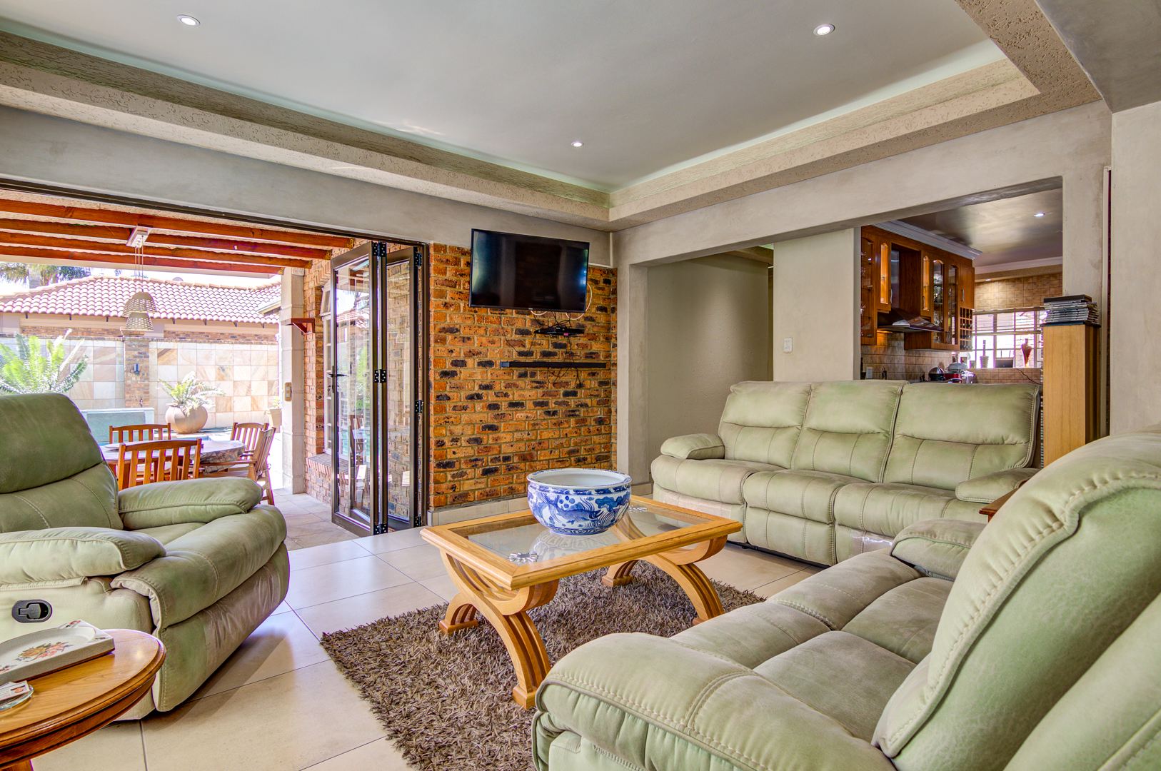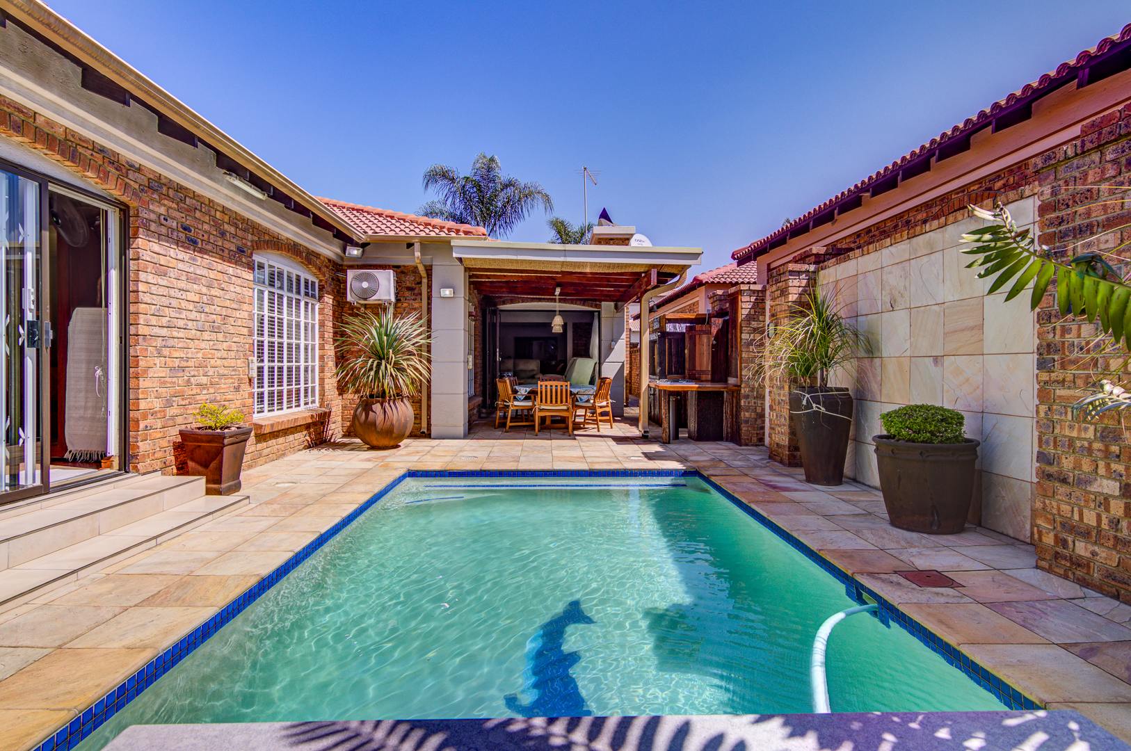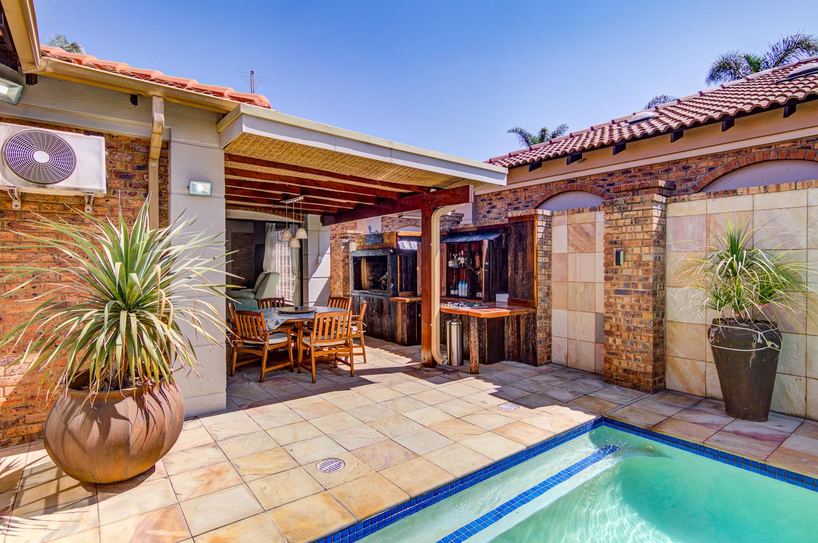 Feel your mood calm as you kick off your shoes and place yourself on your leather sofa in the open plan lounge, or alternately relax in the family room overlooking the covered patio with built in gas braai, manicured garden and pool, drink in hand.
