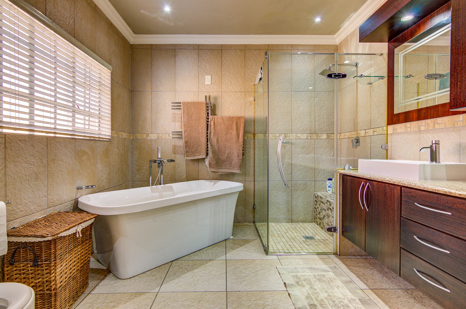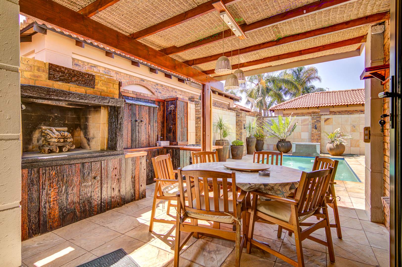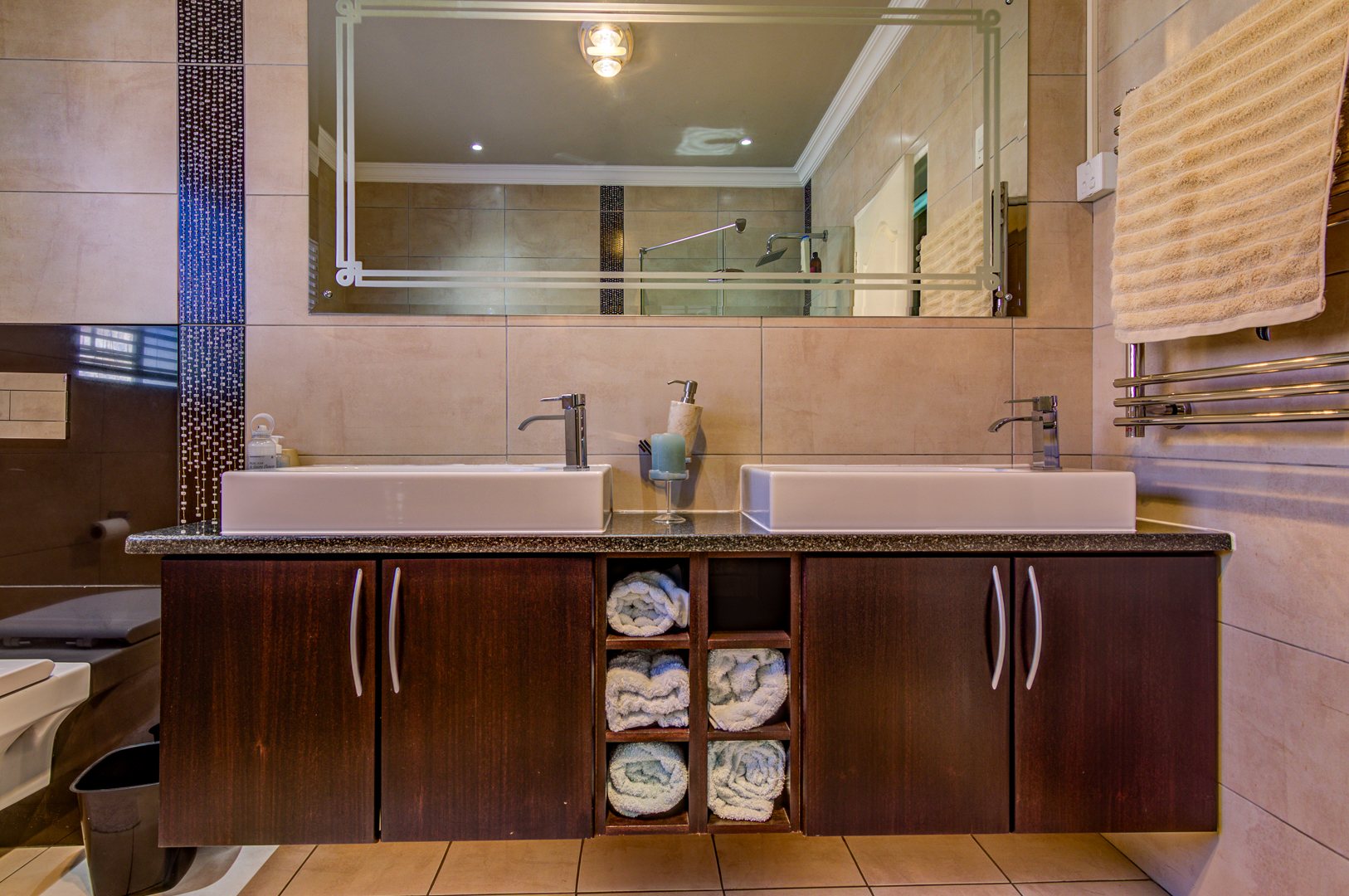 Feel your mood calm as you kick off your shoes and place yourself on your leather sofa in the open plan lounge, or alternately relax in the family room overlooking the covered patio with built in gas braai, manicured garden and pool, drink in hand.
