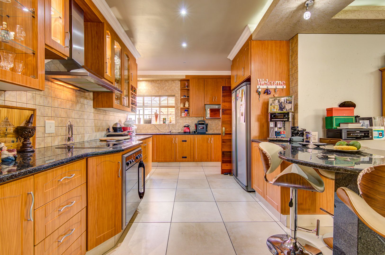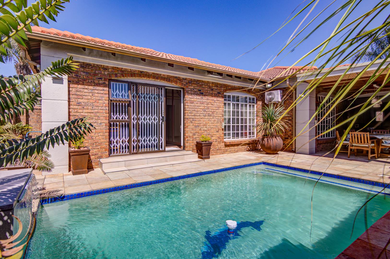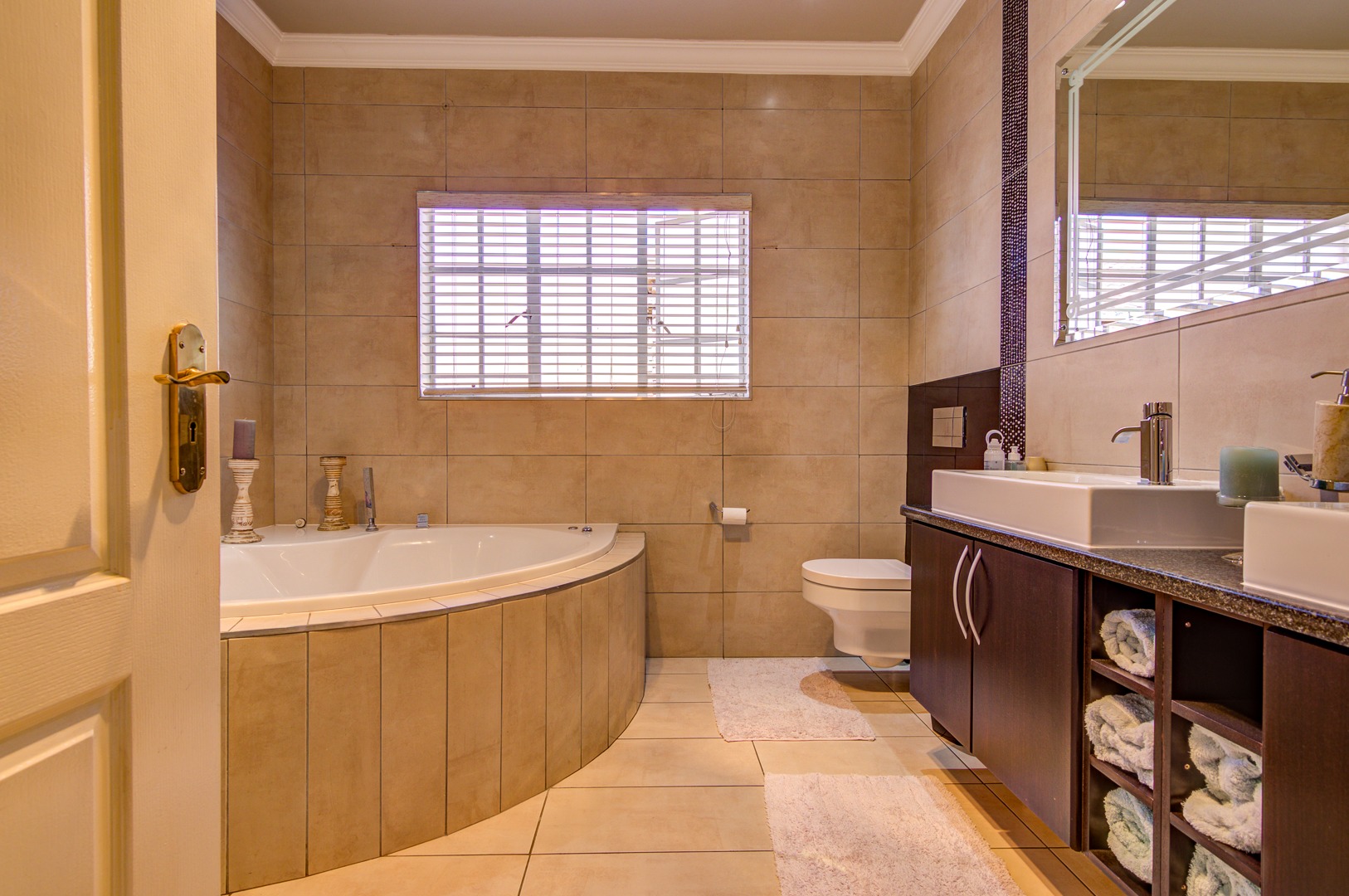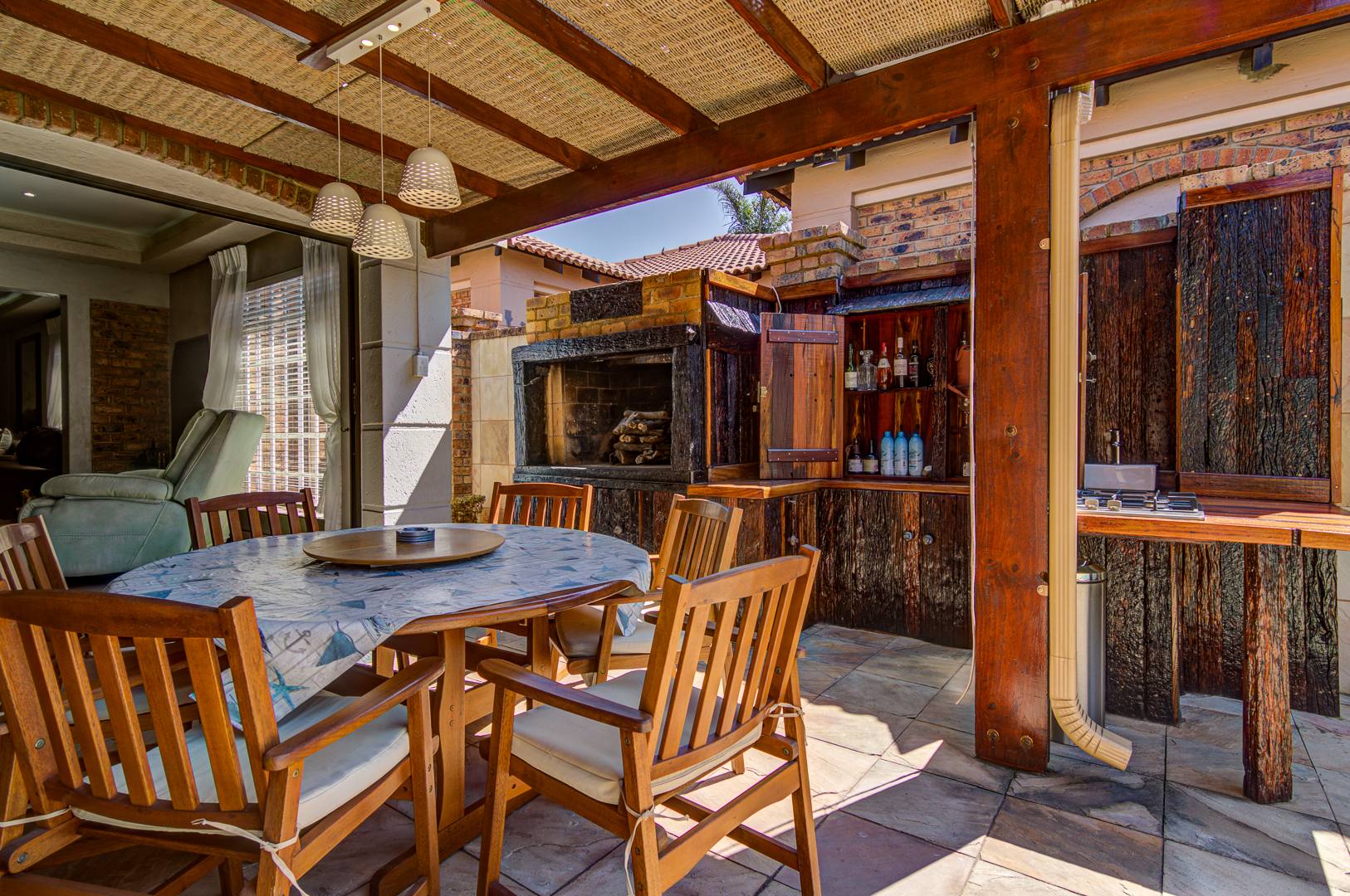 Feel your mood calm as you kick off your shoes and place yourself on your leather sofa in the open plan lounge, or alternately relax in the family room overlooking the covered patio with built in gas braai, manicured garden and pool, drink in hand.