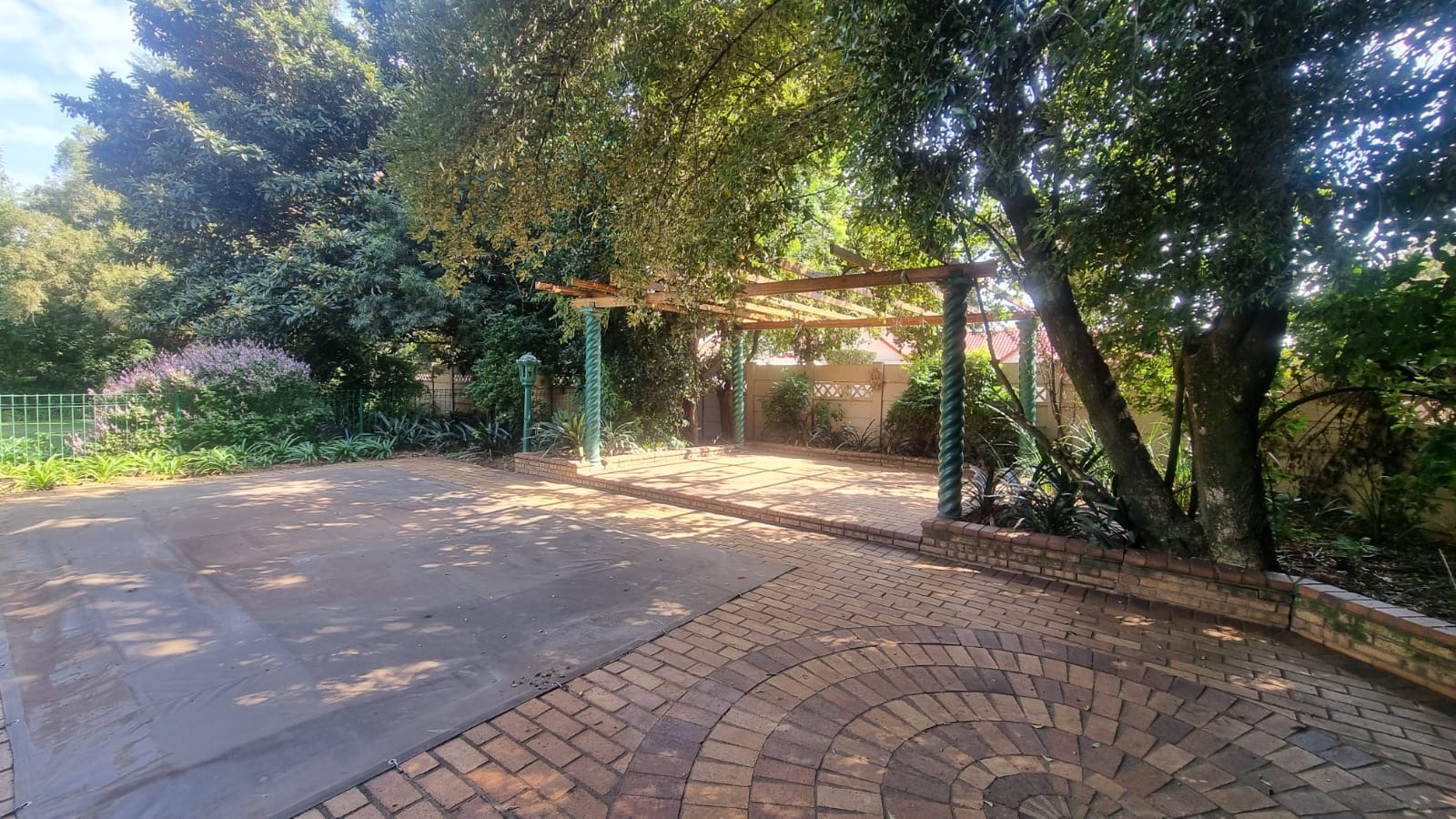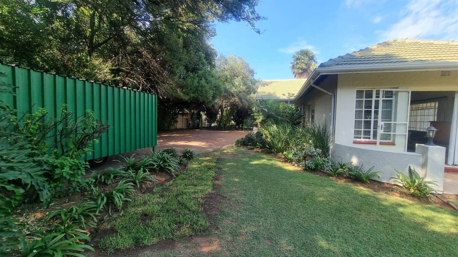 Set on a substantial 1685 sqm erf, the outdoor area presents opportunities for enjoyment and expansion. A built-in braai is perfect for outdoor cooking and entertaining guests. Practical amenities include a dedicated laundry area and a double garage, ensuring convenience and secure parking. The property is also pet-friendly, catering to families with animals.