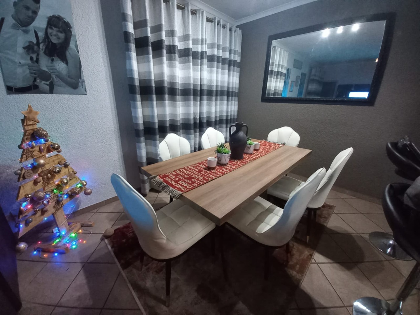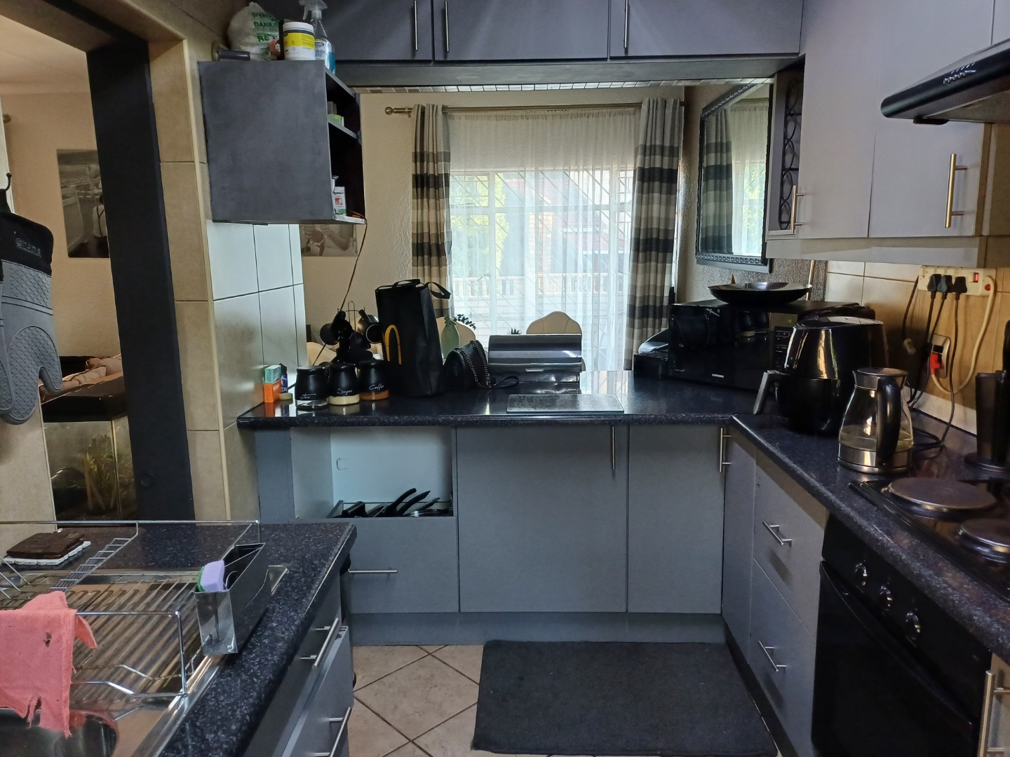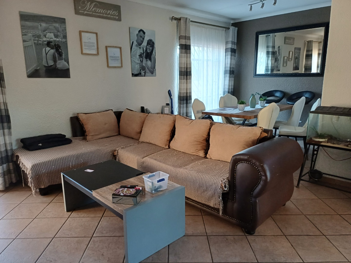 Welcome to this lovely 3-bedroom, 2-bathroom home in Lilianton, Boksburg! This comfortable 109 sqm property offers easy living with its inviting open-plan layout. The living and dining areas are bright and spacious, thanks to ample natural light, and feature durable tiled flooring throughout – perfect for a relaxed lifestyle. The modern kitchen is a real gem, boasting sleek grey cabinets, dark countertops, a built-in oven, hob, and even a wine rack. The dining area, complete with a stylish accent wall, flows nicely from here. You'll find three comfy bedrooms, including a main bedroom with its own ensuite bathroom for added privacy and convenience. Outside, discover your private backyard, secured by high perimeter walls. It features a green lawn and a wooden picnic table, ideal for outdoor enjoyment. The charming brick-paved front area enhances curb appeal, while window bars, a robust security gate, and the benefit of a gated community ensure peace of mind. This suburban gem offers a great balance of community living and convenience in Boksburg. Key Features: * 3 Bedrooms, 2 Bathrooms (1 ensuite) * Open-plan living and dining area * Modern kitchen with built-in oven/hob * Private backyard with lawn and picnic table * 2 Garages * Gated community security