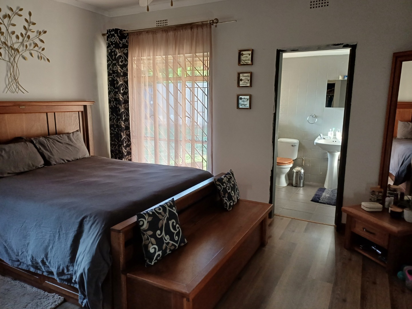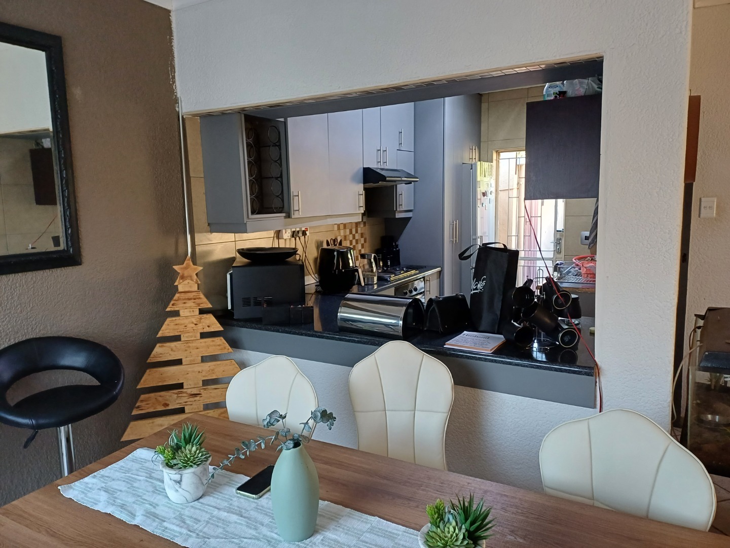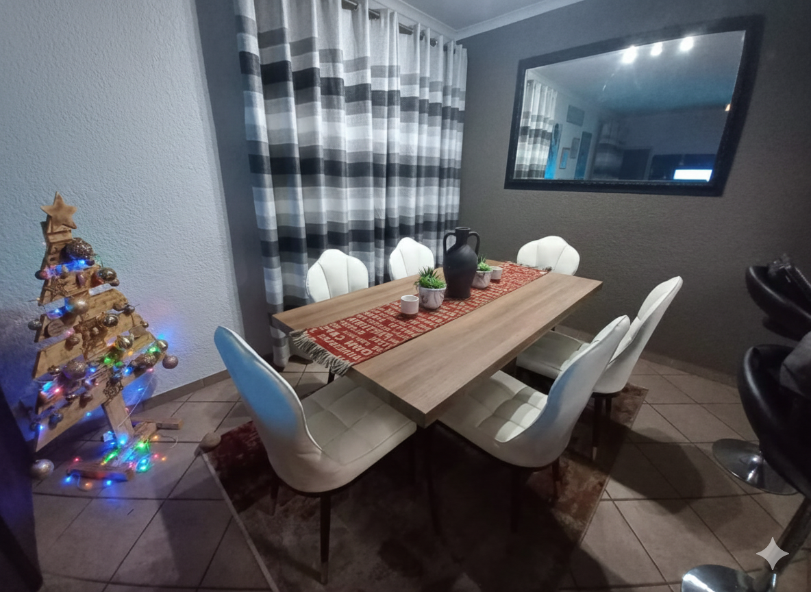 Come on in and discover this lovely 3-bedroom, 2-bathroom home nestled in the friendly suburb of Lilianton, Boksburg. Right from the start, you'll appreciate the strong security features, including robust security gates and window bars, giving you peace of mind. The paved outdoor area at the entrance adds a neat touch, welcoming you home. Step inside and you'll find a compact yet super functional kitchen. It boasts modern light grey cabinetry with sleek handles, a built-in oven and electric hob, plus an extractor fan. There's plenty of countertop space for all your appliances and even a handy integrated wine rack. It’s clean, well-maintained, and ready for your culinary adventures. The home offers three comfortable bedrooms, perfect for a growing family or for setting up a home office. The two bathrooms are a real highlight, especially the main one, which features modern grey tiles, a chic floating vanity, a wall-mounted toilet, and a stylish glass shower partition. It’s a contemporary space designed for relaxation. Outside, the property continues to impress with a spacious, green lawn area – ideal for kids, pets, or just soaking up the sun. You’ll love the paved patio, perfect for outdoor entertaining, and there’s even a picnic table for al fresco dining. High perimeter walls with electric fencing ensure your privacy and security. Plus, you get a convenient double garage for your vehicles. This 109 sqm home is a fantastic opportunity for comfortable living in a well-established area of South Africa. Key Features: * 3 Bedrooms, 2 Bathrooms * Modern Kitchen with Built-in Oven/Hob * Stylish Bathroom with Floating Vanity * Spacious Green Lawn & Paved Patio * High Security Walls with Electric Fence * Double Garage * Pets Allowed