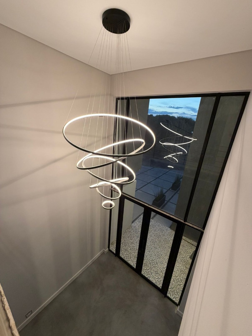 - Two statement luxury chandeliers creating a calm and exclusive ambiance