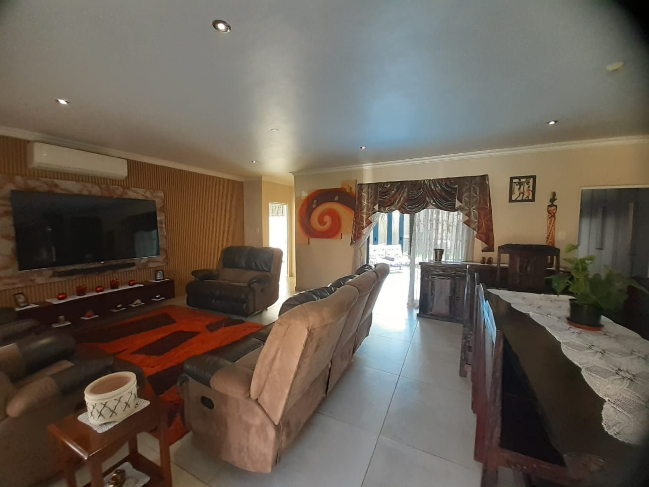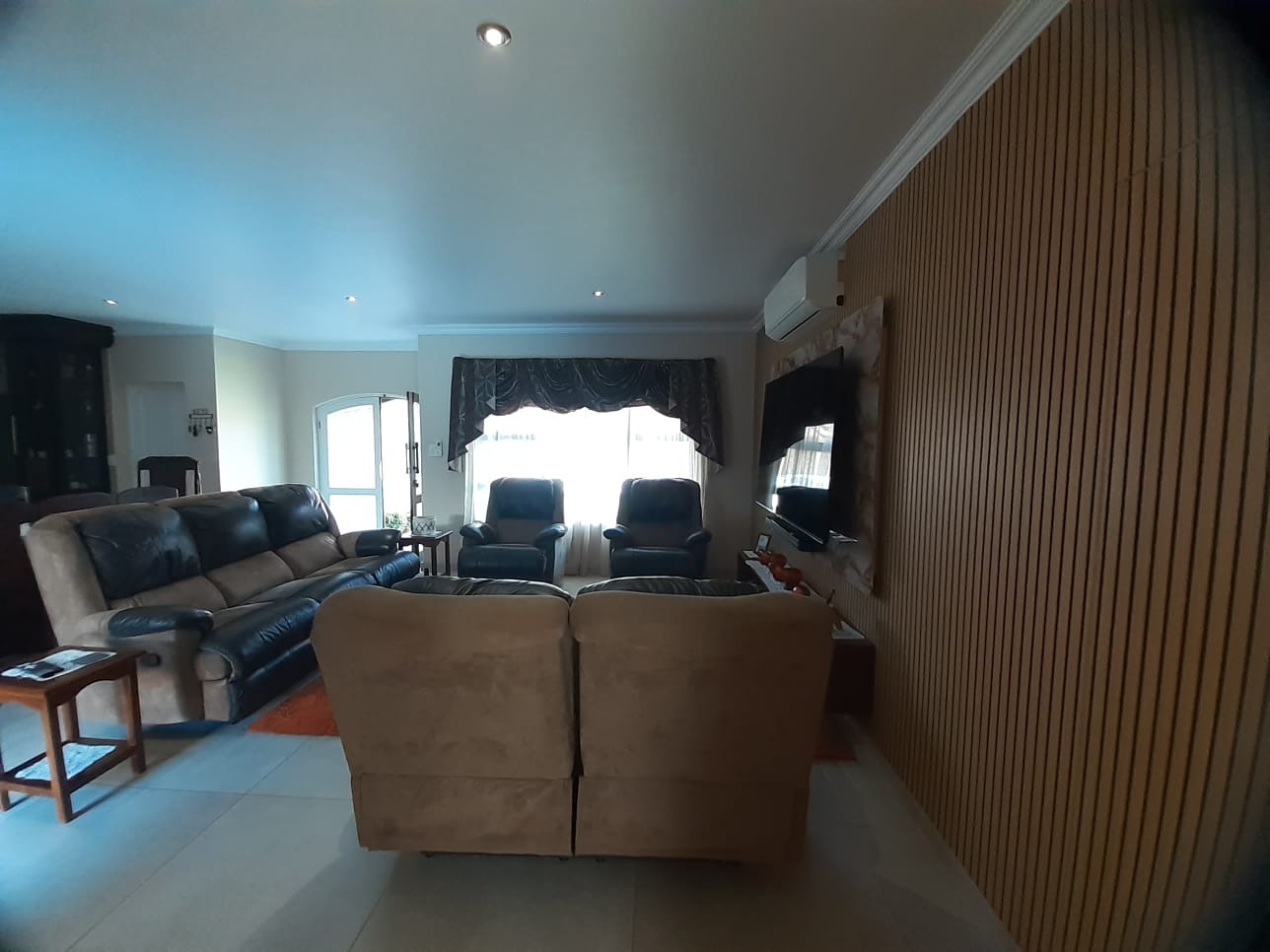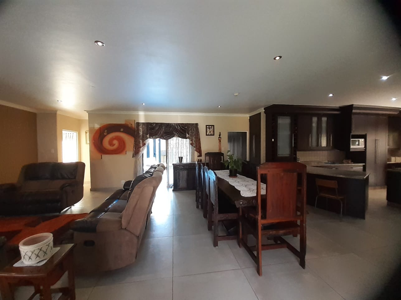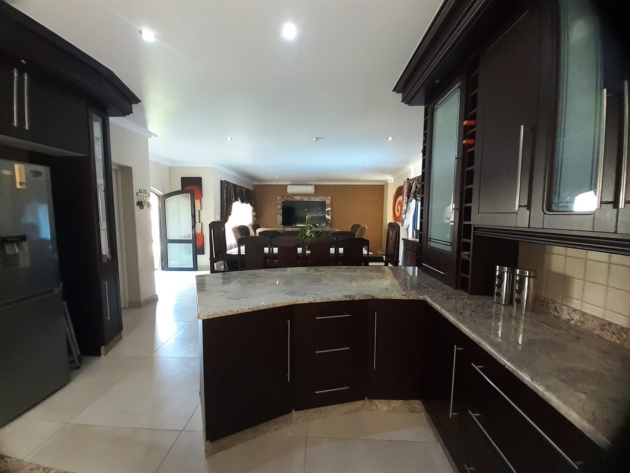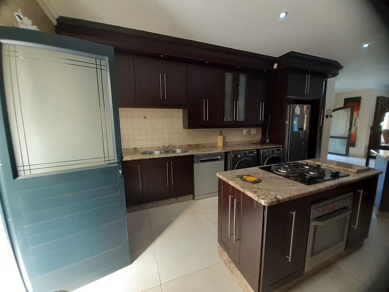 Step inside to an expansive 232 sqm of refined living space, where an open-plan design seamlessly integrates two sophisticated lounges and a dedicated dining area, all bathed in natural light and finished with elegant tiled flooring and recessed lighting. The heart of this home is its gourmet kitchen, boasting abundant dark wood cabinetry, luxurious granite countertops, a central island with a built-in cooktop. A convenient pantry ensures ample storage.