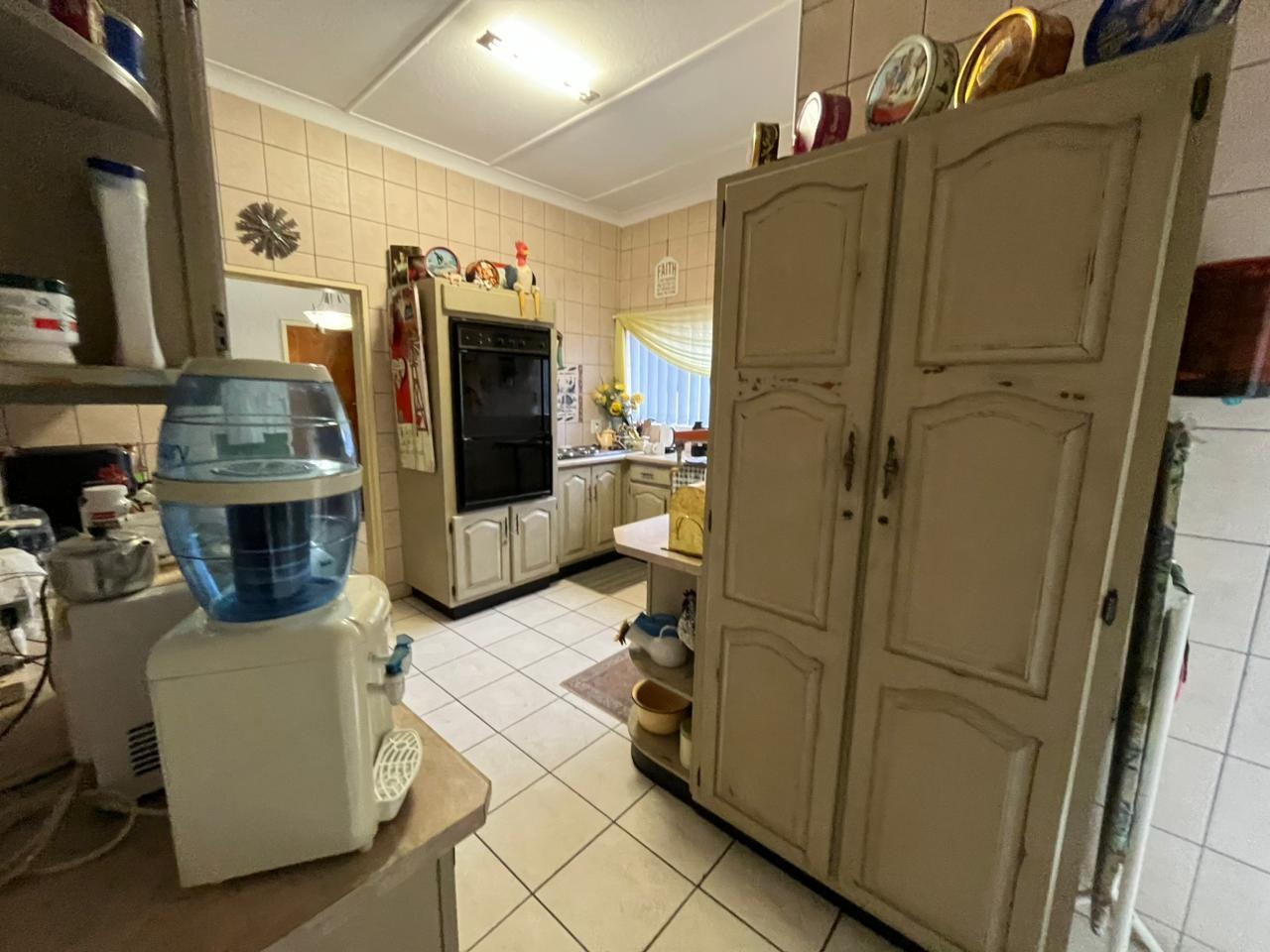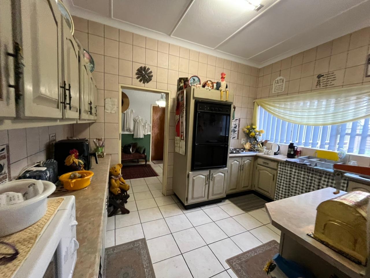 The warm, inviting kitchen offers tiled floors and walls with classic wooden finishes. It is equipped with a double eye-level oven and standard hob. A practical combo scullery, separate laundry and pantry cupboard ensure effortless organisation.