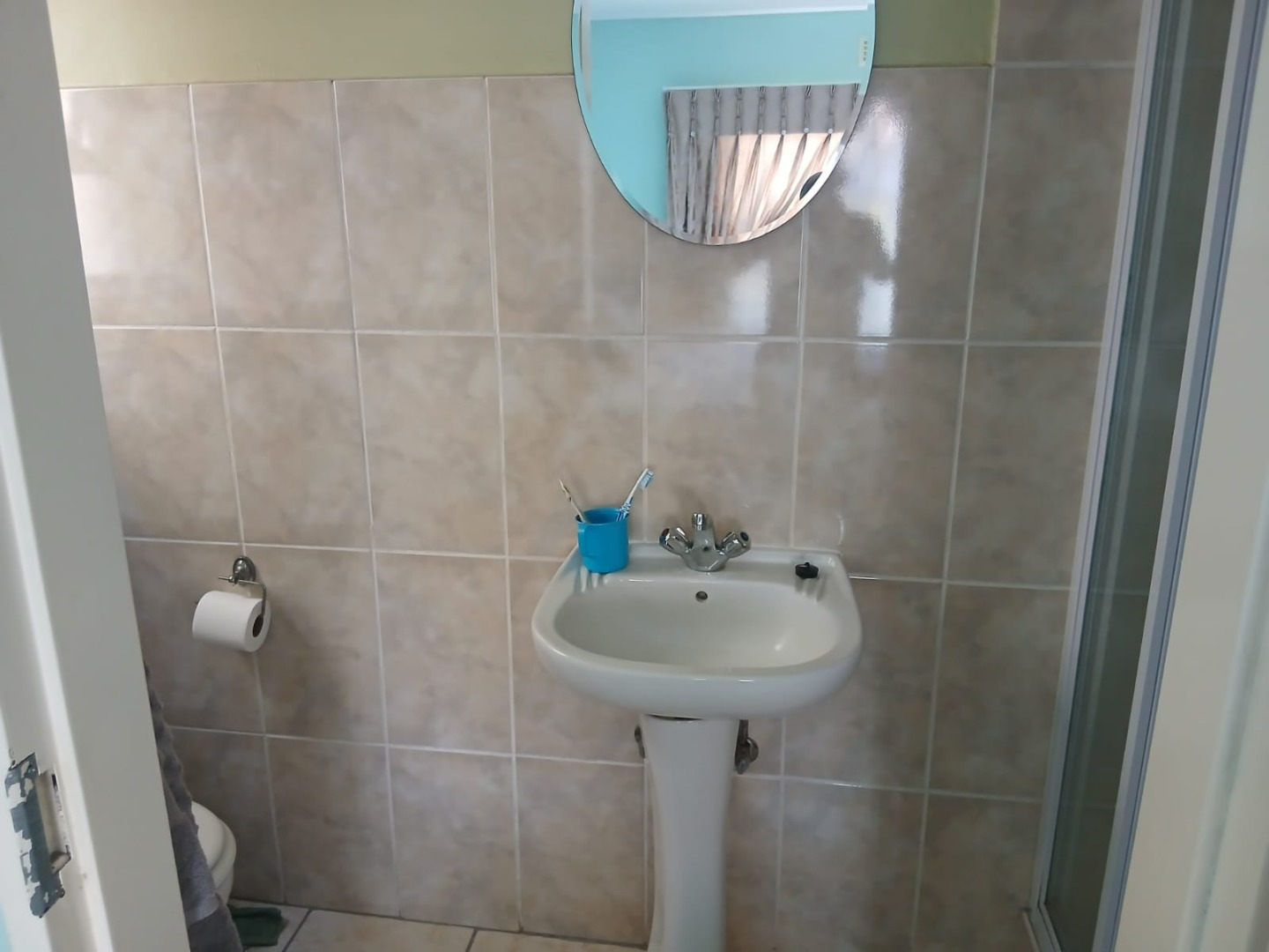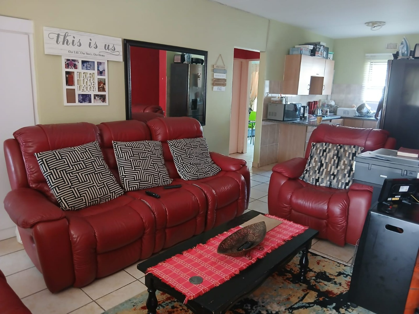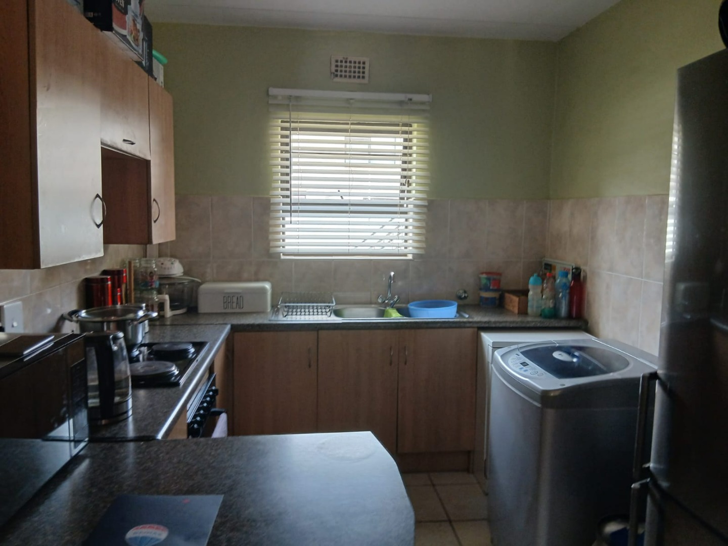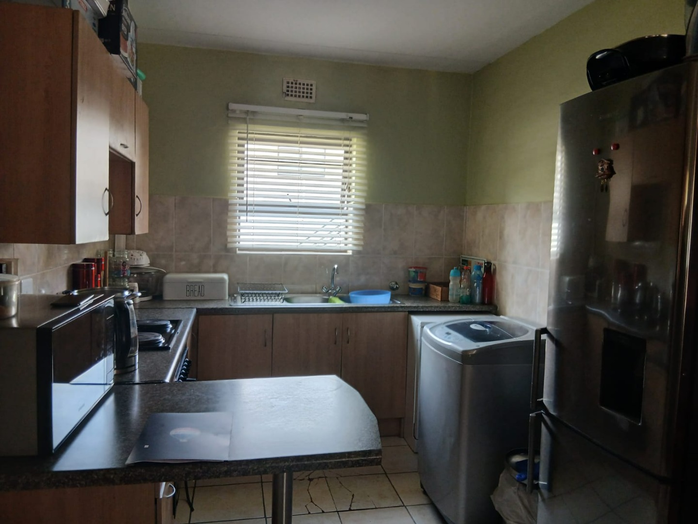 The functional kitchen is equipped with ample wooden cabinetry, a tiled backsplash, and designated spaces for essential appliances, including a stove, washing machine, and refrigerator. The property offers three well-proportioned bedrooms and a 2 bathrooms, catering to everyday needs.
