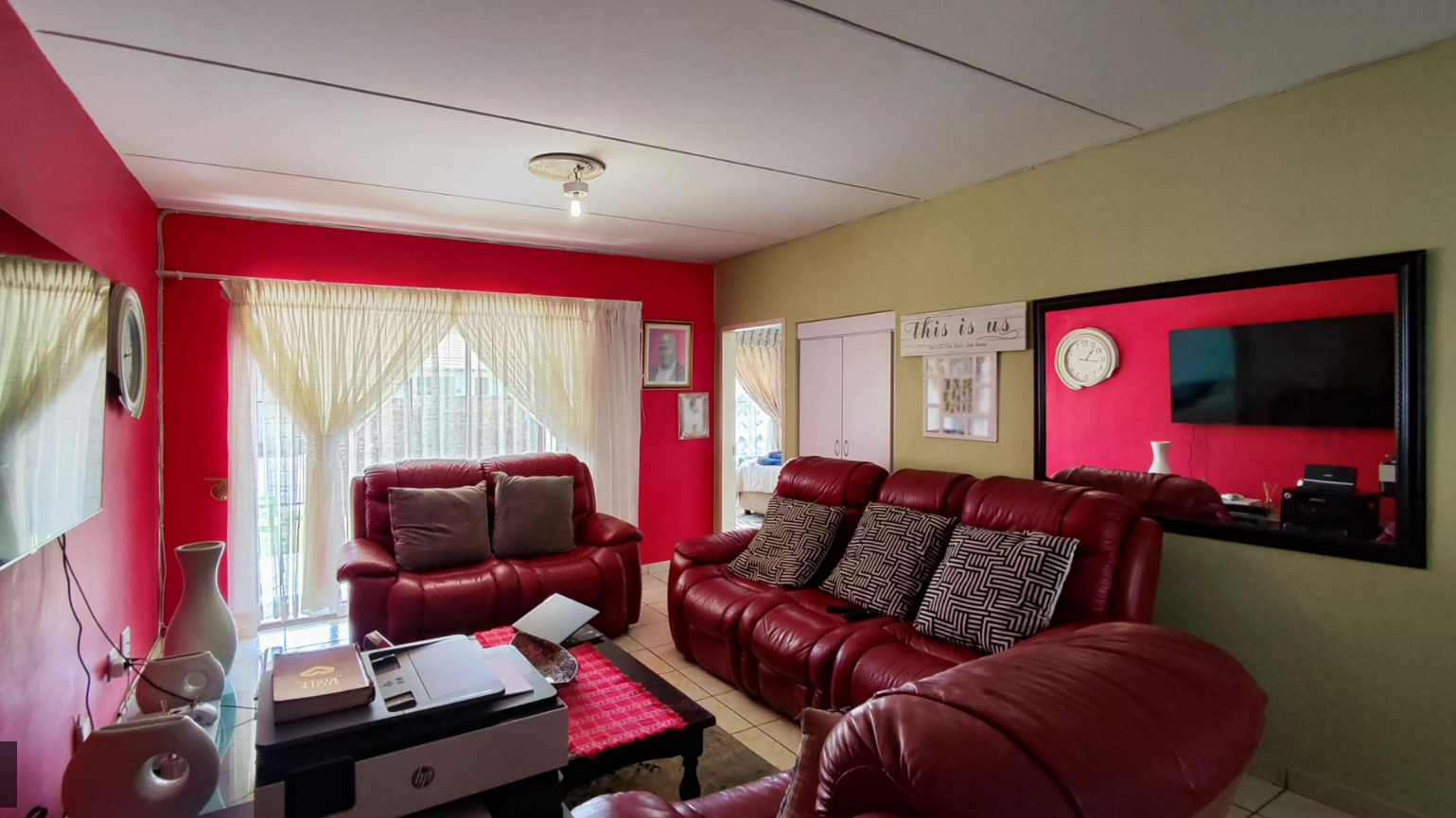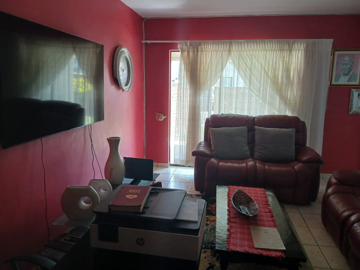 Discover comfortable living in this inviting 3 bedroom with build in cupboards, 2 bathroom residence located within a secure estate in Parkrand, Boksburg. This single story home features a practical open-plan layout, seamlessly connecting the living areas. The interior boasts tiled flooring throughout, enhancing ease of maintenance and a clean aesthetic. A dedicated family TV room provides a versatile space for relaxation and entertainment.