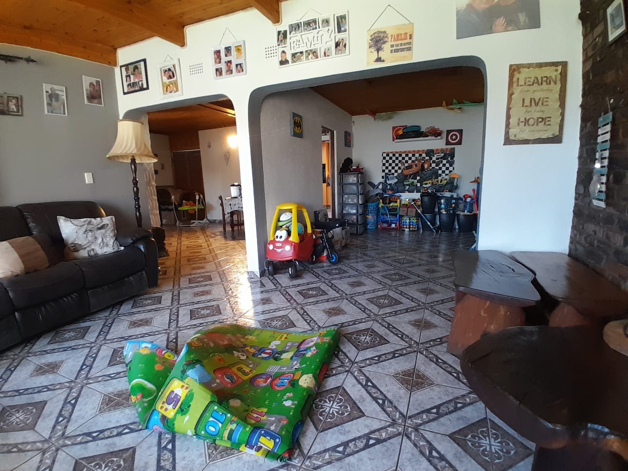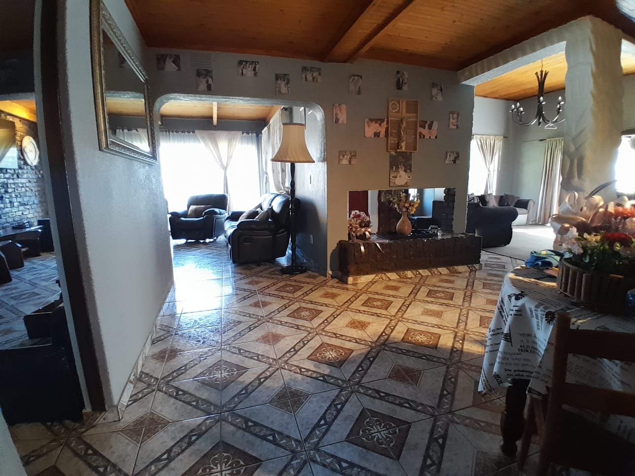 Features: Lounge with sunken fireplace, family room with playroom, dining room, large kitchen with gas hob and scullery, study, renovated en-suite, family bathroom, sparkling pool.