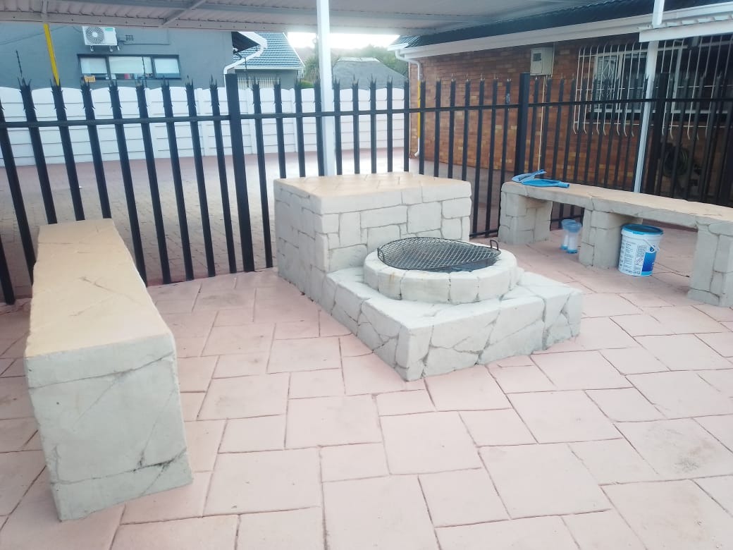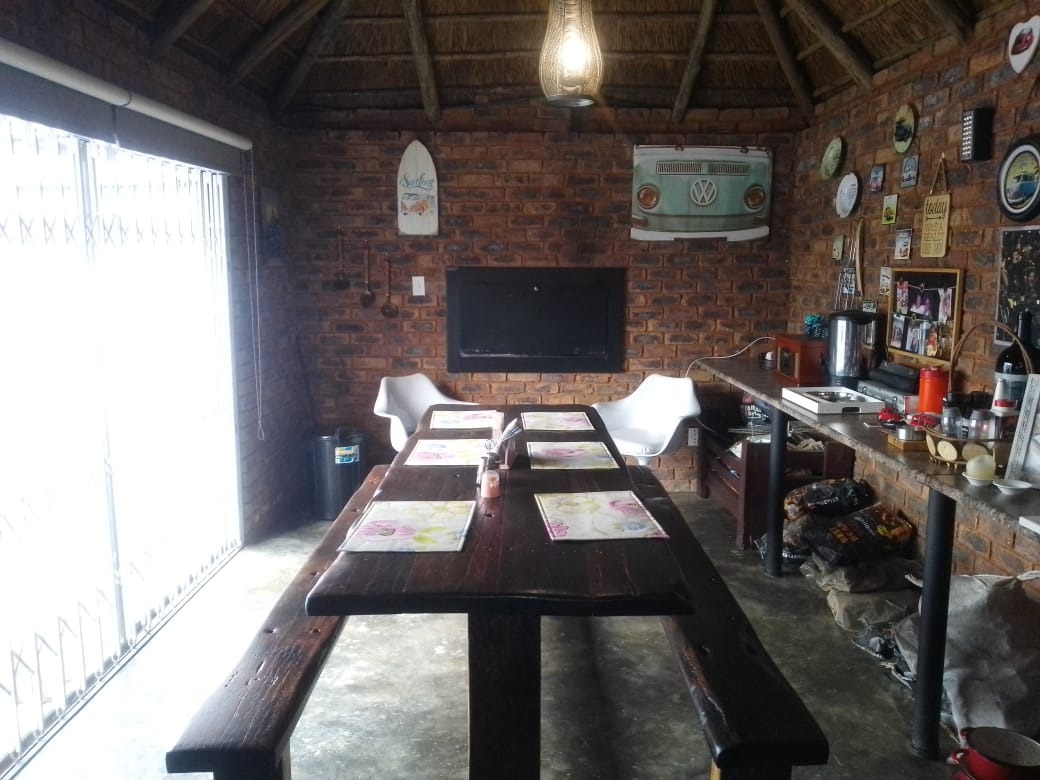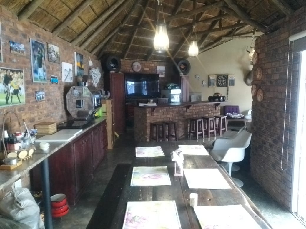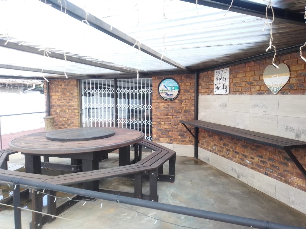 Ideal for year-round gathering, this large enclosed Lapa features sliding doors, a built-in bar, a built-in braai, and both indoor and outdoor covered patio seating. Boma Area with built-in seating – perfect for relaxed evenings around the fire.