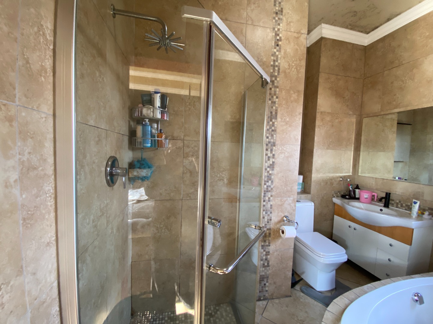 appliances. The guest bathroom is tastefully finished with a shower, basin, and