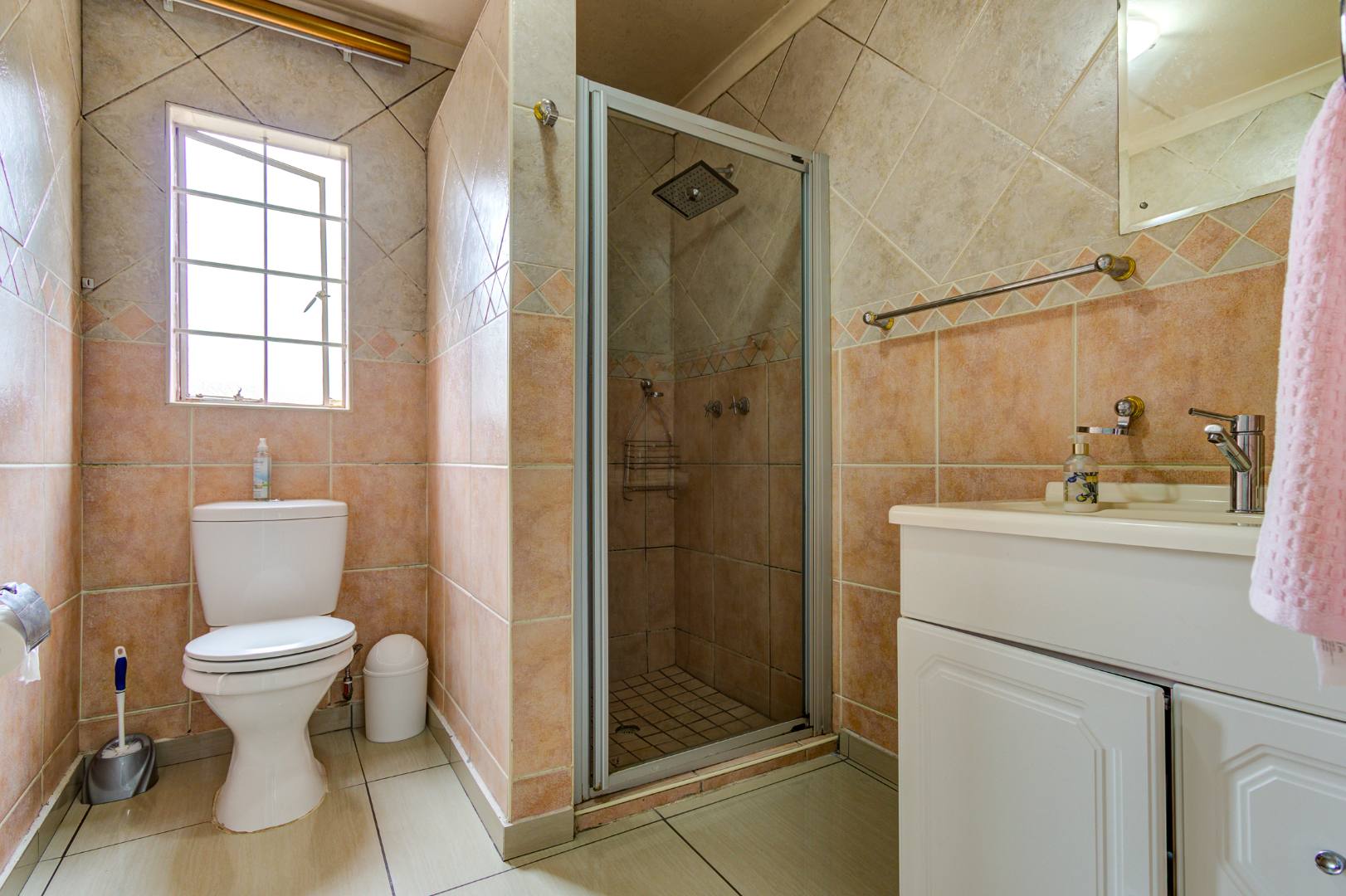 Three well-sized bedrooms all feature built-in cupboards and laminated flooring, creating a sense of warmth and consistency throughout. The main bedroom includes a full en-suite bathroom (bath, basin, and toilet), while the second bathroom offers a shower, basin, and toilet for family or guests.