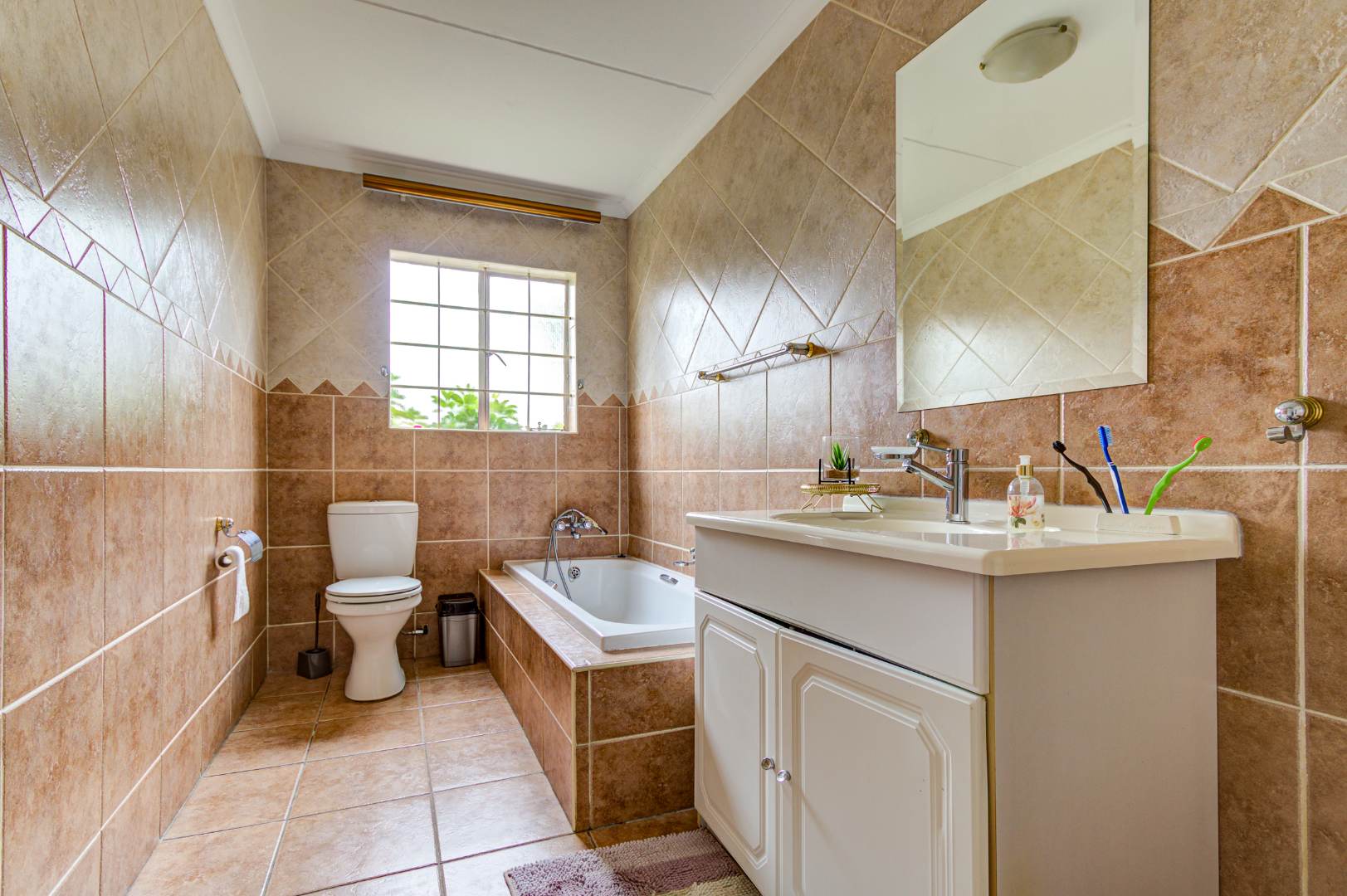 Three well-sized bedrooms all feature built-in cupboards and laminated flooring, creating a sense of warmth and consistency throughout. The main bedroom includes a full en-suite bathroom (bath, basin, and toilet), while the second bathroom offers a shower, basin, and toilet for family or guests.