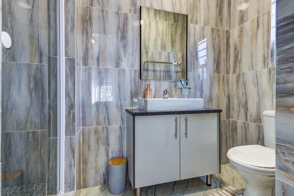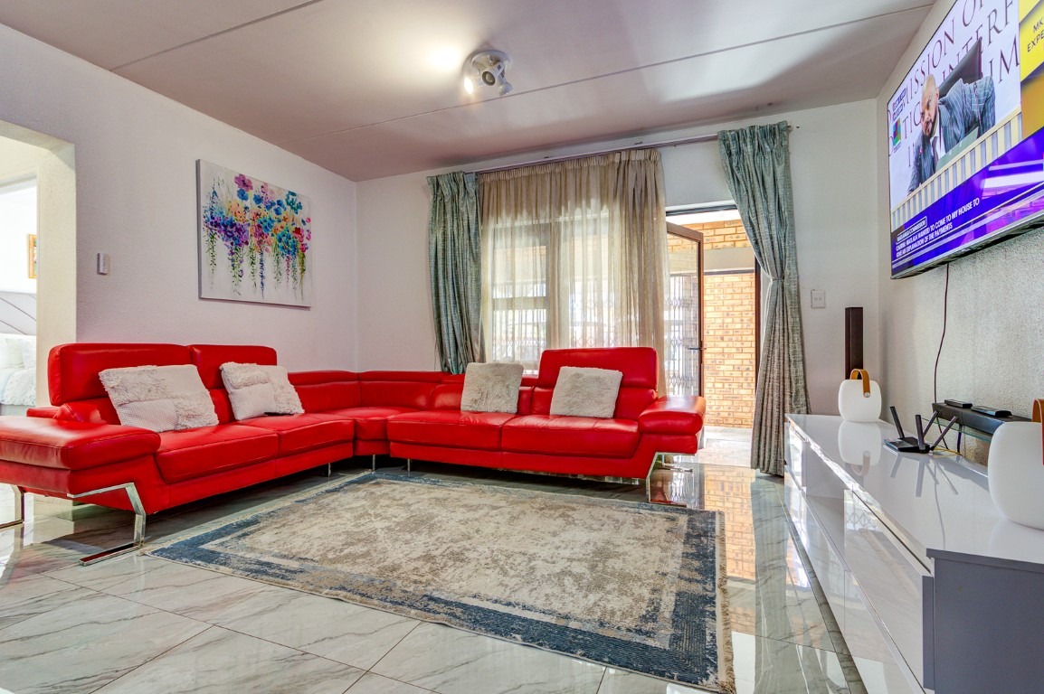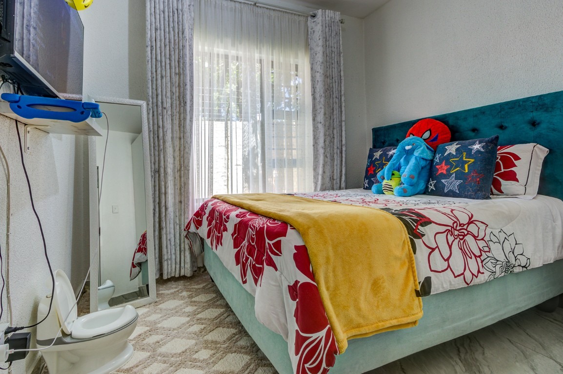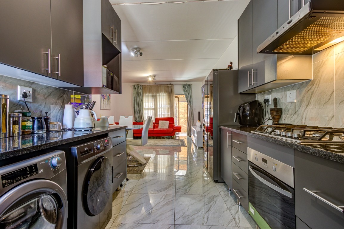 The townhouse features three well-sized tiled bedrooms, all offering comfortable living space and easy maintenance. There are two neatly tiled bathrooms, providing convenience for the household.