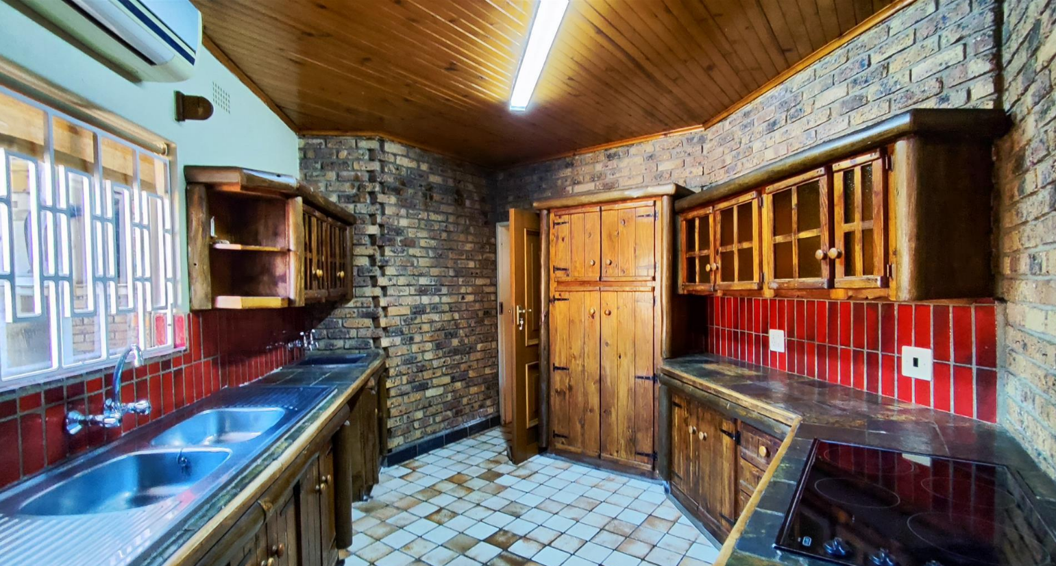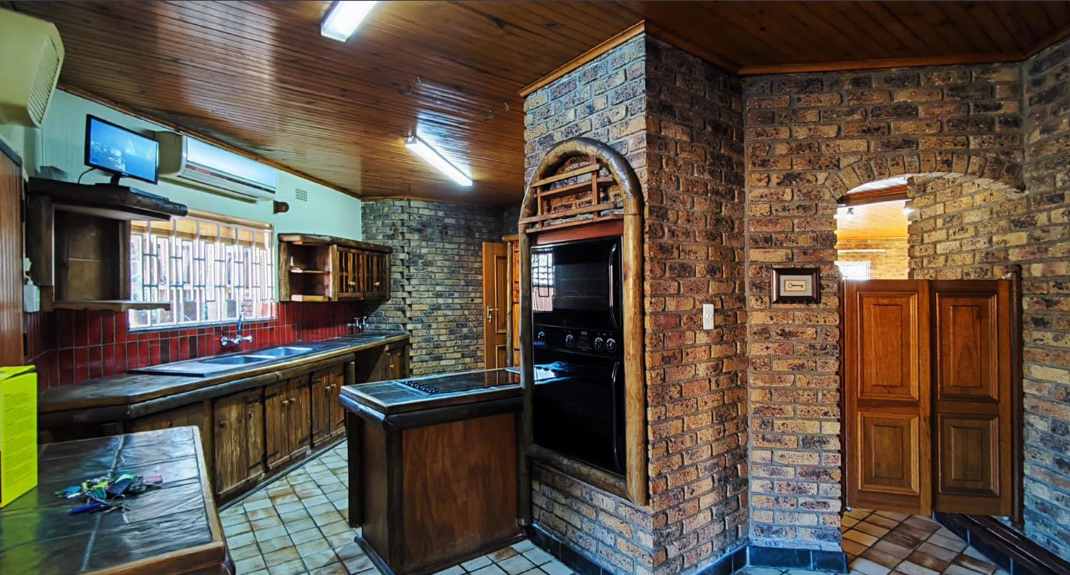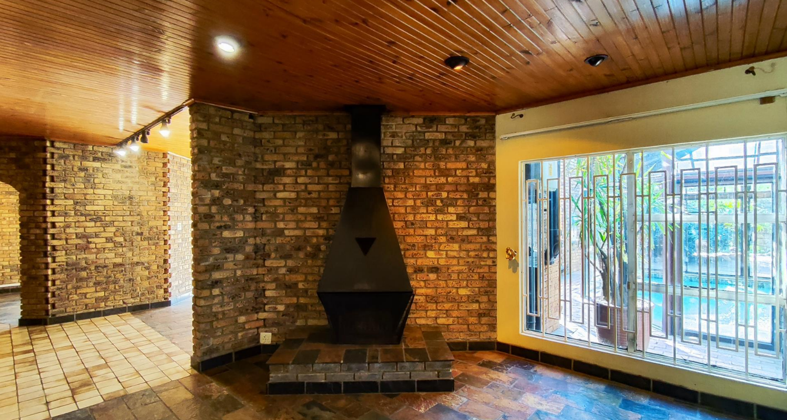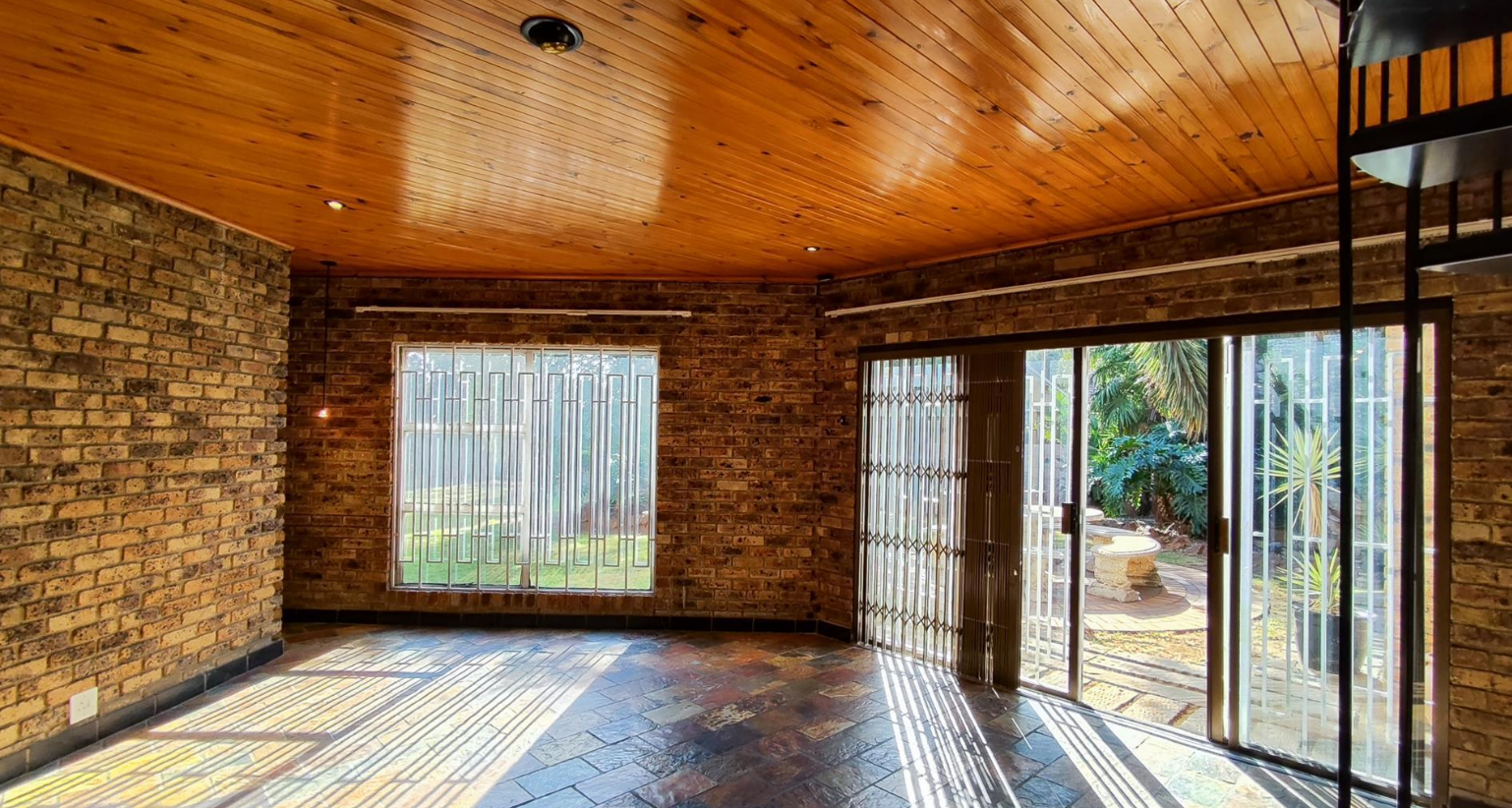 This substantial residential property in Sunward Park, Boksburg, South Africa, features a durable face-brick exterior complemented by lush, mature landscaping and a well-maintained paved driveway. A double garage and additional parking for four vehicles ensure ample space. The established frontage offers a welcoming first impression, enhanced by visible security features like an outdoor camera and security gate. Step inside to discover a home rich in character, boasting a distinctive rustic aesthetic. The interior features exposed brick walls, warm wooden planked ceilings, and durable tiled flooring throughout, creating a unique ambiance. The spacious layout includes a comfortable lounge and a dedicated dining room, perfect for family gatherings. A functional kitchen with a pantry provides practical living, while a prominent freestanding fireplace adds warmth. Air conditioning units are present for climate control. The residence offers three well-proportioned bedrooms, providing comfortable private retreats. There are two bathrooms, both en-suite, ensuring convenience and privacy for occupants. The design elements from the main living areas extend into these spaces, maintaining a cohesive style. Set on a generous 1792 sqm erf, the outdoor spaces are designed for relaxation and entertainment. A spacious lawn with mature trees provides natural shade, while a dedicated outdoor entertainment area features a built-in braai and stone table/benches, ideal for alfresco dining. The property includes a garden and extensive paving, offering low-maintenance outdoor living. Pets are allowed, making it suitable for animal lovers. Security is a key consideration, with comprehensive measures including burglar bars on windows and security gates on doors, providing peace of mind. An outdoor camera further enhances the property's safety profile. Key Features: * 3 Bedrooms, 2 En-suite Bathrooms * Double Garage & 4 Parking Spaces * Spacious 1792 sqm Erf * Rustic Interior with Exposed Brick & Wood Ceilings * Outdoor Entertainment Area with Braai * Fireplace & Air Conditioning * Enhanced Security Features * Pet-Friendly Property * Paved Driveway & Garden
