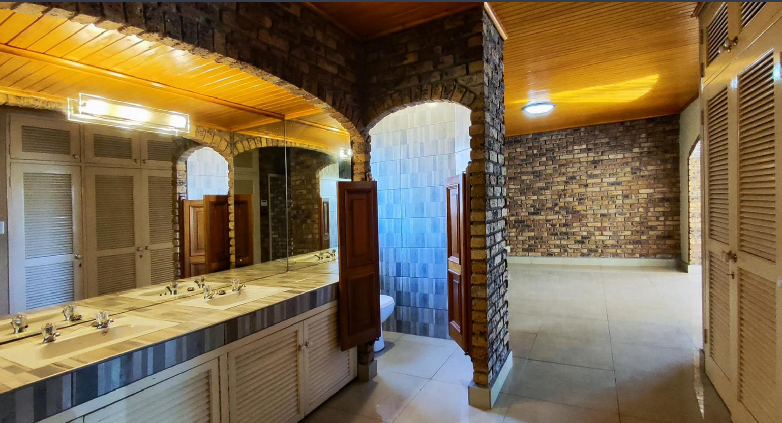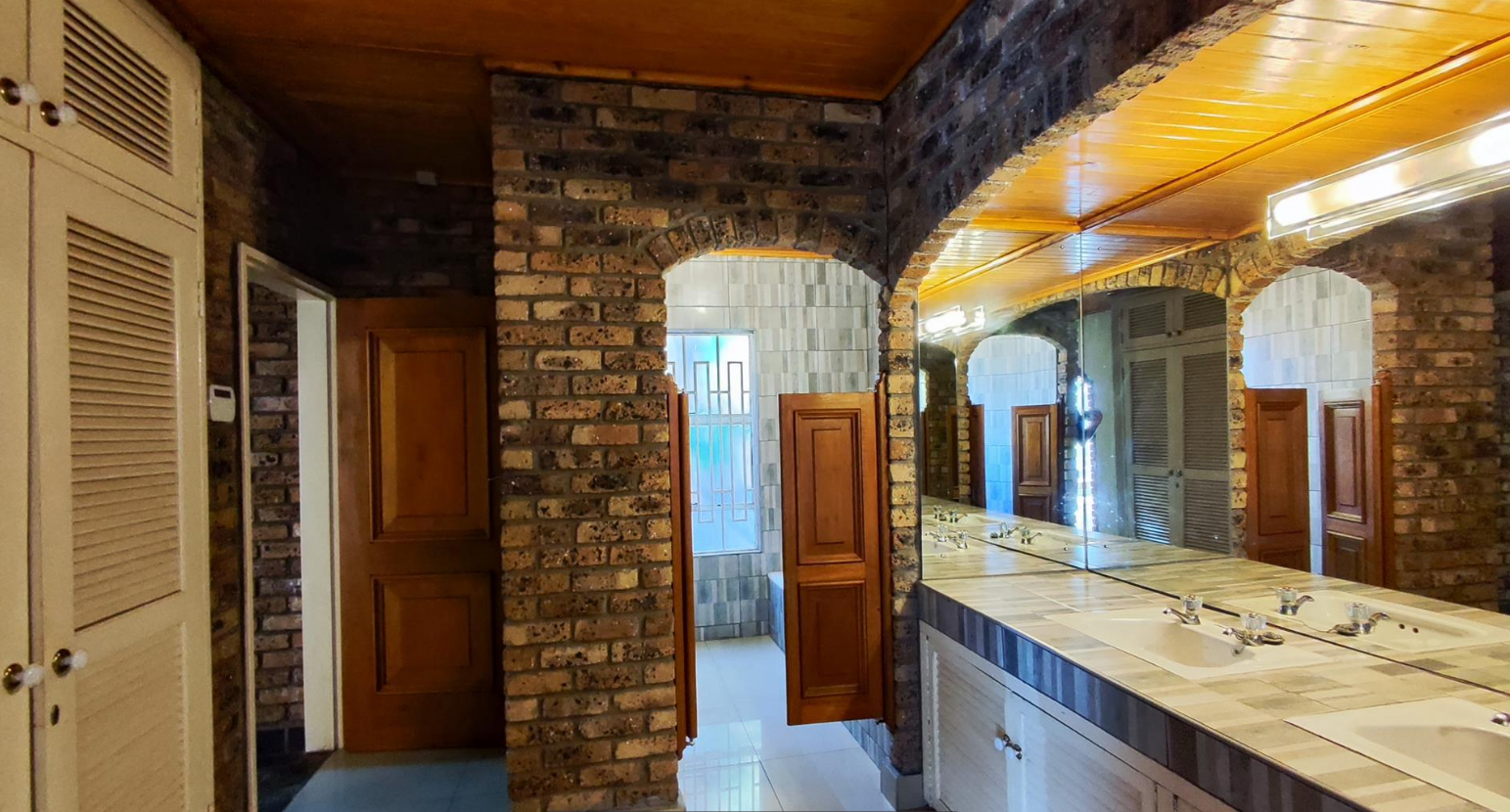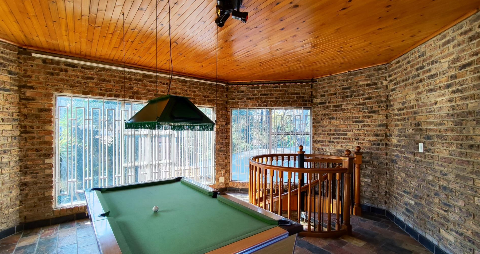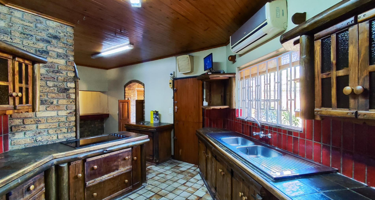 This substantial residential property in Sunward Park, Boksburg, South Africa, features a durable face-brick exterior complemented by lush, mature landscaping and a well-maintained paved driveway. A double garage and additional parking for four vehicles ensure ample space. The established frontage offers a welcoming first impression, enhanced by visible security features like an outdoor camera and security gate. Step inside to discover a home rich in character, boasting a distinctive rustic aesthetic. The interior features exposed brick walls, warm wooden planked ceilings, and durable tiled flooring throughout, creating a unique ambiance. The spacious layout includes a comfortable lounge and a dedicated dining room, perfect for family gatherings. A functional kitchen with a pantry provides practical living, while a prominent freestanding fireplace adds warmth. Air conditioning units are present for climate control. The residence offers three well-proportioned bedrooms, providing comfortable private retreats. There are two bathrooms, both en-suite, ensuring convenience and privacy for occupants. The design elements from the main living areas extend into these spaces, maintaining a cohesive style. Set on a generous 1792 sqm erf, the outdoor spaces are designed for relaxation and entertainment. A spacious lawn with mature trees provides natural shade, while a dedicated outdoor entertainment area features a built-in braai and stone table/benches, ideal for alfresco dining. The property includes a garden and extensive paving, offering low-maintenance outdoor living. Pets are allowed, making it suitable for animal lovers. Security is a key consideration, with comprehensive measures including burglar bars on windows and security gates on doors, providing peace of mind. An outdoor camera further enhances the property's safety profile. Key Features: * 3 Bedrooms, 2 En-suite Bathrooms * Double Garage & 4 Parking Spaces * Spacious 1792 sqm Erf * Rustic Interior with Exposed Brick & Wood Ceilings * Outdoor Entertainment Area with Braai * Fireplace & Air Conditioning * Enhanced Security Features * Pet-Friendly Property * Paved Driveway & Garden
