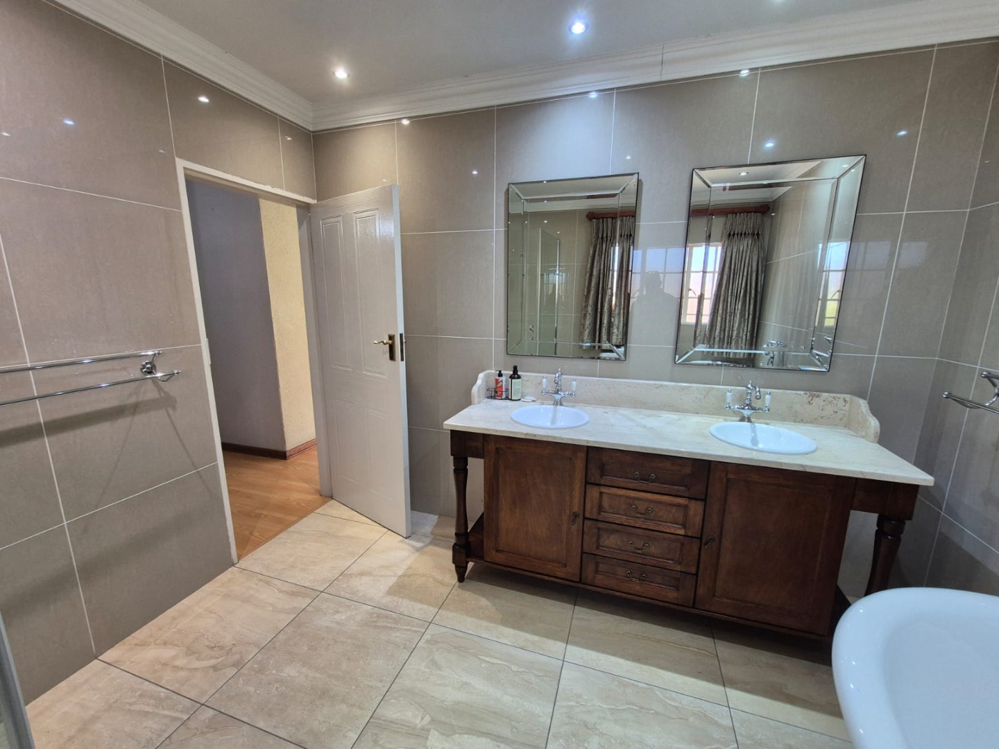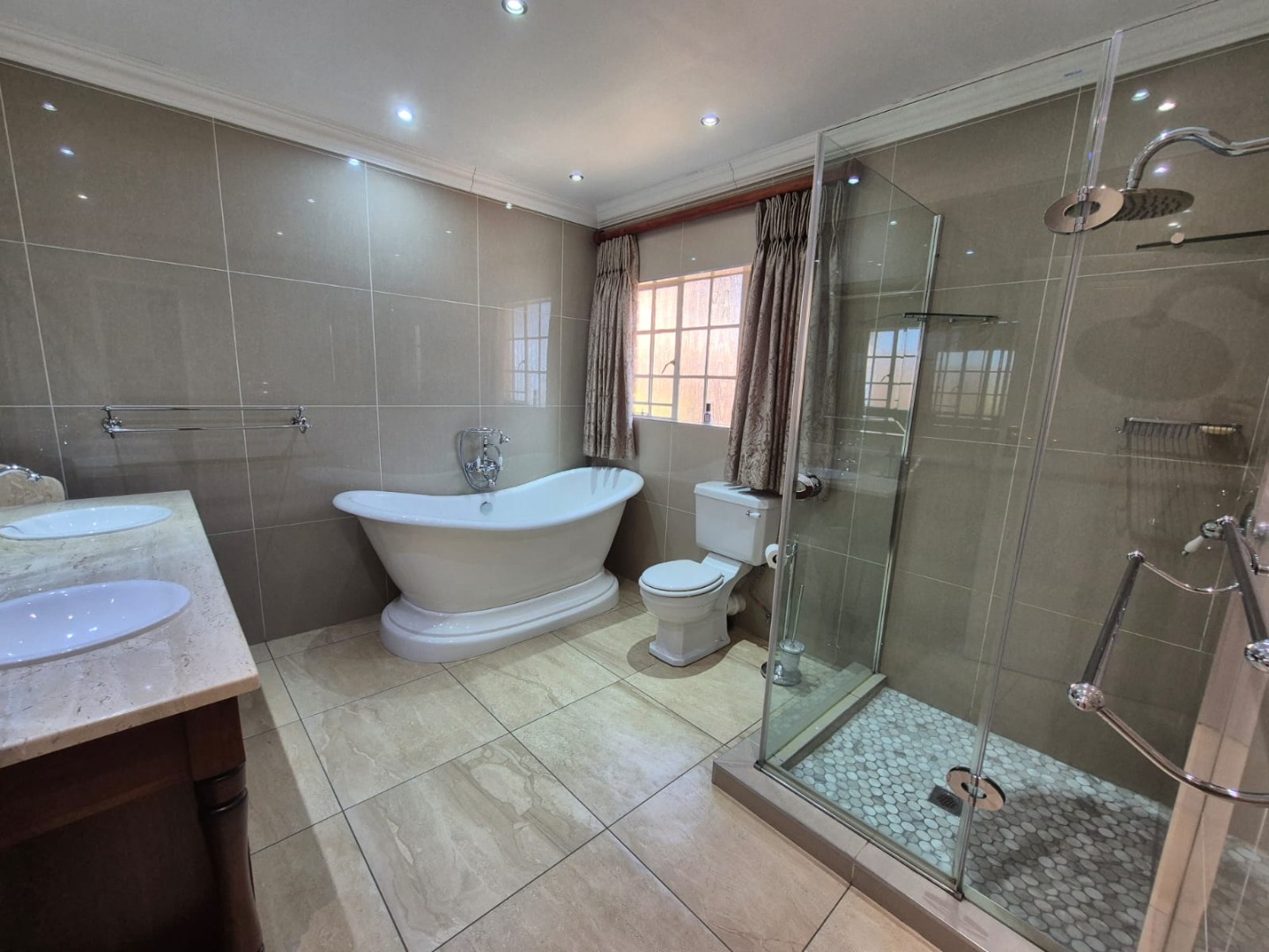 Bedrooms & Bathrooms – Four generously sized north facing sunny bedrooms, with built-in cupboards. Two Absolutely stunning, full luxurious bathrooms, one is an en-suite to the master bedroom- plus a convenient guest loo.