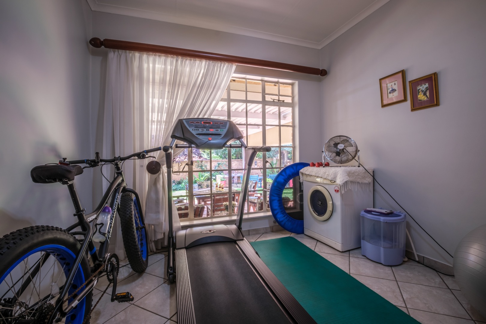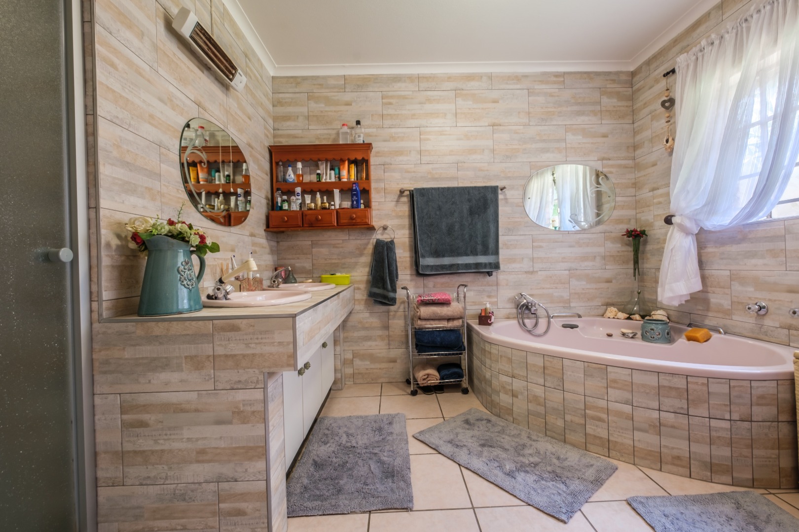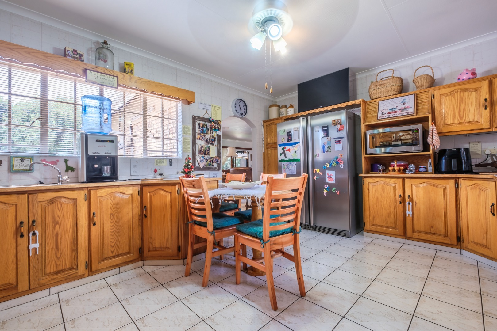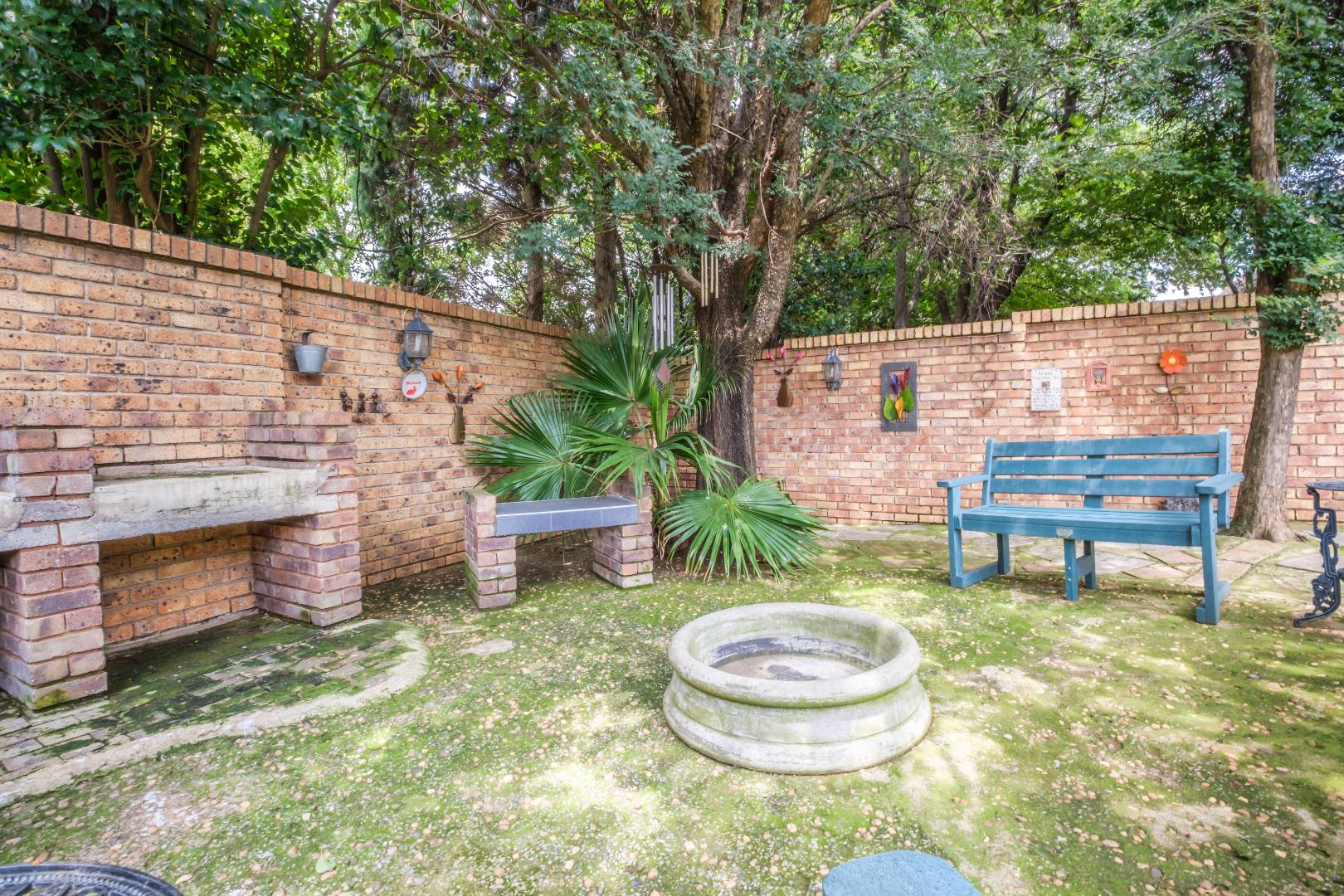 The enclosed entertainment area has a built-in braai and it opens up to a lovely garden with a patio area, boma and lovely established garden.