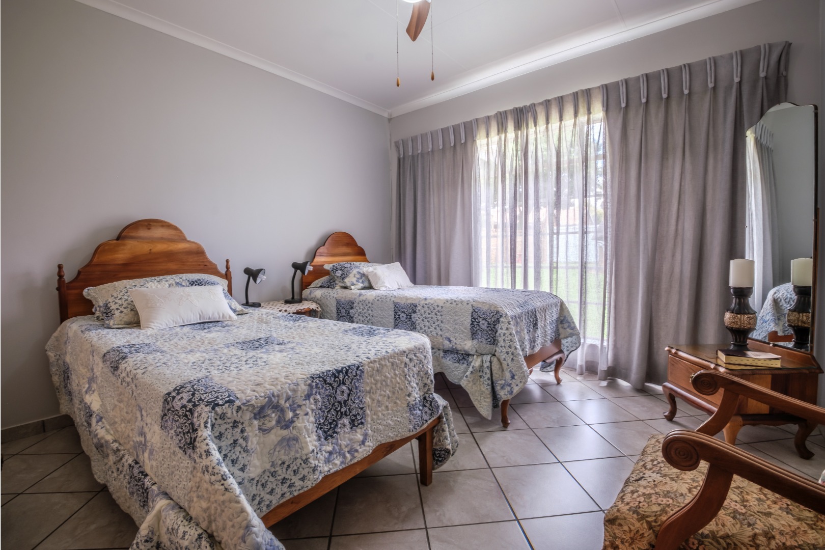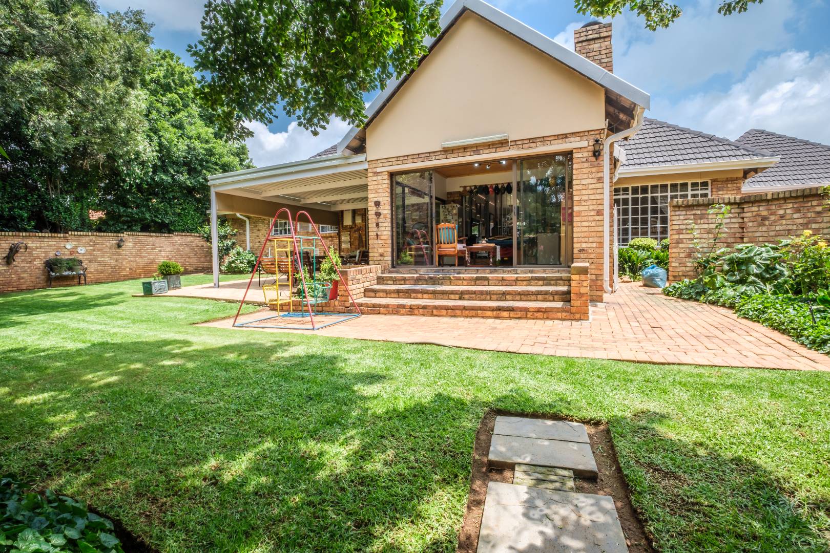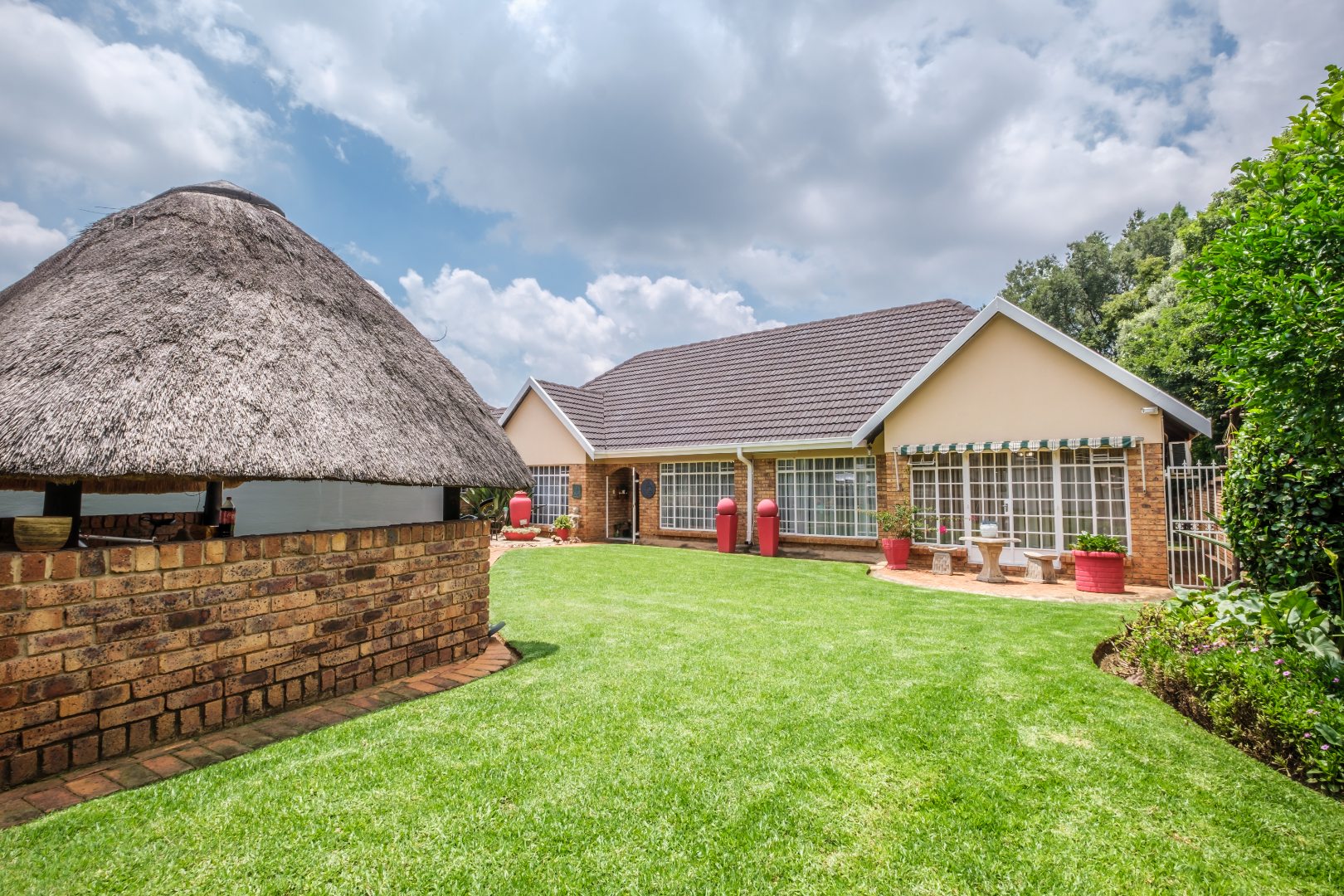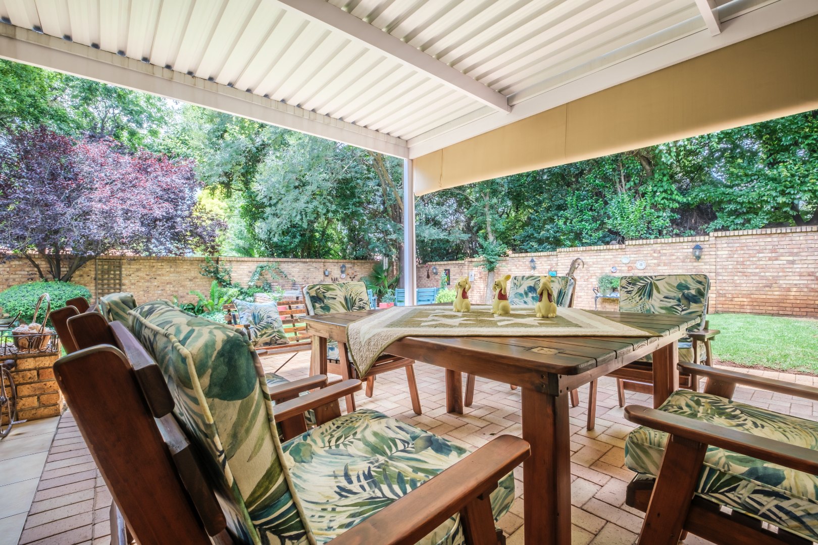 The enclosed entertainment area has a built-in braai and it opens up to a lovely garden with a patio area, boma and lovely established garden.