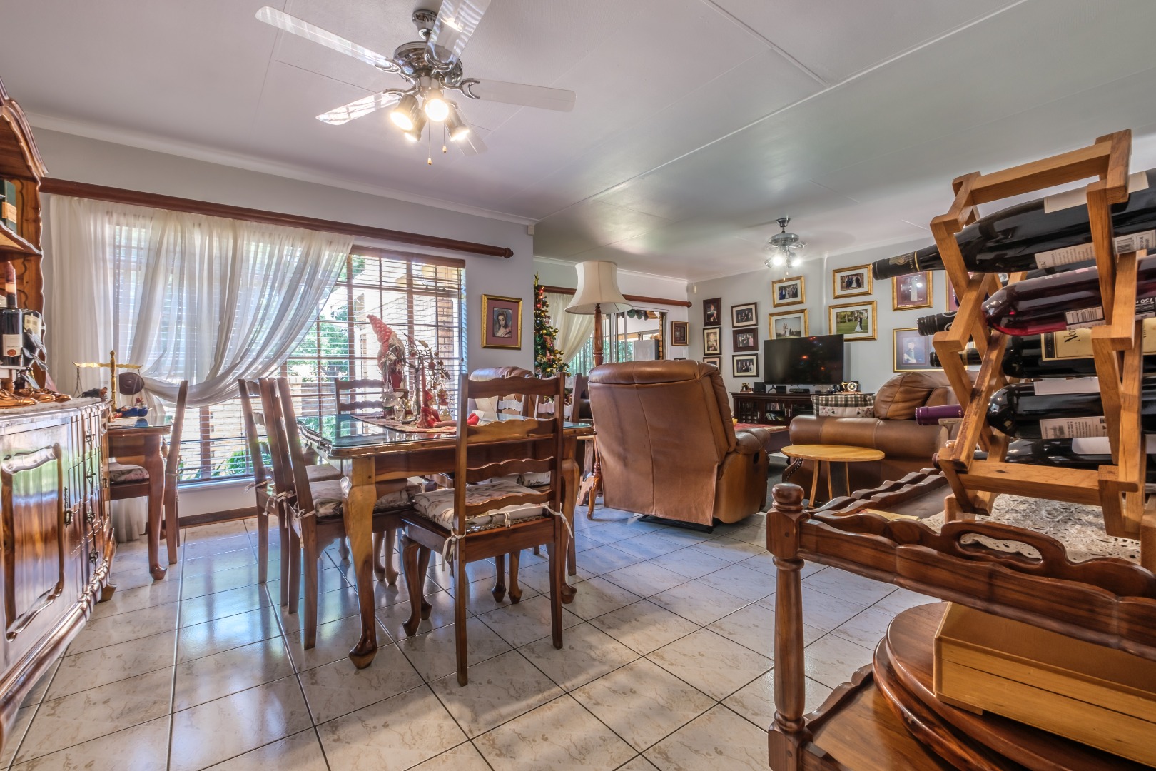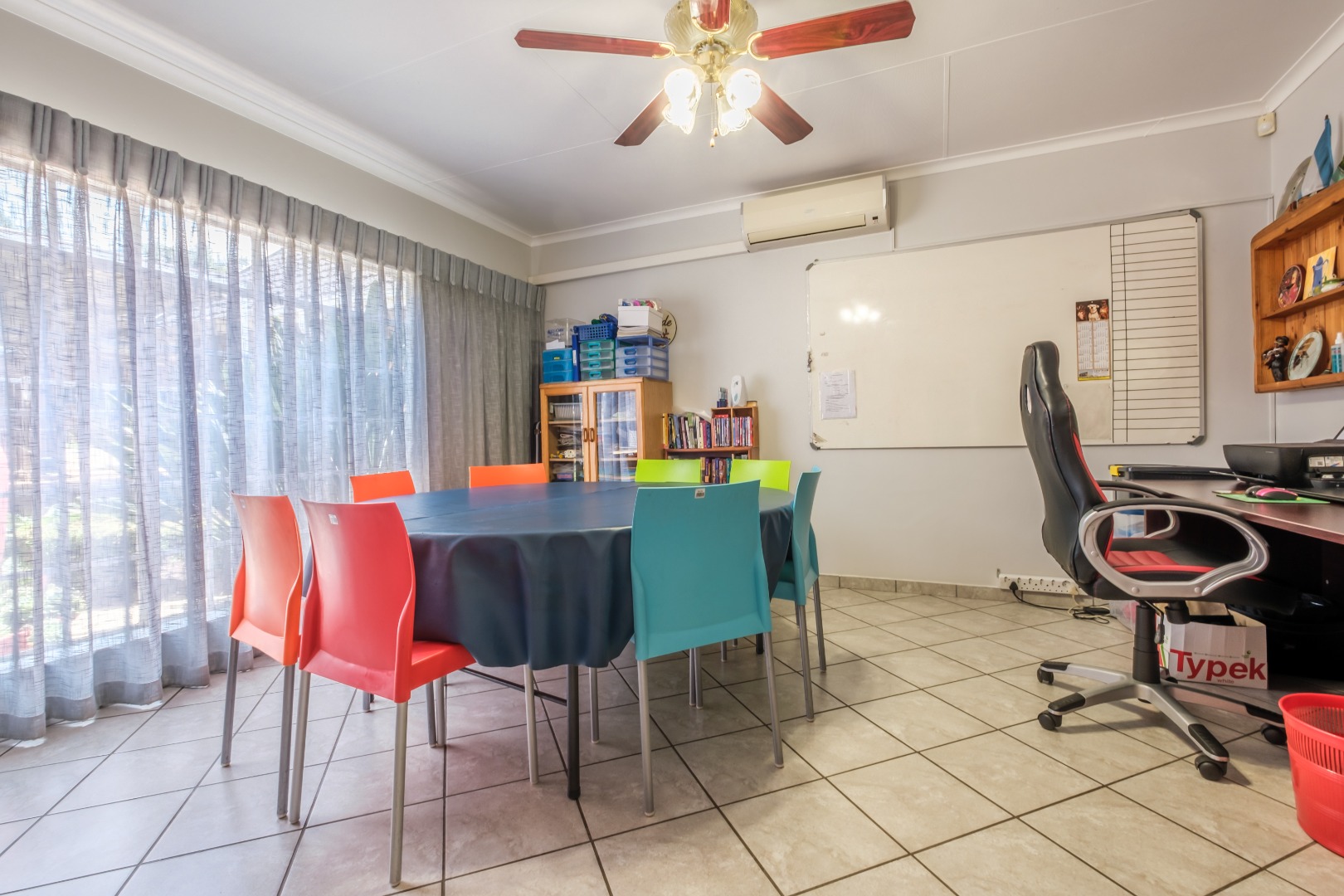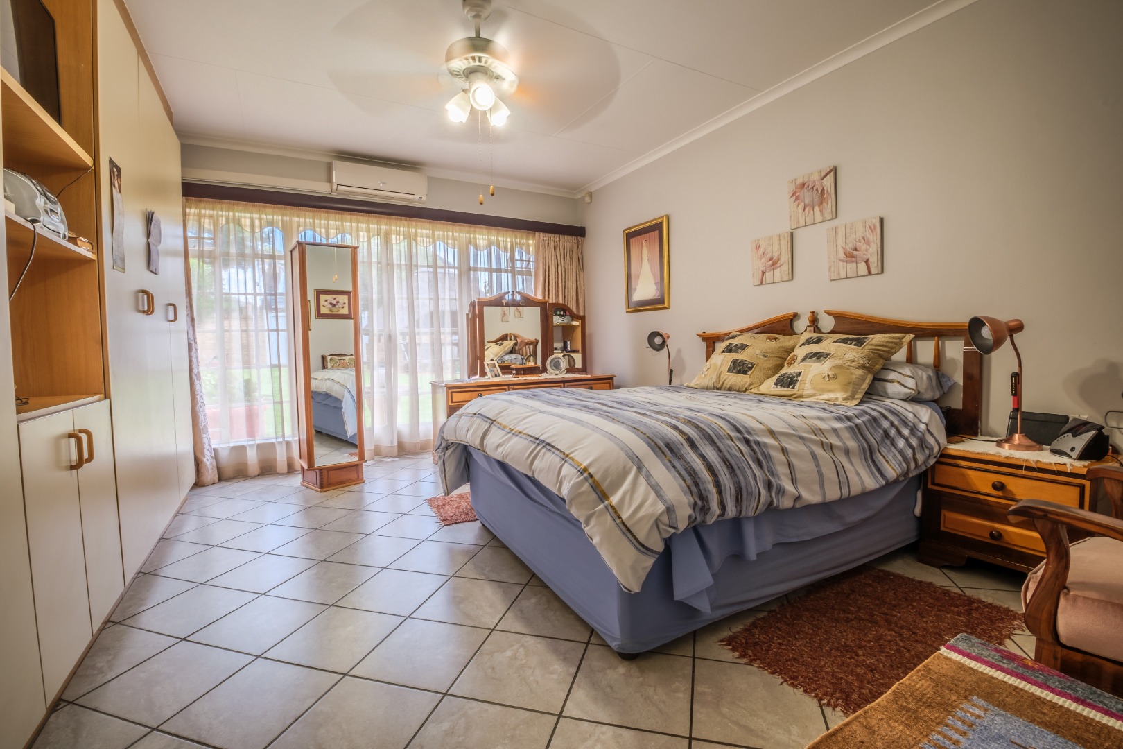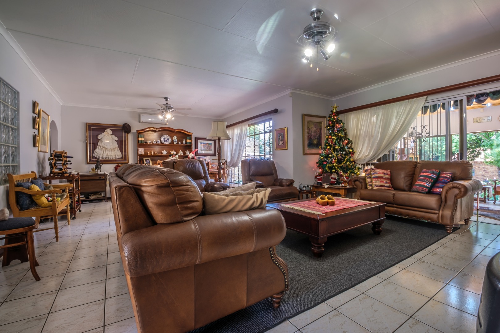 The enclosed entertainment area has a built-in braai and it opens up to a lovely garden with a patio area, boma and lovely established garden.