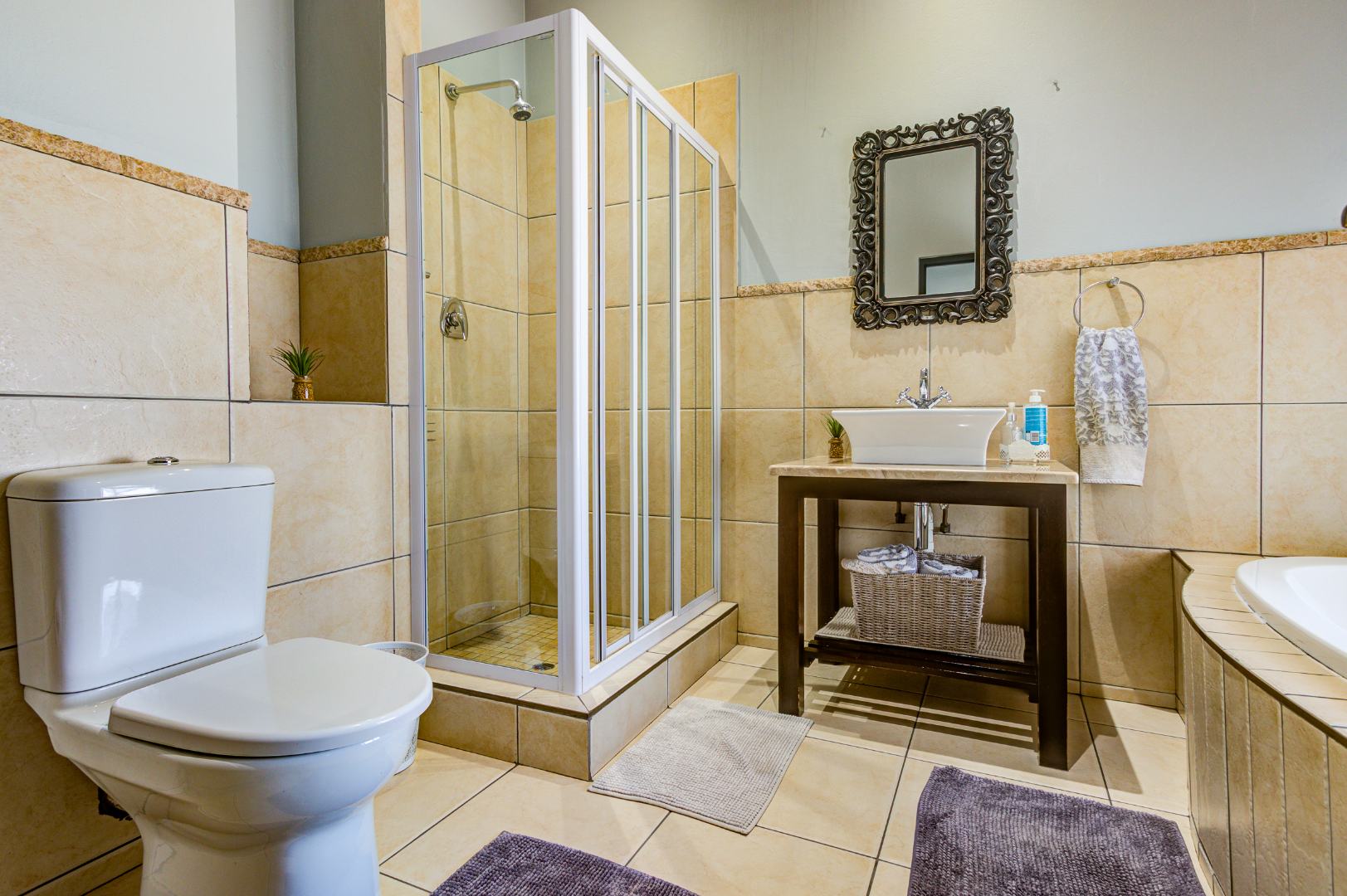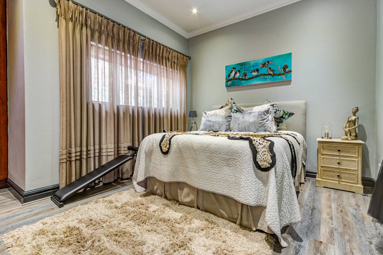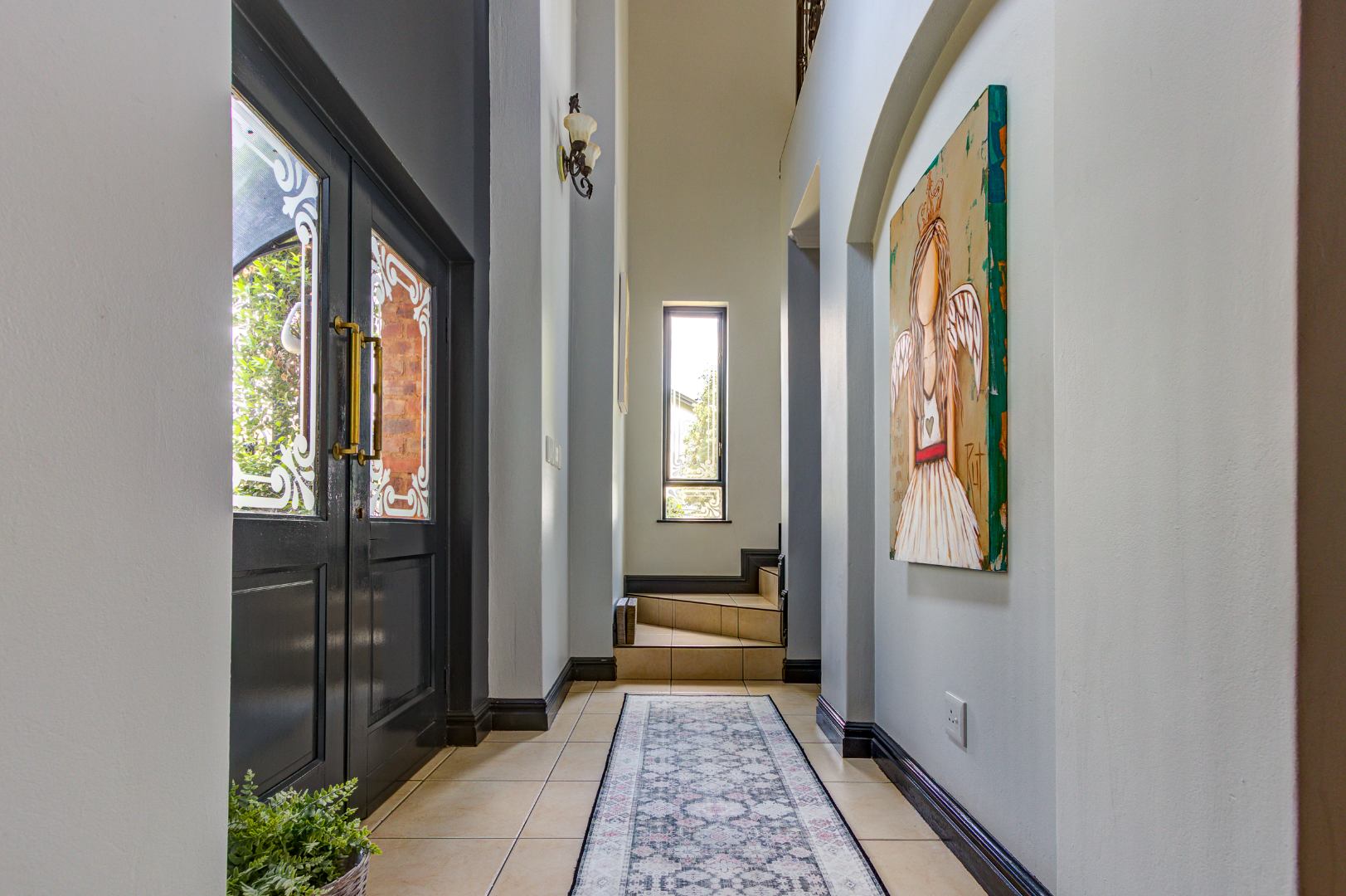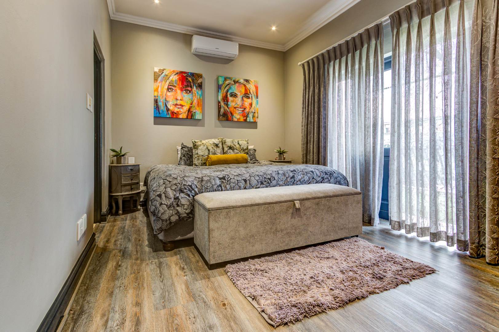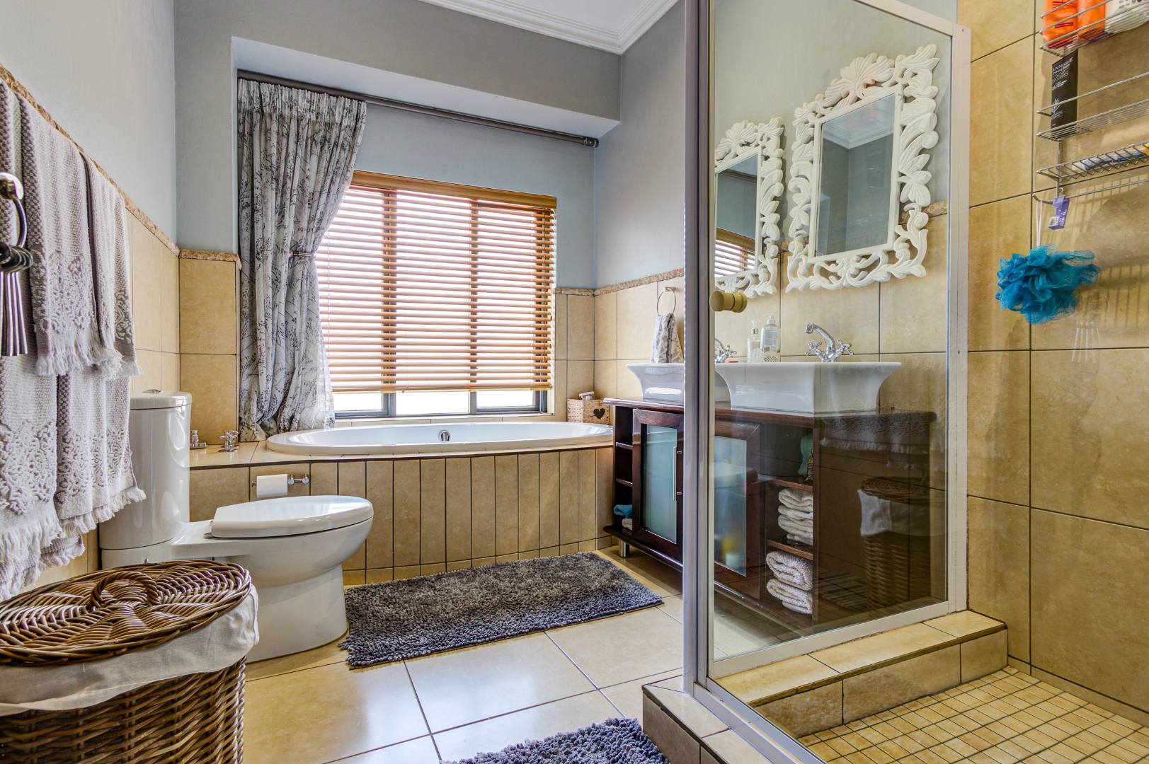 Discover this impressive four-bedroom, three-bathroom residence nestled within a secure gated community in Sunward Park, Boksburg. Boasting a modern two-story design with attractive stucco and brick accents, this home immediately captivates with its curb appeal, lush landscaping, and a welcoming arched entry. The integrated double garage and paved driveway provide ample parking and convenience. Step inside to a grand entrance hall featuring double doors with decorative glass, high ceilings, and elegant tiled flooring, setting a sophisticated tone. The interior unfolds into expansive open-plan living areas, including two lounges and a dedicated dining room, all enhanced by unique exposed brick archways and a modern built-in fireplace. The spacious kitchen is a culinary delight, equipped with cream provincial-style cabinetry, dark granite countertops, a large central island with an integrated hob and oven, and modern stainless steel appliances, offering both functionality and style. A dedicated study provides a quiet space for work or contemplation, complemented by a guest toilet for convenience. Outdoor living is equally inviting with a private patio, a refreshing swimming pool, and a built-in braai, perfect for entertaining. The property also features a charming balcony, offering an elevated outdoor retreat. The well-maintained garden and irrigation system ensure a vibrant exterior year-round. For peace of mind, the home is secured within a security estate with 24-hour security, an alarm system, security gates, and burglar bars. Sustainability is addressed with solar panels, a battery inverter, and fibre connectivity, ensuring modern comfort and efficiency. Pets are welcome, making this an ideal family home. Key Features: * 4 Bedrooms, 3 Bathrooms (3 En-suite) * 2 Lounges, 1 Dining Room, Study * Spacious Kitchen with Granite Countertops * Swimming Pool, Patio, Built-in Braai * Double Garage & Additional Parking * Gated Community with 24-Hour Security * Solar Panels & Battery Inverter * Fibre Connectivity & Air Conditioning * Pets Allowed, Garden with Irrigation