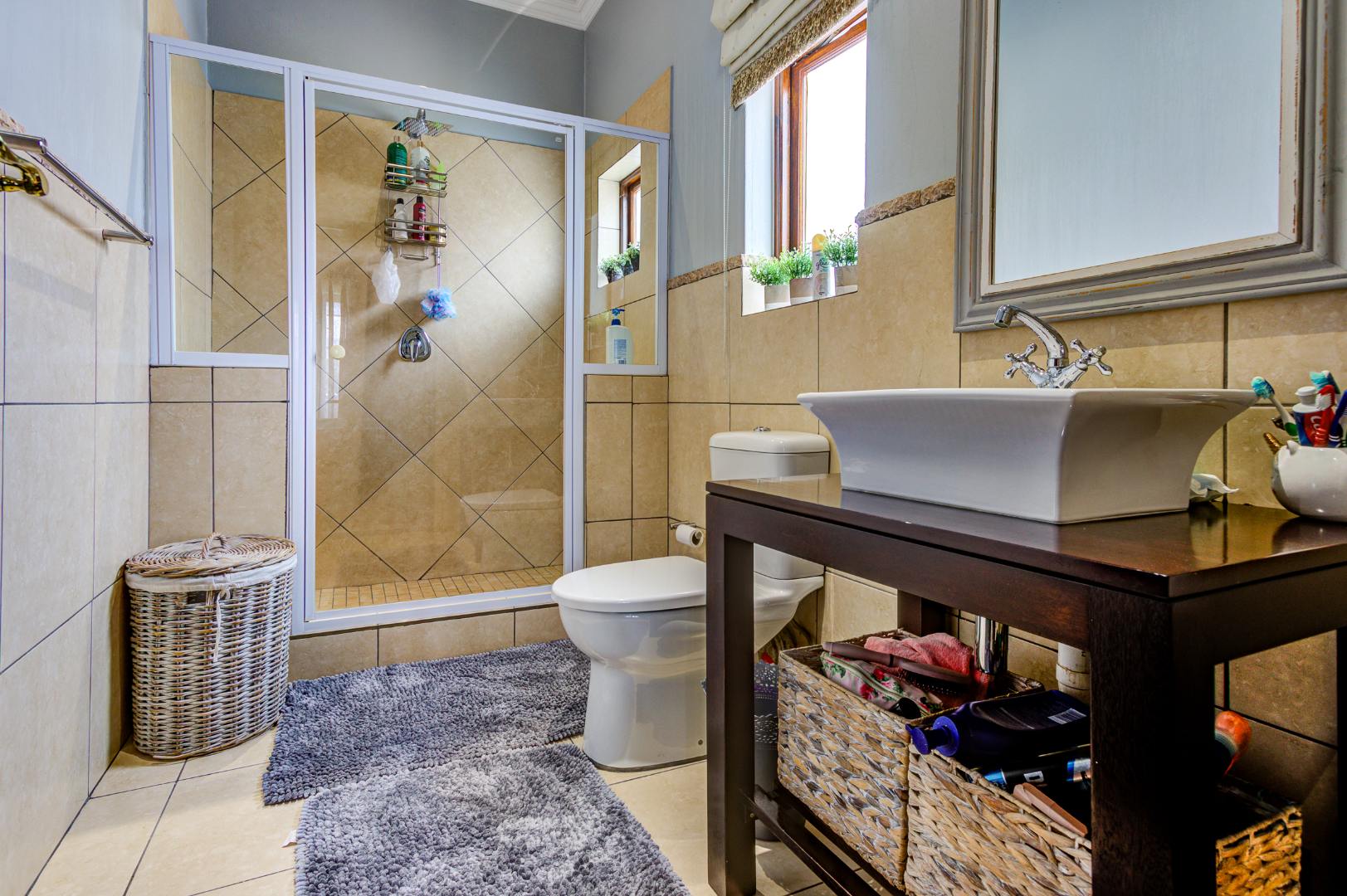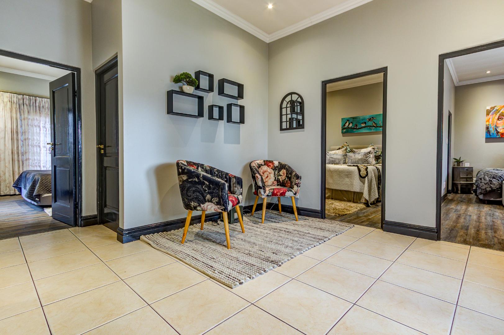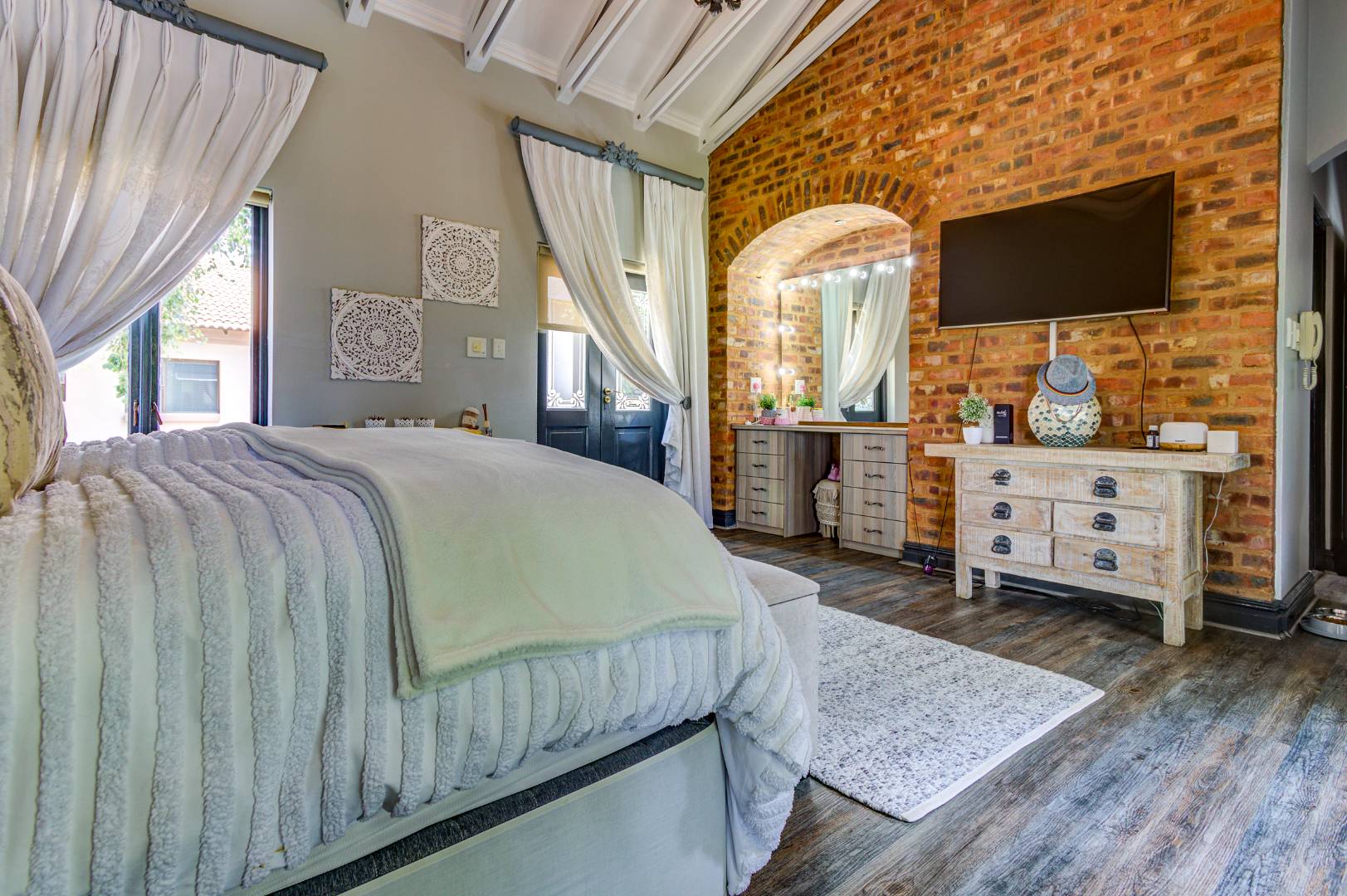 Discover this impressive four-bedroom, three-bathroom residence nestled within a secure gated community in Sunward Park, Boksburg. Boasting a modern two-story design with attractive stucco and brick accents, this home immediately captivates with its curb appeal, lush landscaping, and a welcoming arched entry. The integrated double garage and paved driveway provide ample parking and convenience. Step inside to a grand entrance hall featuring double doors with decorative glass, high ceilings, and elegant tiled flooring, setting a sophisticated tone. The interior unfolds into expansive open-plan living areas, including two lounges and a dedicated dining room, all enhanced by unique exposed brick archways and a modern built-in fireplace. The spacious kitchen is a culinary delight, equipped with cream provincial-style cabinetry, dark granite countertops, a large central island with an integrated hob and oven, and modern stainless steel appliances, offering both functionality and style. A dedicated study provides a quiet space for work or contemplation, complemented by a guest toilet for convenience. Outdoor living is equally inviting with a private patio, a refreshing swimming pool, and a built-in braai, perfect for entertaining. The property also features a charming balcony, offering an elevated outdoor retreat. The well-maintained garden and irrigation system ensure a vibrant exterior year-round. For peace of mind, the home is secured within a security estate with 24-hour security, an alarm system, security gates, and burglar bars. Sustainability is addressed with solar panels, a battery inverter, and fibre connectivity, ensuring modern comfort and efficiency. Pets are welcome, making this an ideal family home. Key Features: * 4 Bedrooms, 3 Bathrooms (3 En-suite) * 2 Lounges, 1 Dining Room, Study * Spacious Kitchen with Granite Countertops * Swimming Pool, Patio, Built-in Braai * Double Garage & Additional Parking * Gated Community with 24-Hour Security * Solar Panels & Battery Inverter * Fibre Connectivity & Air Conditioning * Pets Allowed, Garden with Irrigation