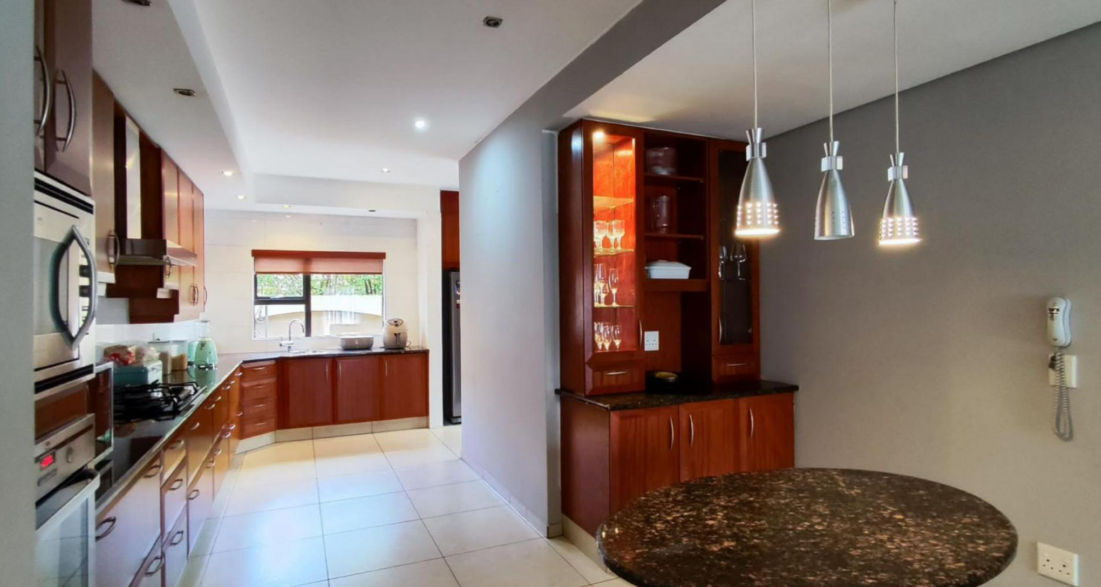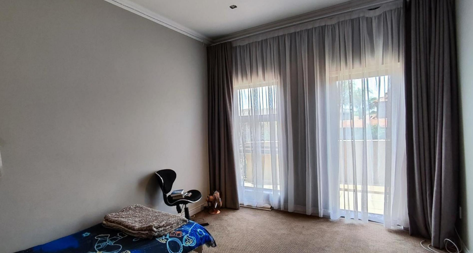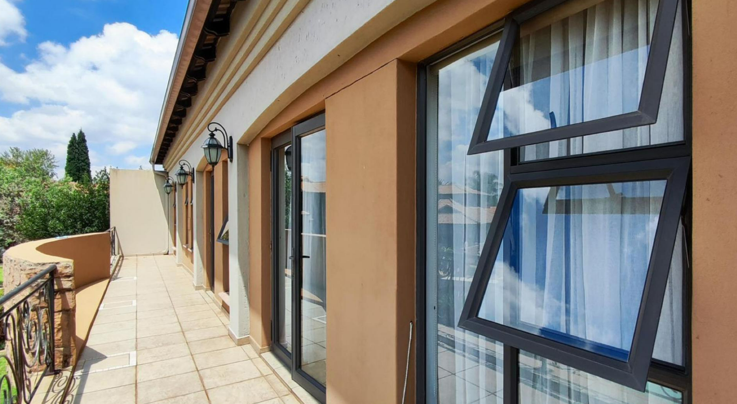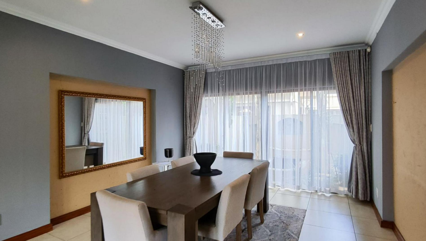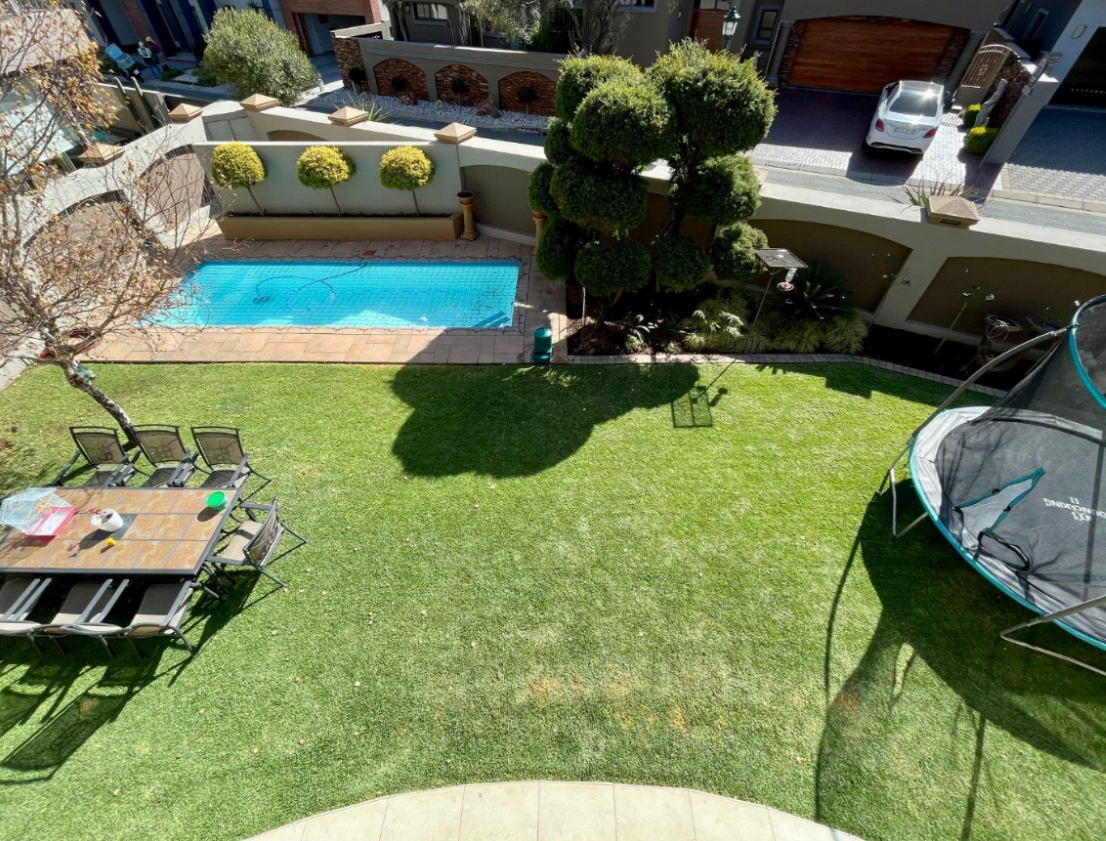 Discover this exceptional residential property located within a secure estate in Sunward Park, Boksburg. Boasting a modern-classic architectural style, the home immediately impresses with its attractive stone cladding, prominent columns, and an elegant balcony. A large paved driveway leads to a double garage and an ornate security gate, enhancing both curb appeal and peace of mind. Step inside to an inviting open-plan layout designed for contemporary living. The residence features two spacious lounges and a dedicated dining room, all adorned with modern recessed lighting, crown molding, and durable tiled flooring. The neutral colour palette throughout creates a versatile and calming atmosphere. The well-appointed kitchen is a highlight, offering dark wood cabinetry, integrated stainless steel appliances, a gas hob, and a convenient pantry. This space flows seamlessly into the living areas, perfect for entertaining. Accommodation comprises four comfortable bedrooms and three bathrooms, with two of these being en-suite, providing ample space and privacy for the entire family. The generous 461 sqm floor size ensures comfortable living across all areas. Outside, the property continues to impress with a private swimming pool, a spacious and well-maintained lawn, and an outdoor dining area, ideal for relaxation and entertaining. The garden and patio, accessible from the kitchen, offer additional outdoor enjoyment. With three garages, there is abundant parking and storage. The property benefits from being situated within a security estate, complete with an alarm system, access gate, security gate, and 24-hour security, ensuring a safe and tranquil environment. Sunward Park is a sought-after residential suburb in Boksburg, South Africa, known for its family-friendly atmosphere and convenient access to amenities. This home offers a blend of sophisticated design, practical features, and robust security, making it an ideal choice for discerning buyers. Key Features: * 4 Bedrooms, 3 Bathrooms (2 En-suite) * 3 Garages * Private Swimming Pool * Open-Plan Living Areas (2 Lounges, 1 Dining Room) * Modern Kitchen with Pantry * Balcony and Paved Driveway * Security Estate with 24-hour Security * Erf Size: 631 sqm, Floor Size: 461 sqm * Pet-Friendly