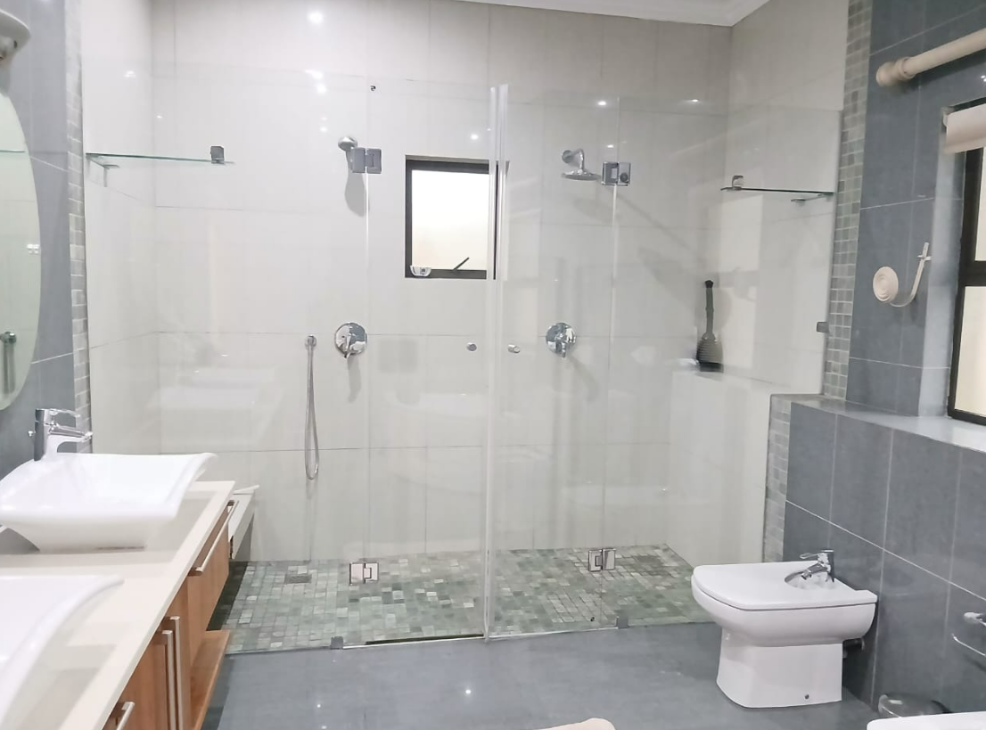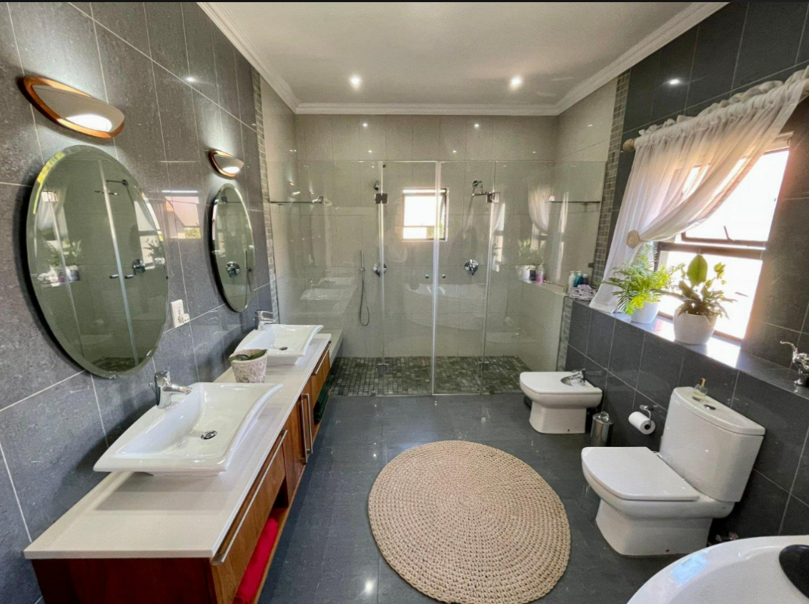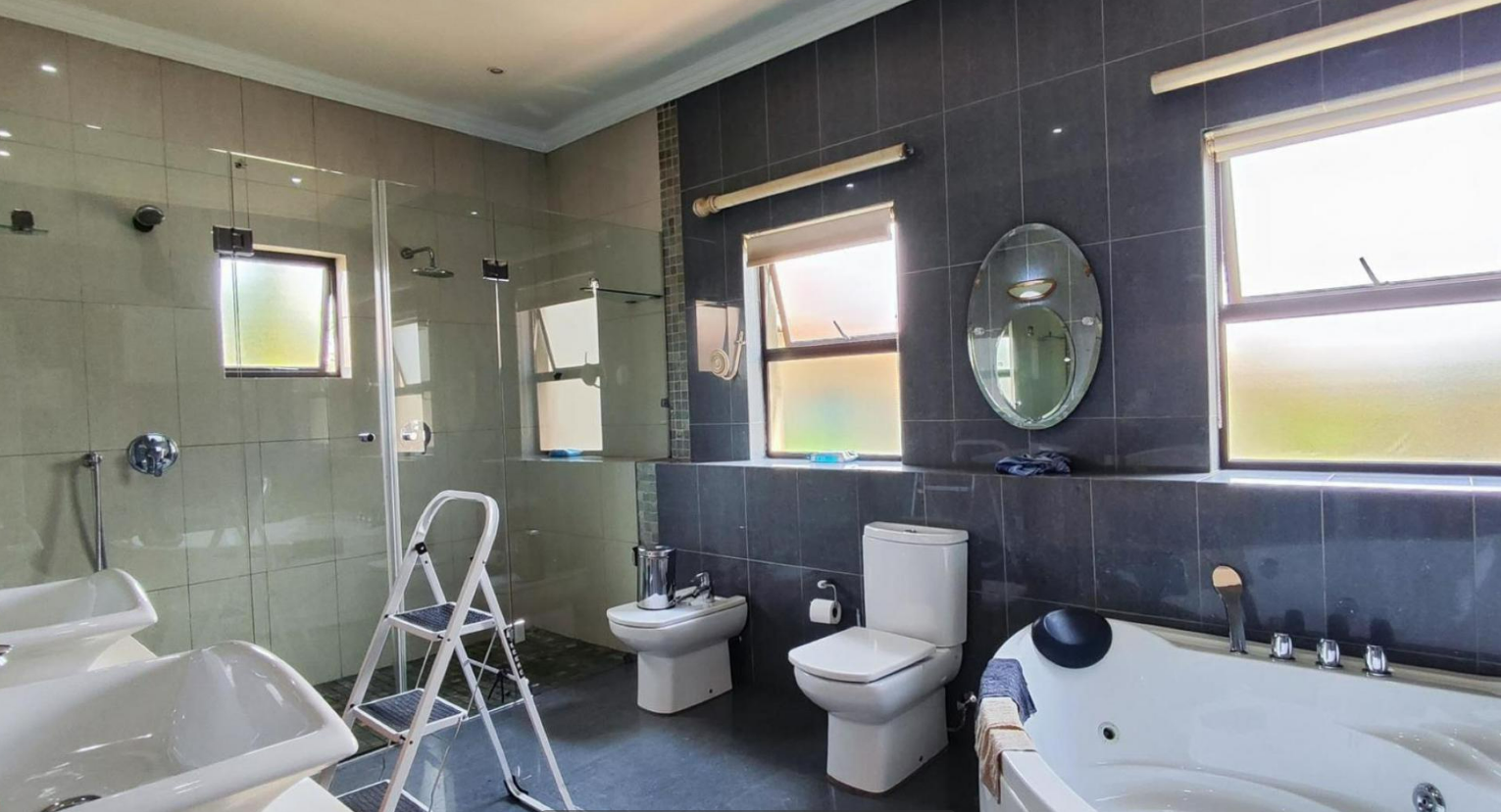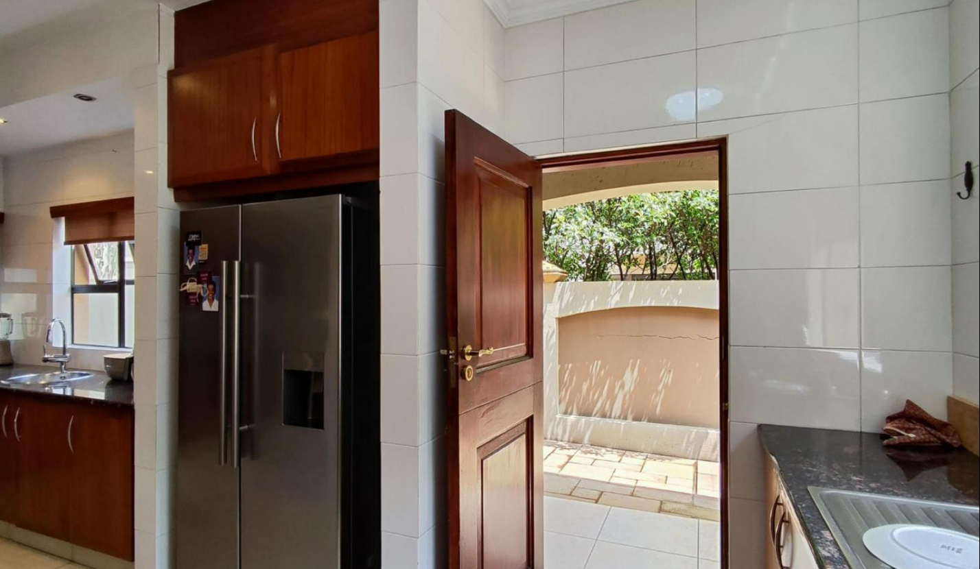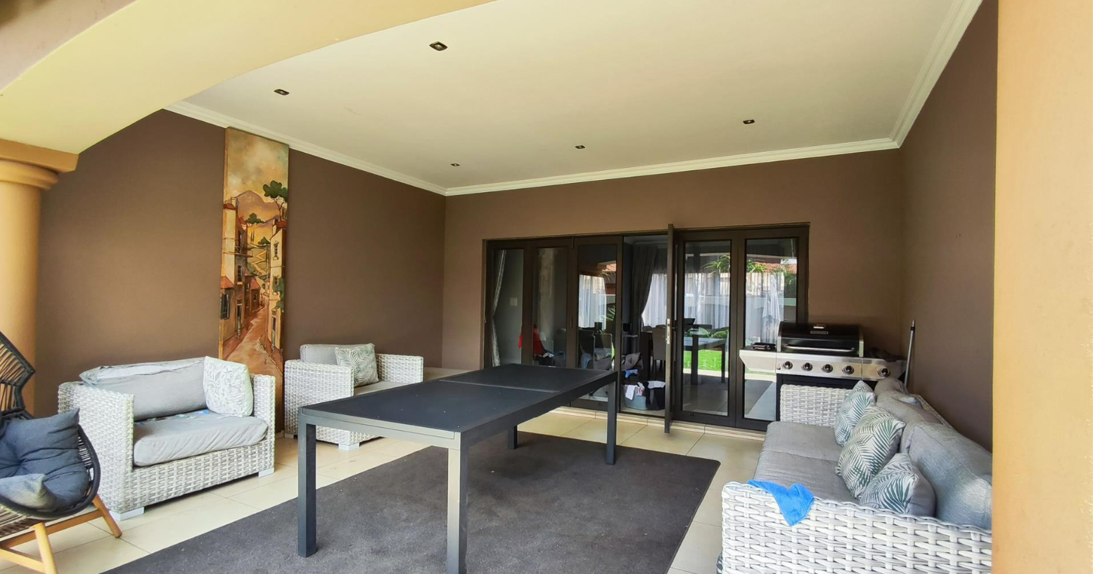 Discover this exceptional residential property located within a secure estate in Sunward Park, Boksburg. Boasting a modern-classic architectural style, the home immediately impresses with its attractive stone cladding, prominent columns, and an elegant balcony. A large paved driveway leads to a double garage and an ornate security gate, enhancing both curb appeal and peace of mind. Step inside to an inviting open-plan layout designed for contemporary living. The residence features two spacious lounges and a dedicated dining room, all adorned with modern recessed lighting, crown molding, and durable tiled flooring. The neutral colour palette throughout creates a versatile and calming atmosphere. The well-appointed kitchen is a highlight, offering dark wood cabinetry, integrated stainless steel appliances, a gas hob, and a convenient pantry. This space flows seamlessly into the living areas, perfect for entertaining. Accommodation comprises four comfortable bedrooms and three bathrooms, with two of these being en-suite, providing ample space and privacy for the entire family. The generous 461 sqm floor size ensures comfortable living across all areas. Outside, the property continues to impress with a private swimming pool, a spacious and well-maintained lawn, and an outdoor dining area, ideal for relaxation and entertaining. The garden and patio, accessible from the kitchen, offer additional outdoor enjoyment. With three garages, there is abundant parking and storage. The property benefits from being situated within a security estate, complete with an alarm system, access gate, security gate, and 24-hour security, ensuring a safe and tranquil environment. Sunward Park is a sought-after residential suburb in Boksburg, South Africa, known for its family-friendly atmosphere and convenient access to amenities. This home offers a blend of sophisticated design, practical features, and robust security, making it an ideal choice for discerning buyers. Key Features: * 4 Bedrooms, 3 Bathrooms (2 En-suite) * 3 Garages * Private Swimming Pool * Open-Plan Living Areas (2 Lounges, 1 Dining Room) * Modern Kitchen with Pantry * Balcony and Paved Driveway * Security Estate with 24-hour Security * Erf Size: 631 sqm, Floor Size: 461 sqm * Pet-Friendly
