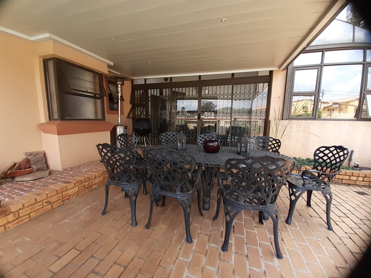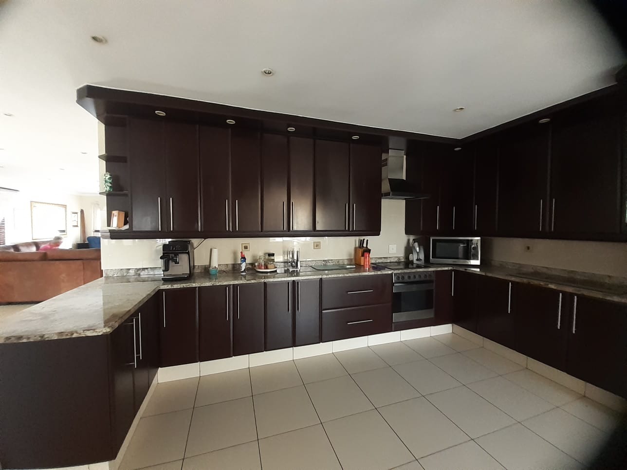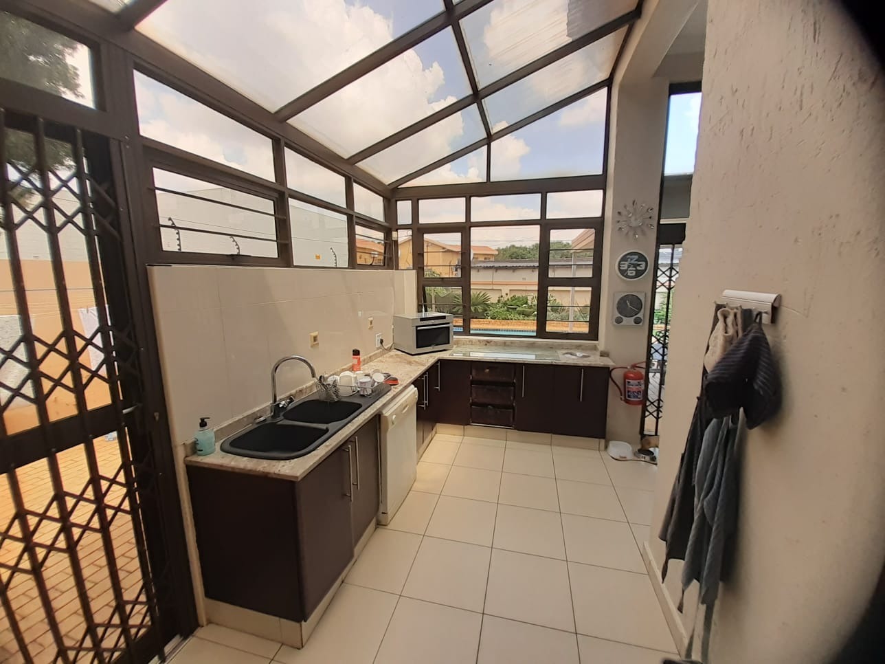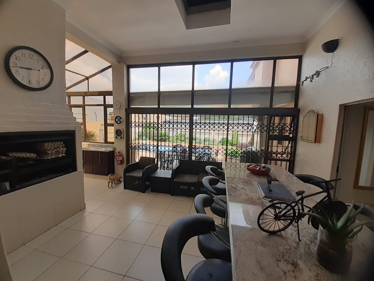 Nestled in the desirable suburban area of Sunward Park, Boksburg, this residential property offers comfort and functionality. A tiled entrance leads into a spacious, open-plan lounge and dining area, ideal for family living and entertaining. The stunning open-plan kitchen is meticulously designed with ample cupboards, granite countertops, and a breakfast counter. It is well-equipped with a double eye-level oven, glass hob, under-counter oven, and a gas hob, complemented by a pantry cupboard and a separate scullery with a double sink.