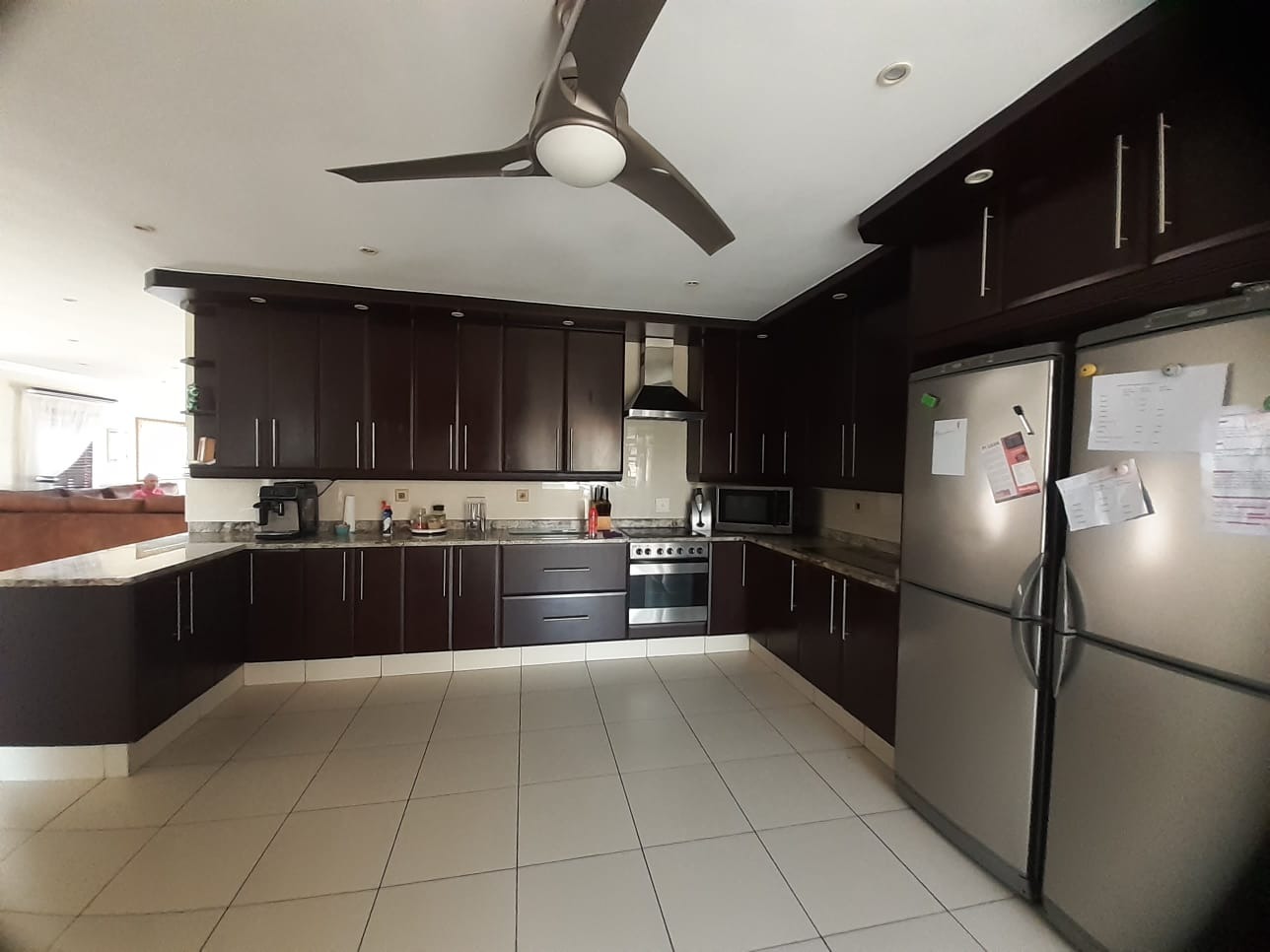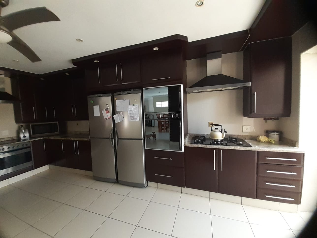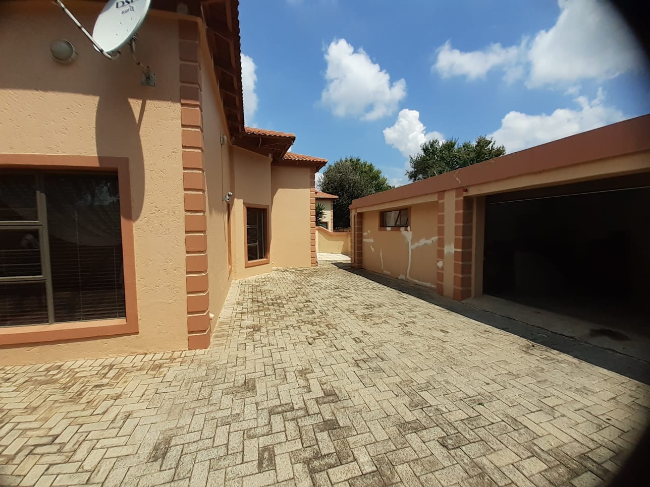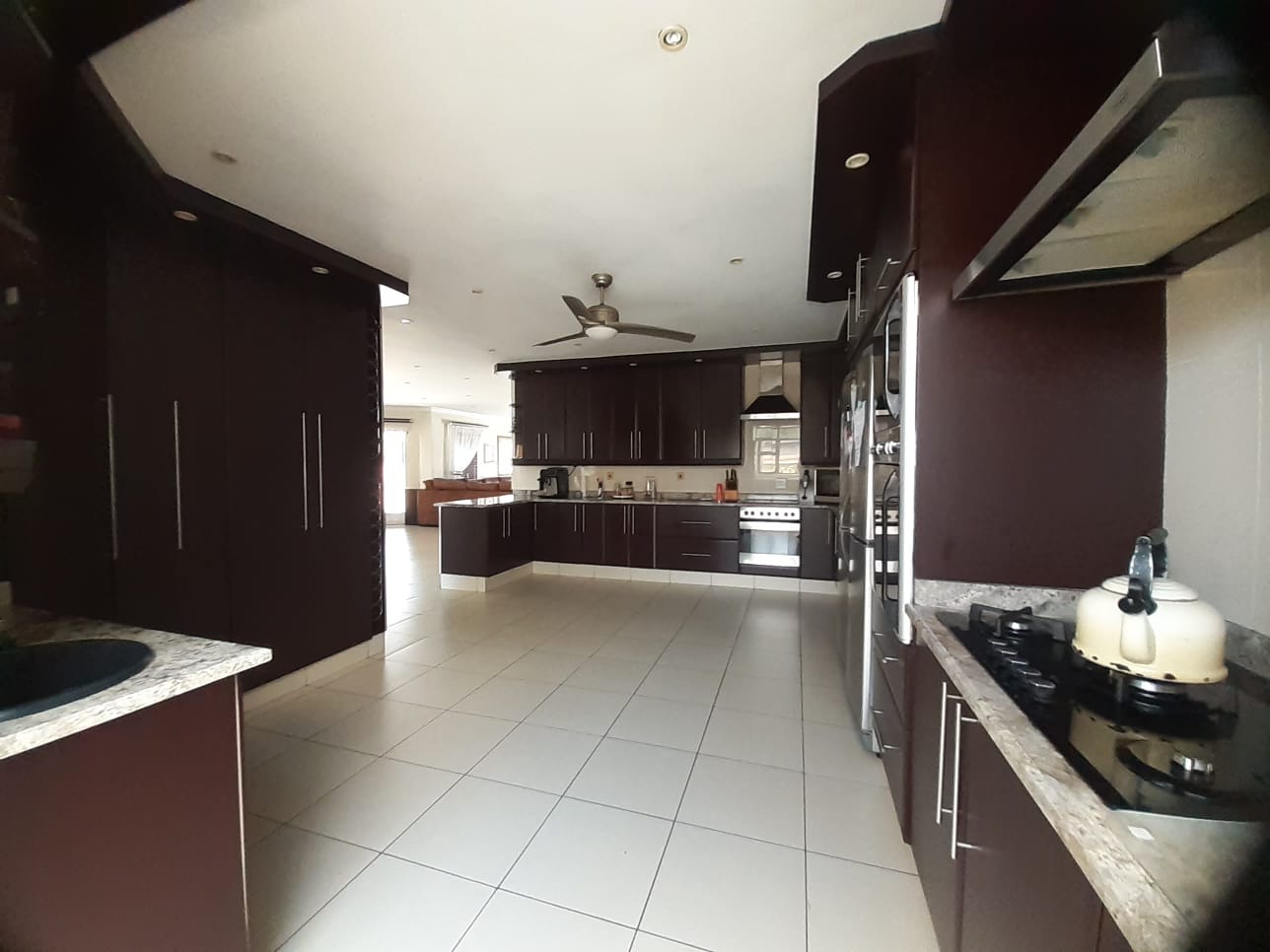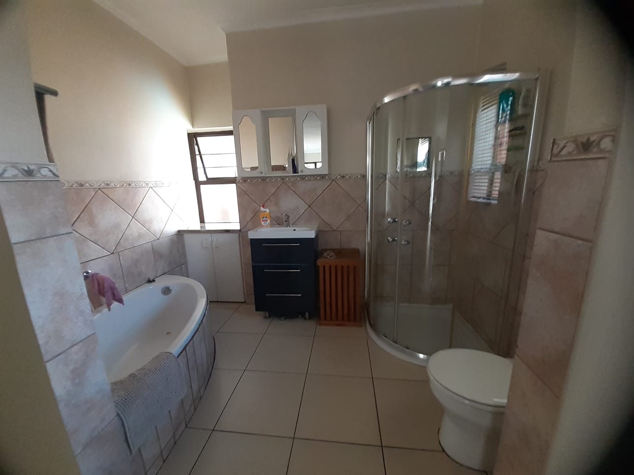 Nestled in the desirable suburban area of Sunward Park, Boksburg, this residential property offers comfort and functionality. A tiled entrance leads into a spacious, open-plan lounge and dining area, ideal for family living and entertaining. The stunning open-plan kitchen is meticulously designed with ample cupboards, granite countertops, and a breakfast counter. It is well-equipped with a double eye-level oven, glass hob, under-counter oven, and a gas hob, complemented by a pantry cupboard and a separate scullery with a double sink.