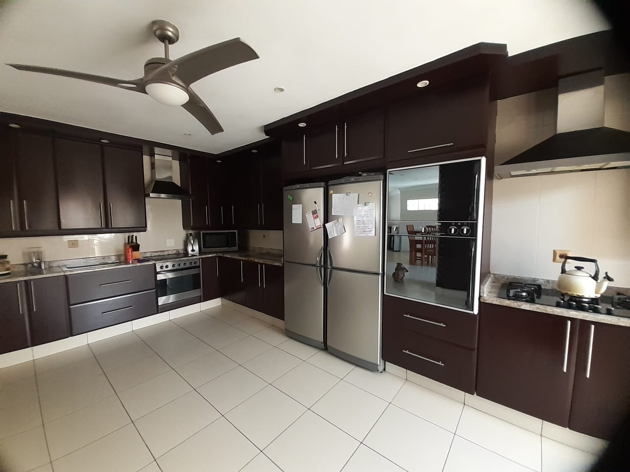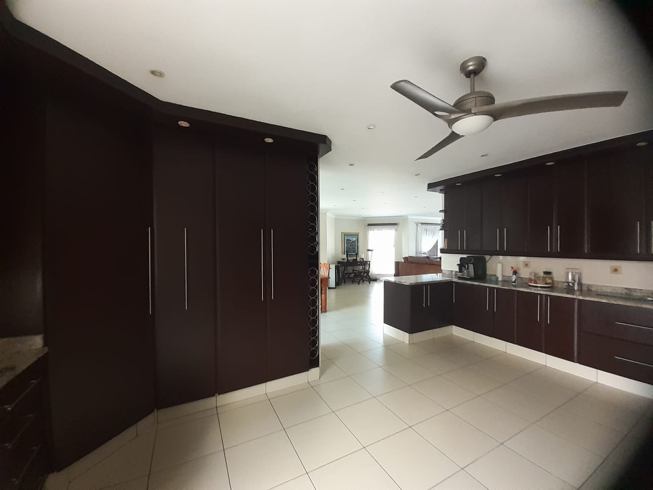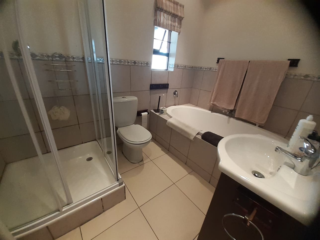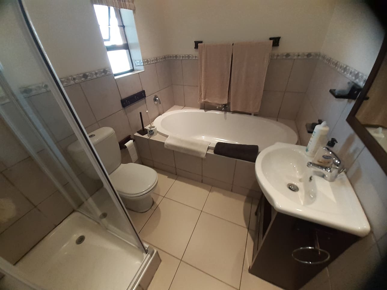 Nestled in the desirable suburban area of Sunward Park, Boksburg, this residential property offers comfort and functionality. A tiled entrance leads into a spacious, open-plan lounge and dining area, ideal for family living and entertaining. The stunning open-plan kitchen is meticulously designed with ample cupboards, granite countertops, and a breakfast counter. It is well-equipped with a double eye-level oven, glass hob, under-counter oven, and a gas hob, complemented by a pantry cupboard and a separate scullery with a double sink.