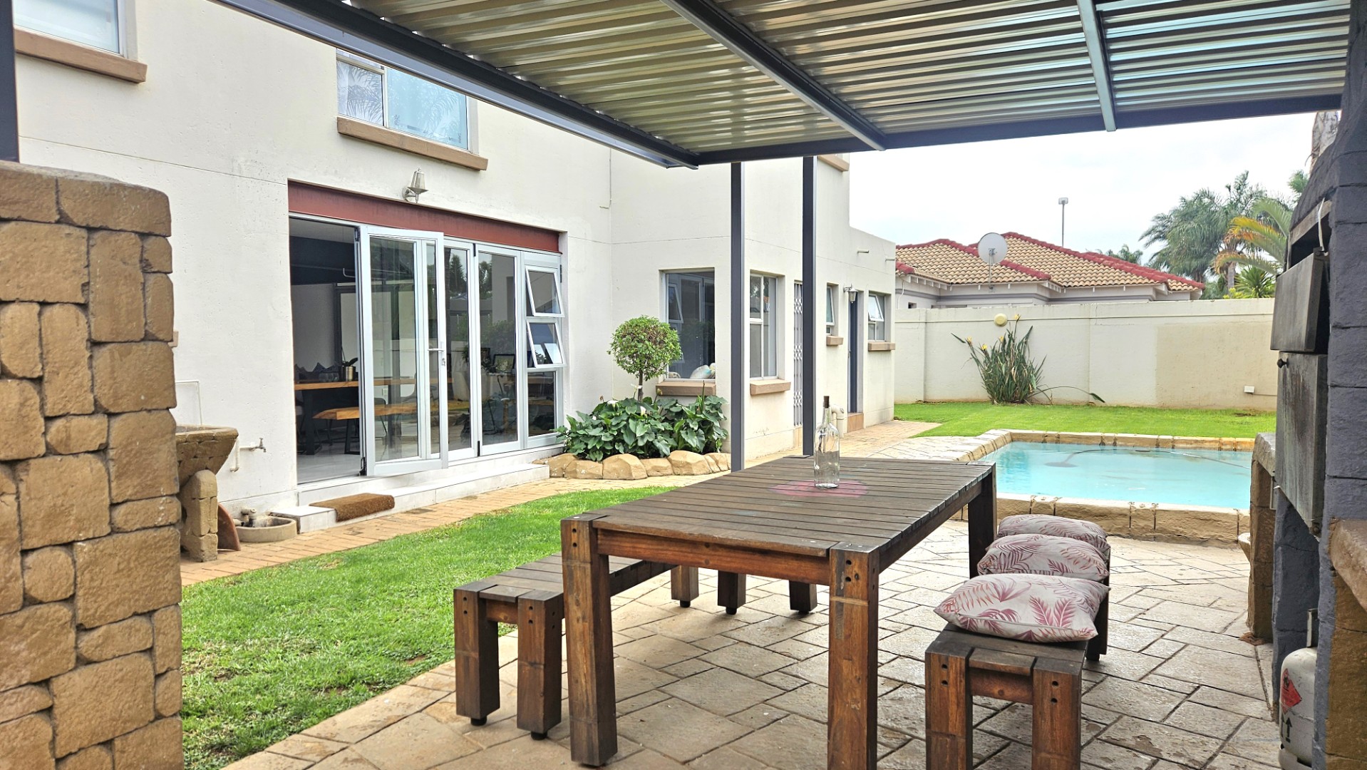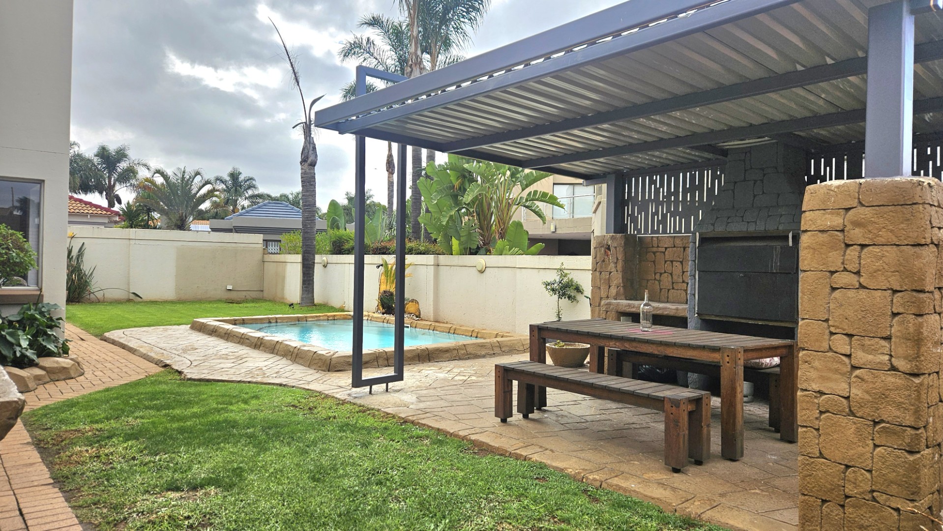 Entertain effortlessly with stacker doors to the enclosed braai room, as well as the private garden with covered patio, built-in braai and sparkling pool - perfect for relaxed weekends