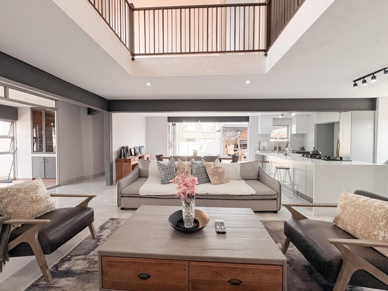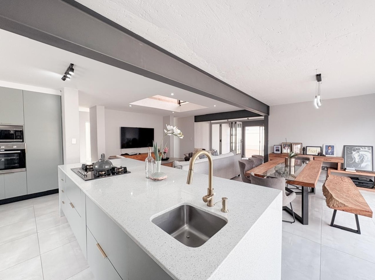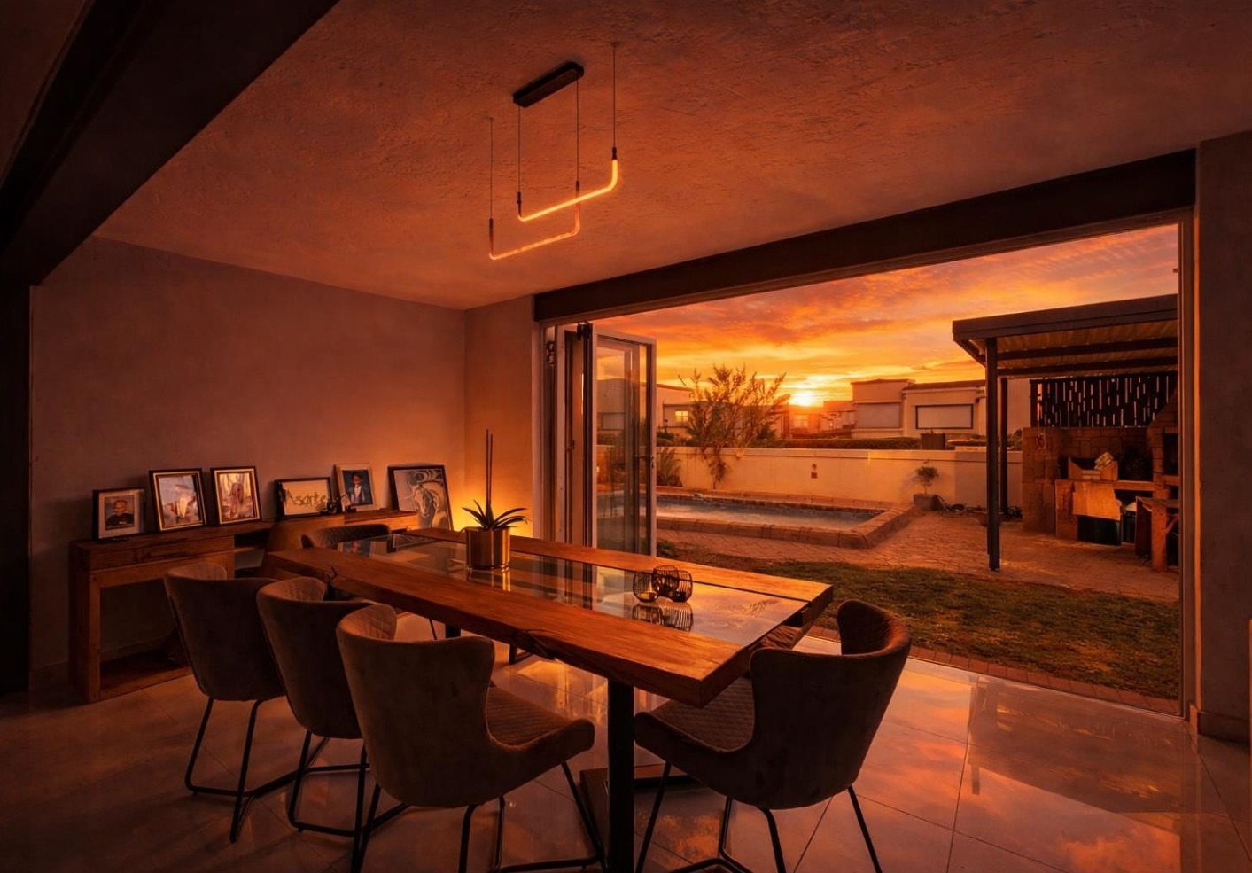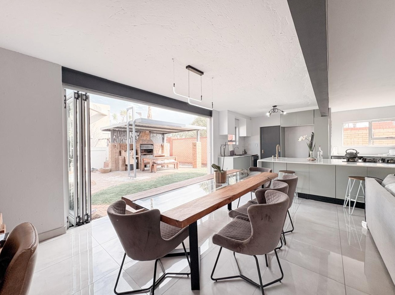 From the moment you enter, you are welcomed by a freshly painted and tiled entrance hall that leads into an inviting lounge area. The main living spaces are designed with effortless flow in mind, offering open-plan lounge, dining, and kitchen areas, all opening through stacker doors onto the pool and garden — perfect for indoor-outdoor living.