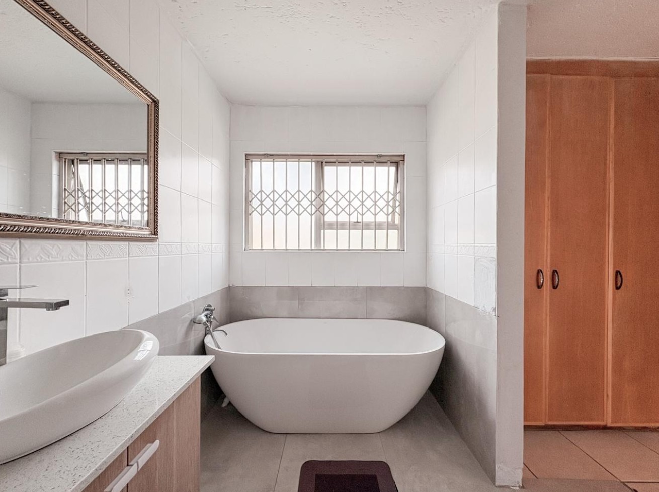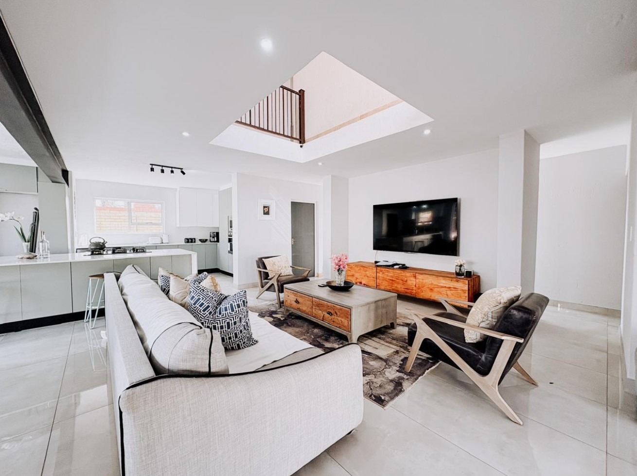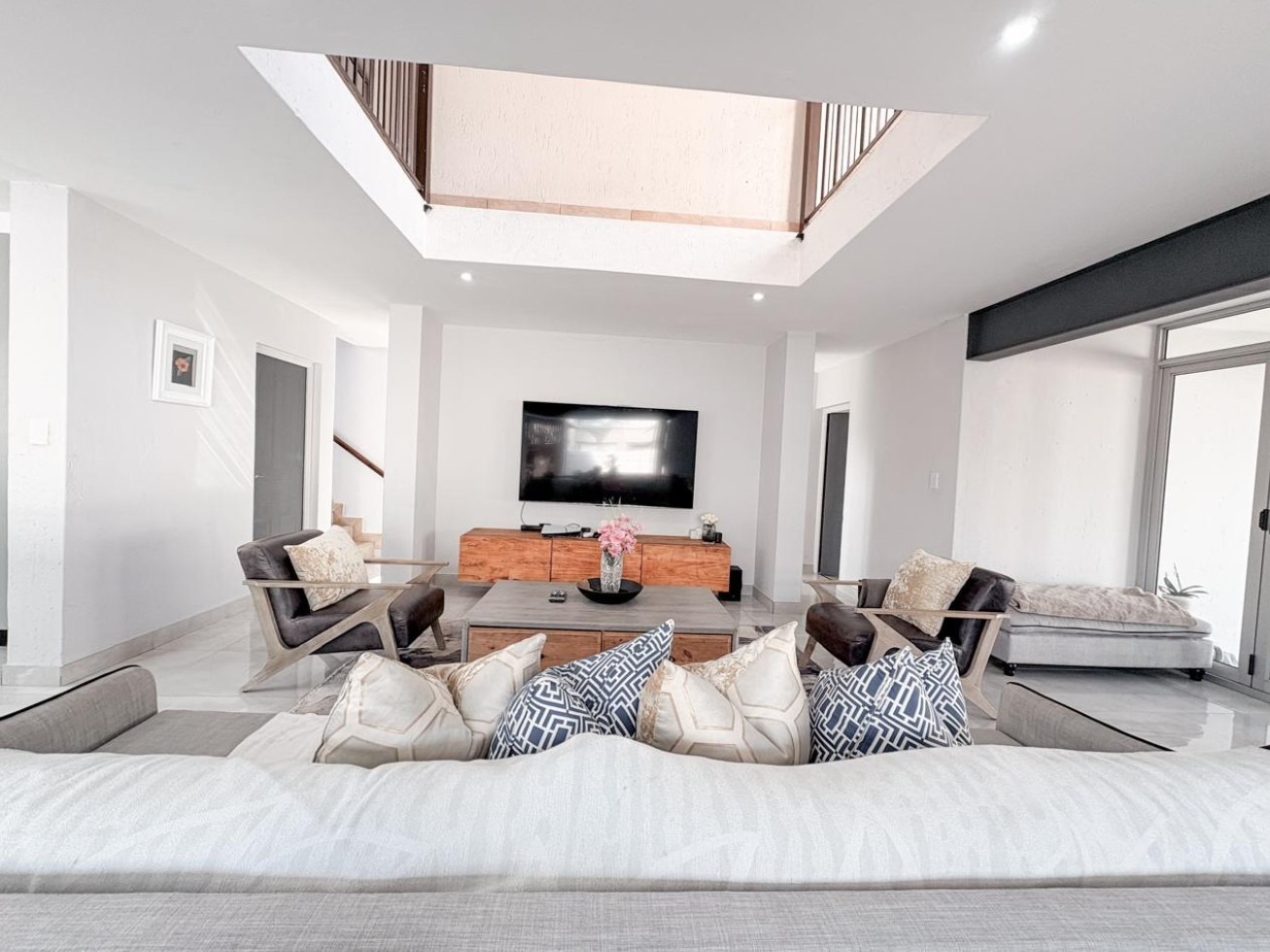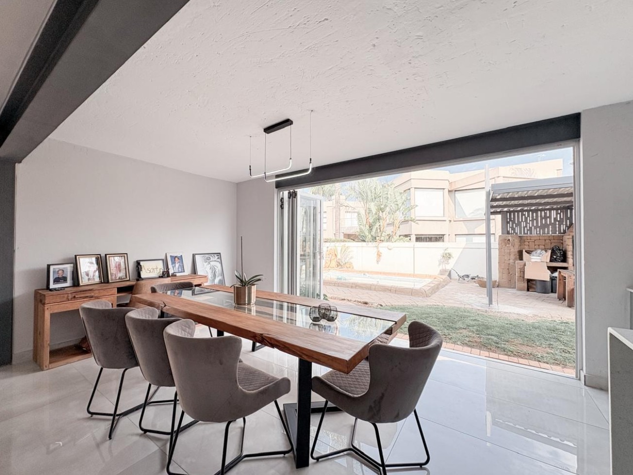 From the moment you enter, you are welcomed by a freshly painted and tiled entrance hall that leads into an inviting lounge area. The main living spaces are designed with effortless flow in mind, offering open-plan lounge, dining, and kitchen areas, all opening through stacker doors onto the pool and garden — perfect for indoor-outdoor living.