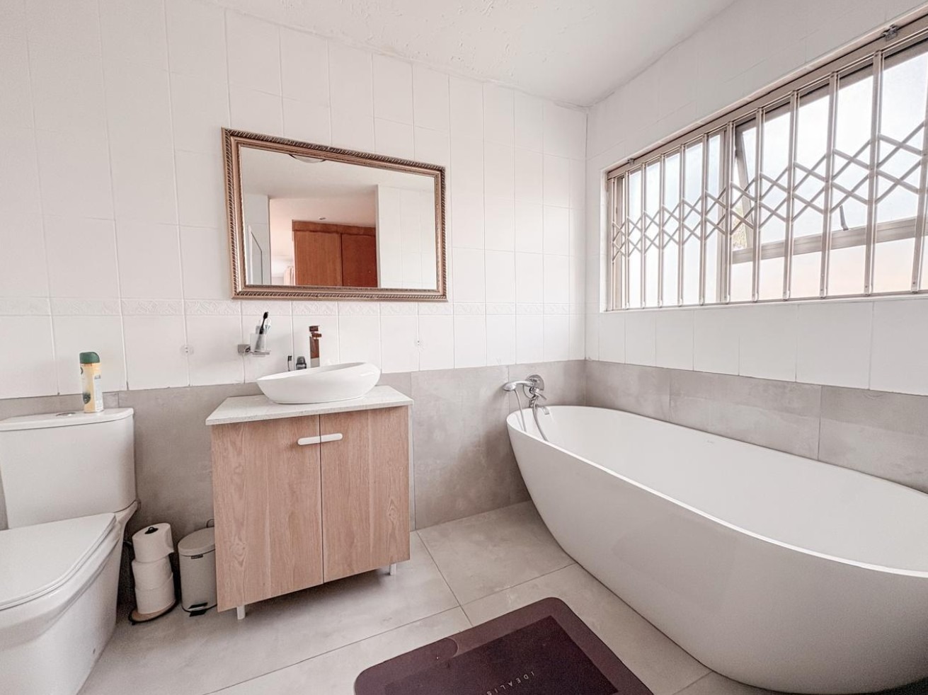 The main bedroom opens onto a large upstairs balcony and features a newly renovated en-suite bathroom with a bath, shower, basin, and toilet.
