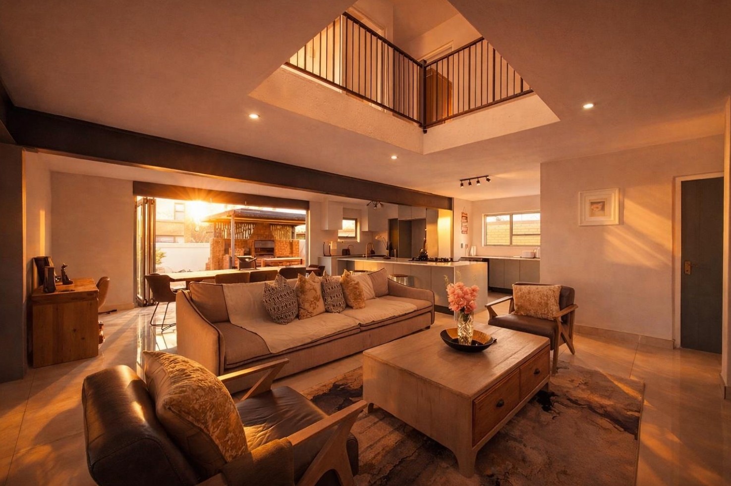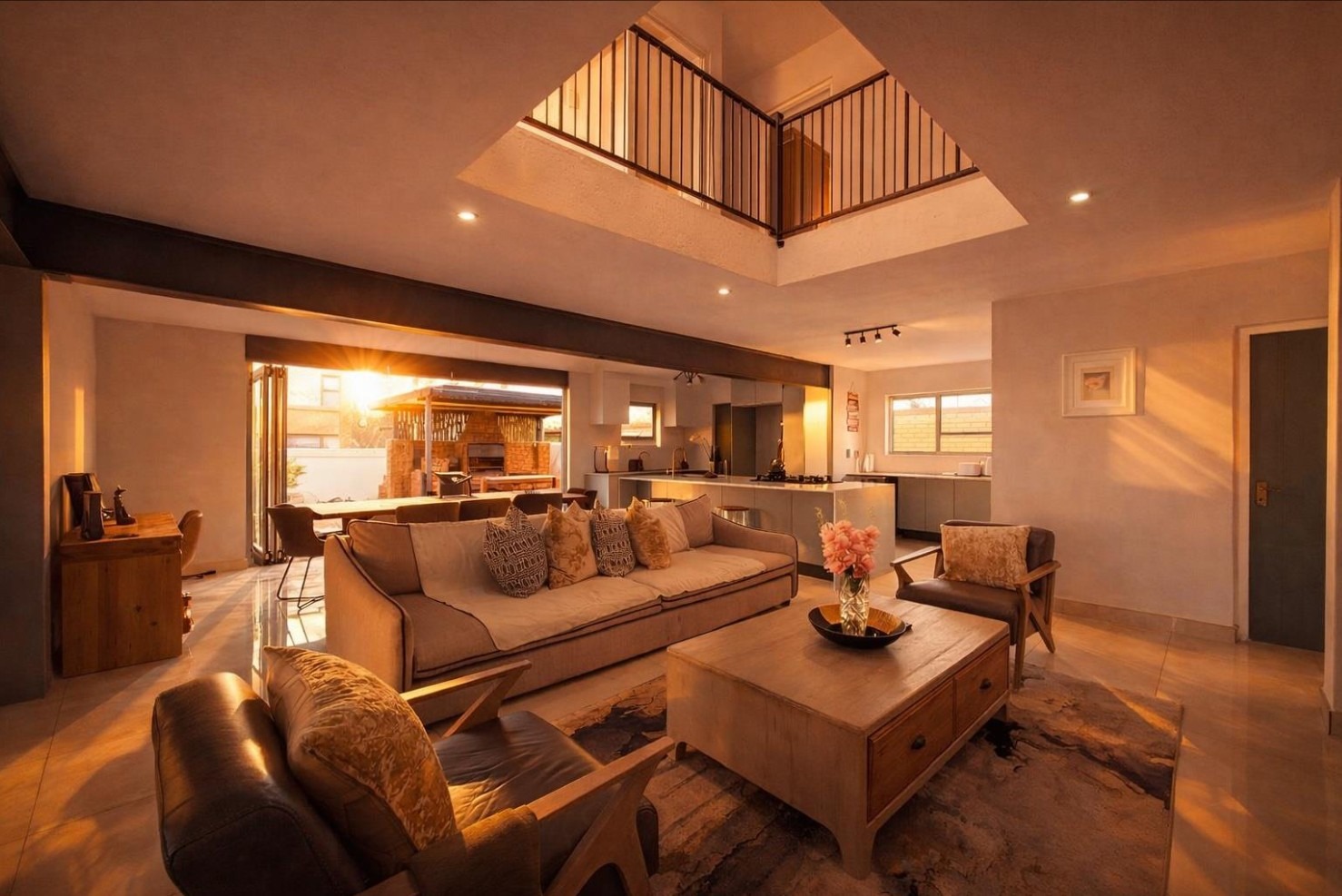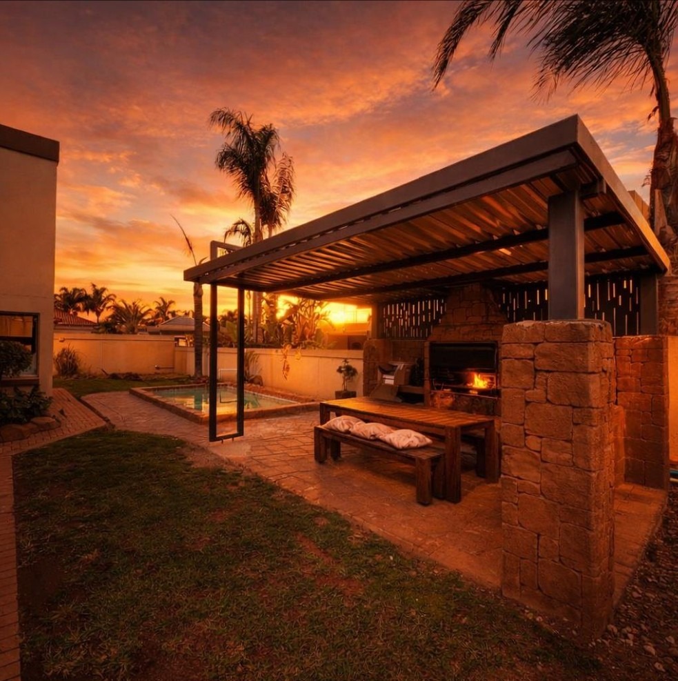 An enclosed braai room adds further entertainment appeal, opening with stacker doors both to the main living area and to a private paved garden courtyard.