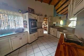 Kitchen: Spacious with ample built-in cupboards, melamine countertops, four-plate stove, double eye-level oven, breakfast counter and partially tiled walls