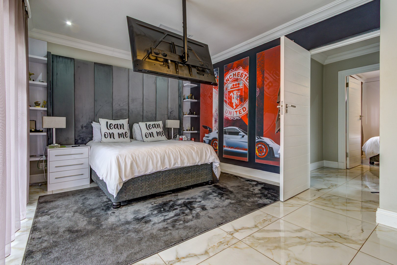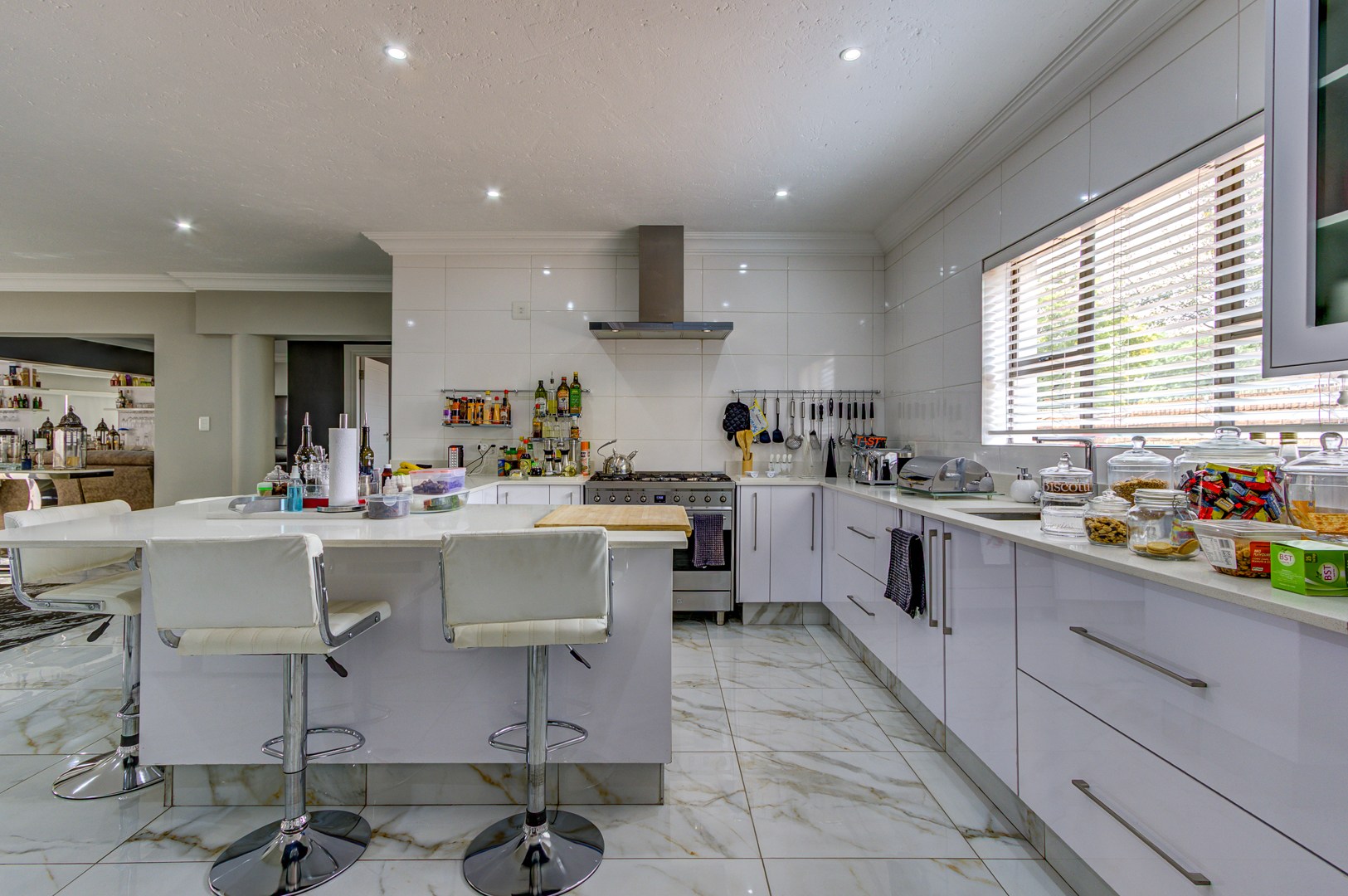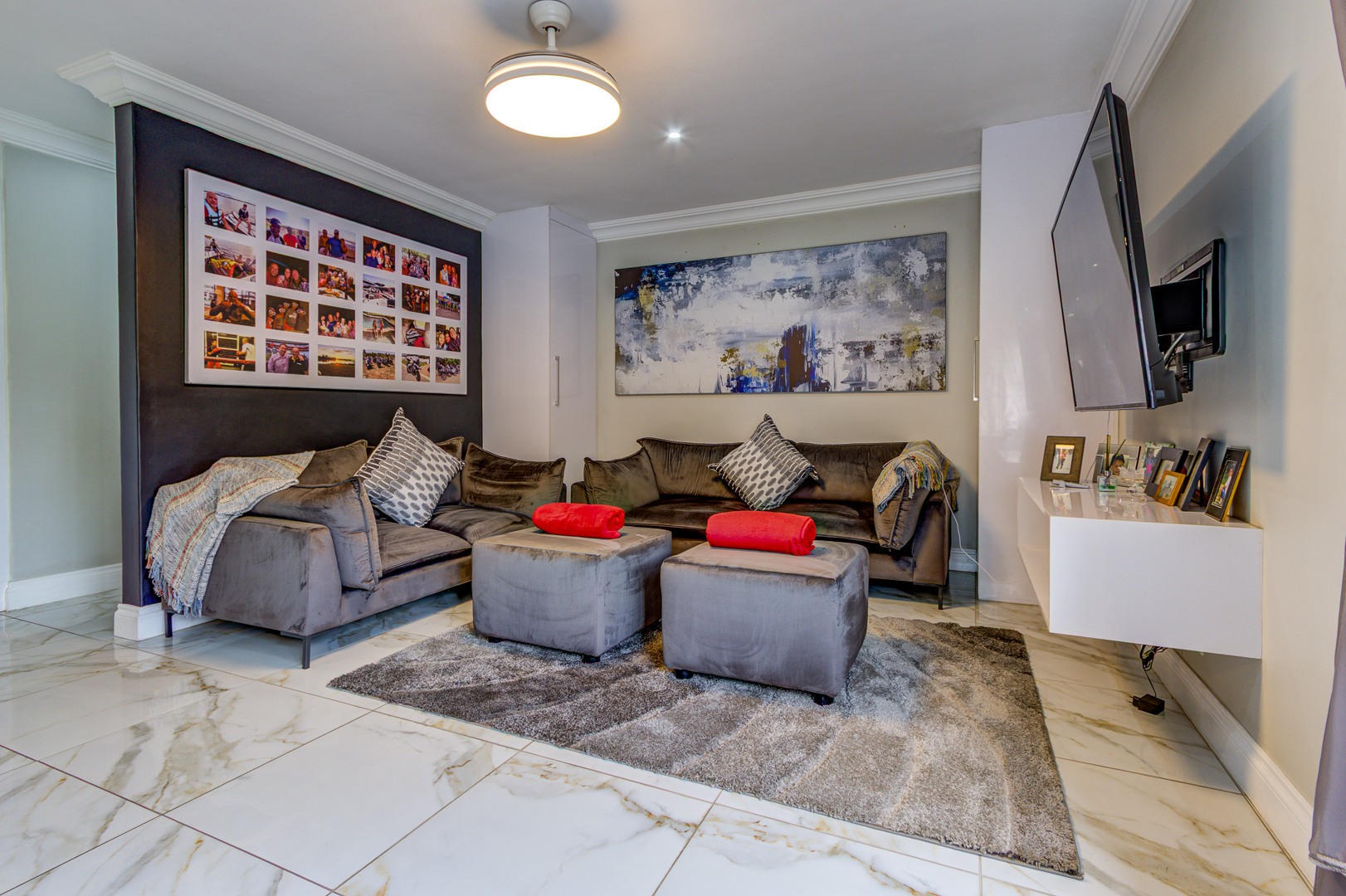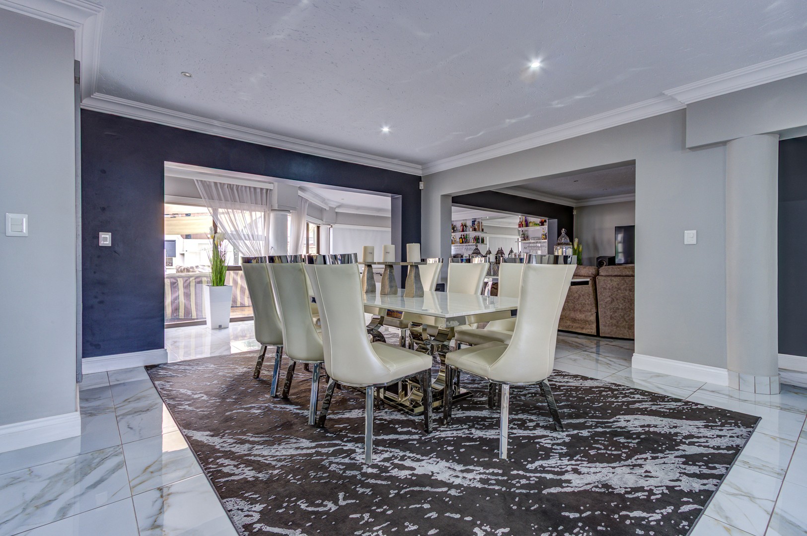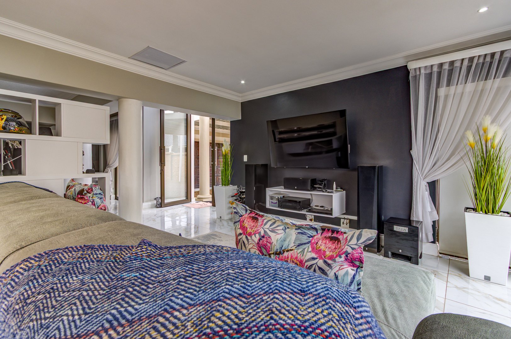 The lounge and TV room, also beautiful open spaces with the same elegant porcelain tile flowing throughout the entire home, a home that truly needs to be viewed for one to see and feel the incredible beauty.