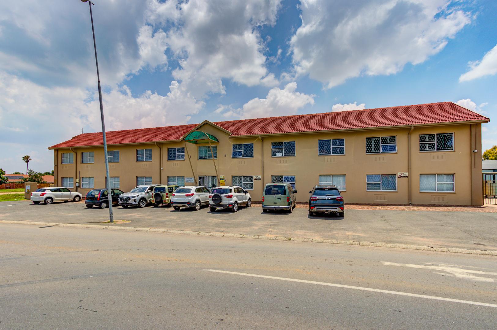 Discover a prime commercial opportunity in the established area of Sunward Park, Boksburg. This well-maintained, two-story building presents a professional facade with a red tiled roof and light-colored walls, offering excellent visibility and direct road access. Ample paved off-street parking directly in front, complemented by a secured, gated entrance, ensures convenience and security for clients and staff.