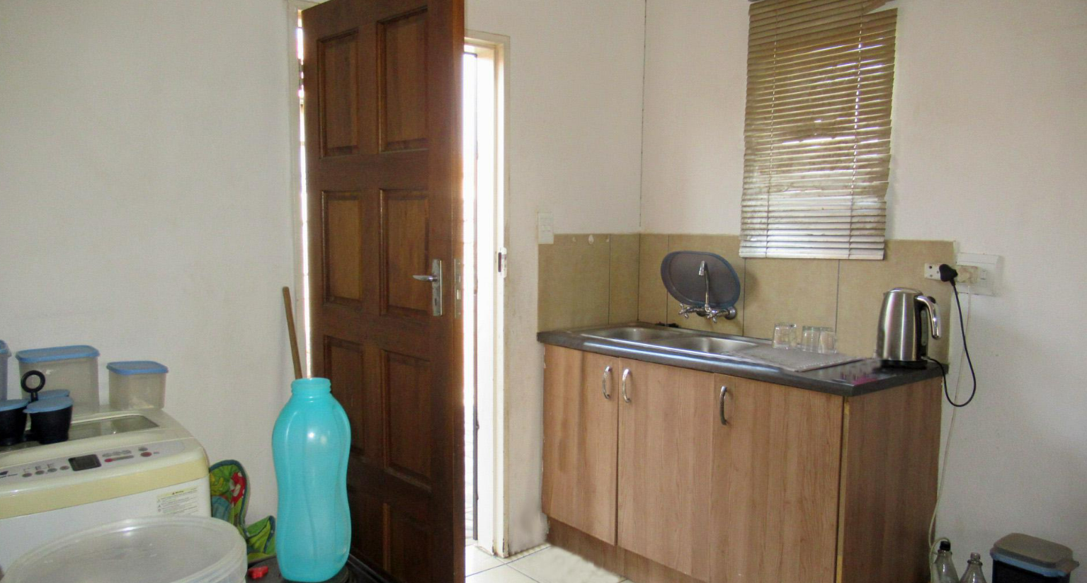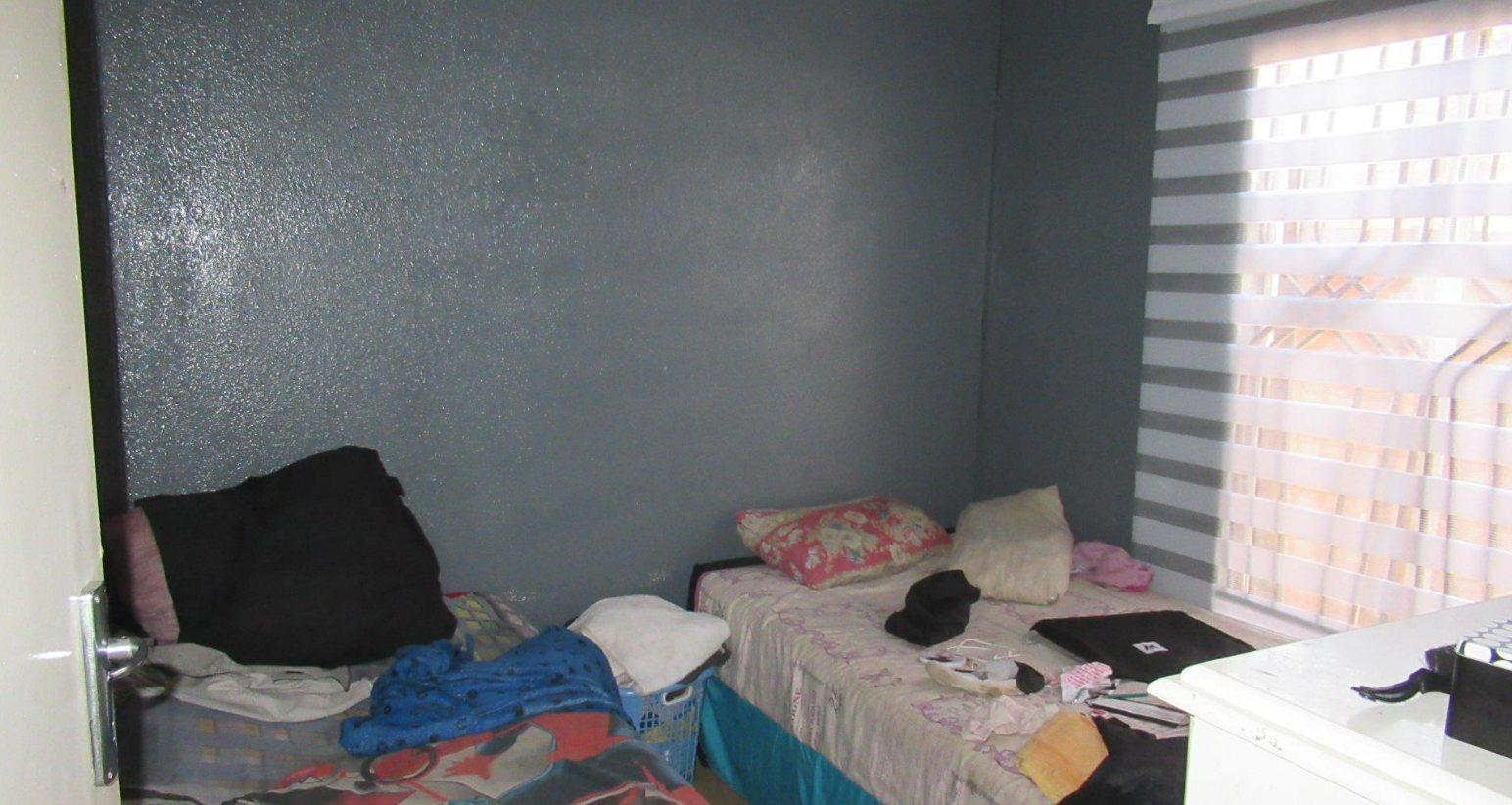 This compact single-story home in Windmill Park, Boksburg, presents a functional and low-maintenance exterior. It features a paved front yard and driveway, offering convenient off-street parking for two vehicles, complemented by a covered carport structure. A security gate enhances the main entrance, and the property benefits from a solar water heater, promoting energy efficiency. Situated on a 196 sqm erf, this property offers a practical footprint for comfortable living. Inside, the home comprises one lounge area, benefiting from ample natural light through large windows. The functional kitchen area includes a sink, wooden base cabinets, and space for a washing machine, providing essential amenities. While presenting an opportunity for personal touches, the layout is practical for daily living. Accommodation includes two bedrooms, each offering natural light. The main bedroom features light blue walls and full-length curtains, while the second bedroom has modern venetian blinds. A single bathroom is equipped with a toilet, pedestal sink, and bathtub, with a window for ventilation. Security bars on some windows provide added peace of mind. Located in this established residential area of Boksburg, this property offers a suburban lifestyle with access to local amenities. This home represents a solid opportunity for first-time buyers or investors seeking a property with potential. Key Features: * 2 Bedrooms, 1 Bathroom * 1 Lounge, 1 Kitchen * Paved front yard and driveway * Parking for 2 vehicles * Solar water heater * Security gate and window bars * 196 sqm Erf Size * Pet-friendly