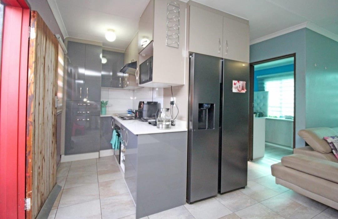 This inviting 3-bedroom, 1-bathroom residence in Windmill Park, Boksburg, offers a comfortable and secure living environment. Spanning 94 square metres on a 162 square metre erf, this home is designed for practical family living. The open-plan layout seamlessly connects the spacious living area with a modern kitchenette, creating an inclusive space for daily activities and entertaining. The living area features durable tiled flooring, a large sectional sofa, and modern window blinds, complemented by varied wall colours that add character and a portable gas heater for comfort. The contemporary kitchen is a highlight, boasting sleek glossy grey cabinetry, white countertops, and a large black double-door refrigerator. It is equipped with a built-in microwave and an integrated cooktop, providing a functional space for culinary endeavours. The property's single bathroom includes a bathtub, wall-mounted sink, and toilet, offering essential amenities. While presenting a functional space, it also provides an excellent opportunity for future cosmetic updates to align with personal style. Outside, the property provides three dedicated open parking spaces, ensuring convenience for residents and guests. The home is situated within a secure environment, benefiting from 24-hour security, CCTV surveillance, a security post, and a security gate, all within a totally walled perimeter for enhanced peace of mind. Fibre internet connectivity is available, catering to modern digital needs. Pets are allowed, making this an ideal choice for animal lovers seeking a suburban lifestyle. Windmill Park is a well-established suburban area in Boksburg, South Africa, offering a community setting with accessibility to local amenities and transport routes. This property represents a solid opportunity for those seeking a well-located home with essential features, modern conveniences, and a strong emphasis on security. Key Features: * 3 Bedrooms, 1 Bathroom * Open-plan living and modern kitchen * Durable tiled flooring throughout * Secure property with 24-hour security and CCTV * Fibre internet connectivity * 3 Dedicated parking spaces * Pets allowed * Erf Size: 162 sqm, Floor Size: 94 sqm