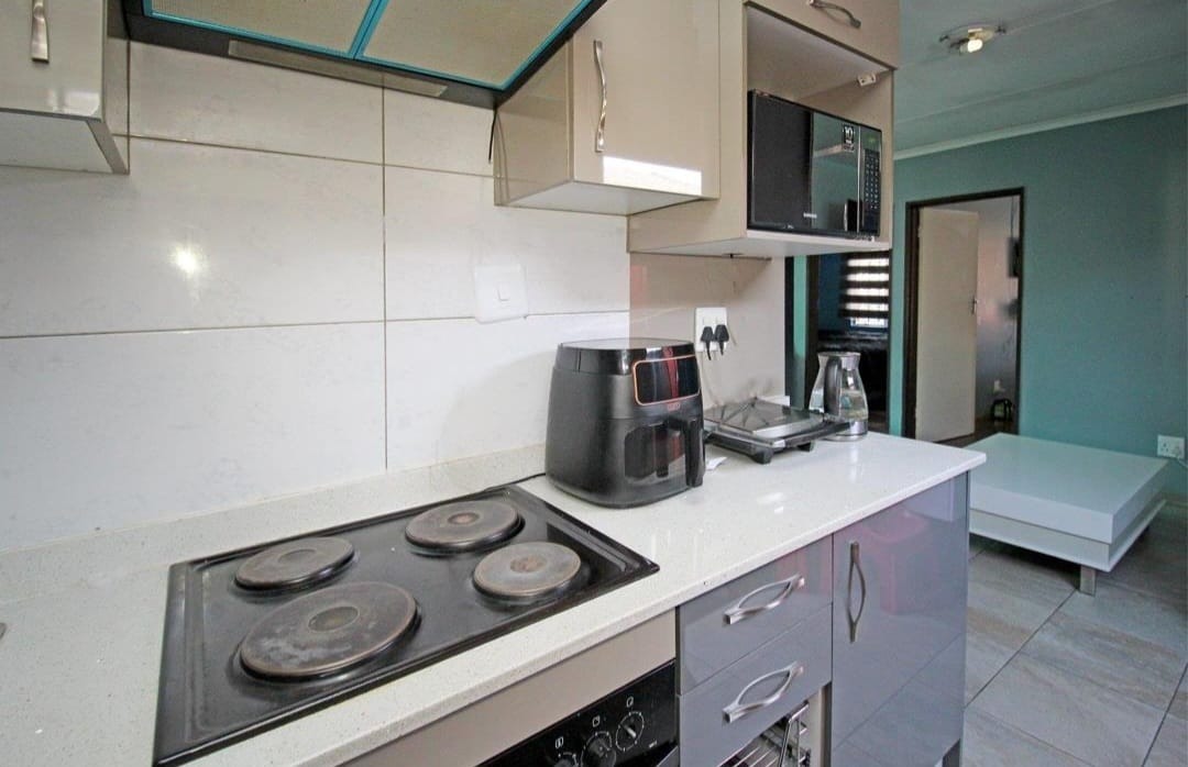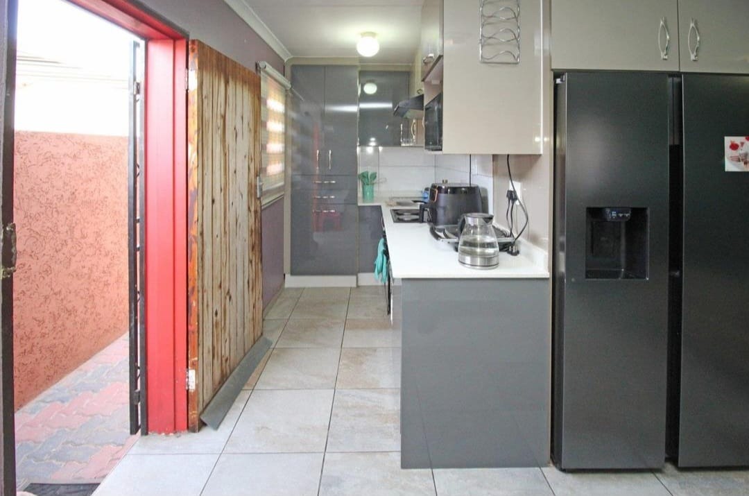 This inviting 3-bedroom, 1-bathroom residence in Windmill Park, Boksburg, offers a comfortable and secure living environment. Spanning 94 square metres on a 162 square metre erf, this home is designed for practical family living. The open-plan layout seamlessly connects the spacious living area with a modern kitchenette, creating an inclusive space for daily activities and entertaining. The living area features durable tiled flooring, a large sectional sofa, and modern window blinds, complemented by varied wall colours that add character and a portable gas heater for comfort. The contemporary kitchen is a highlight, boasting sleek glossy grey cabinetry, white countertops, and a large black double-door refrigerator. It is equipped with a built-in microwave and an integrated cooktop, providing a functional space for culinary endeavours. The property's single bathroom includes a bathtub, wall-mounted sink, and toilet, offering essential amenities. While presenting a functional space, it also provides an excellent opportunity for future cosmetic updates to align with personal style. Outside, the property provides three dedicated open parking spaces, ensuring convenience for residents and guests. The home is situated within a secure environment, benefiting from 24-hour security, CCTV surveillance, a security post, and a security gate, all within a totally walled perimeter for enhanced peace of mind. Fibre internet connectivity is available, catering to modern digital needs. Pets are allowed, making this an ideal choice for animal lovers seeking a suburban lifestyle. Windmill Park is a well-established suburban area in Boksburg, South Africa, offering a community setting with accessibility to local amenities and transport routes. This property represents a solid opportunity for those seeking a well-located home with essential features, modern conveniences, and a strong emphasis on security. Key Features: * 3 Bedrooms, 1 Bathroom * Open-plan living and modern kitchen * Durable tiled flooring throughout * Secure property with 24-hour security and CCTV * Fibre internet connectivity * 3 Dedicated parking spaces * Pets allowed * Erf Size: 162 sqm, Floor Size: 94 sqm