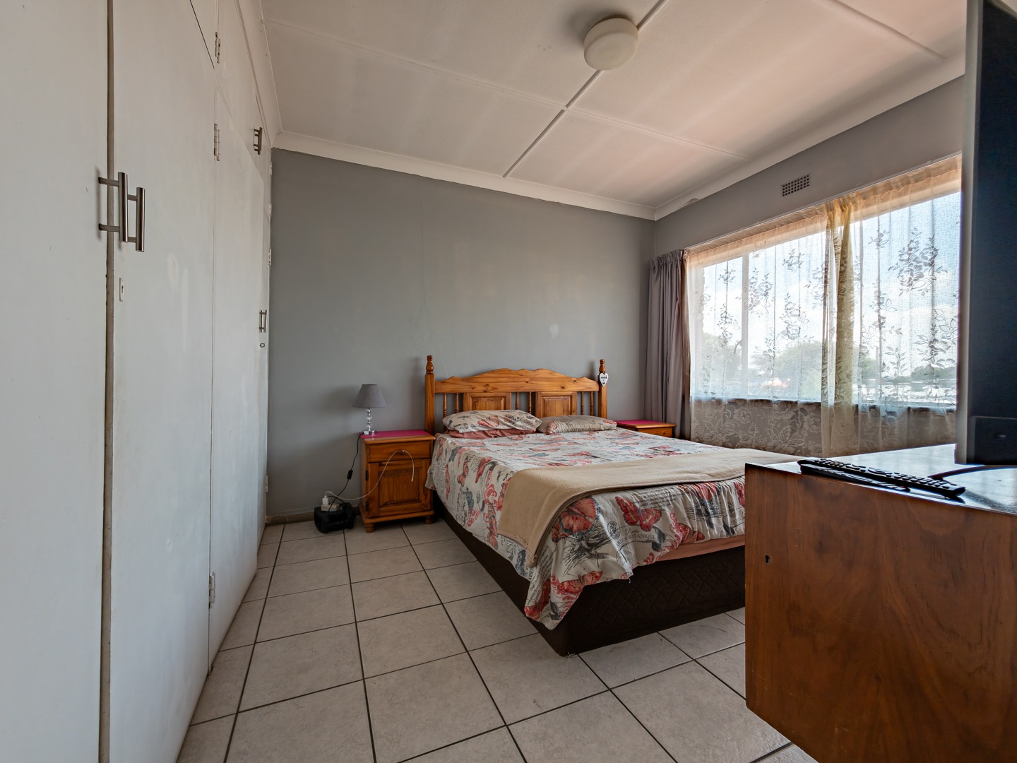 The home features two bright bedrooms with built-in cupboards, a neat bathroom, and a separate guest toilet.