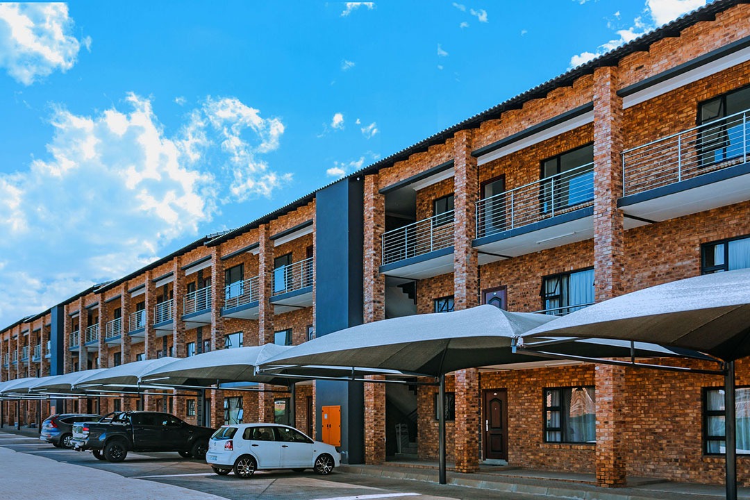 The complex boasts essential operational features that enhance its appeal to investors and tenants alike. Ample covered parking spaces are a significant advantage, providing convenience and protection for residents' vehicles, as highlighted by the well-maintained appearance and clear parking bay markings in the aerial views. Security is paramount, with a gated entrance ensuring controlled access and contributing to a secure living environment within this security complex. The brick exterior and balconies of the units present a modern and well-kept aesthetic.