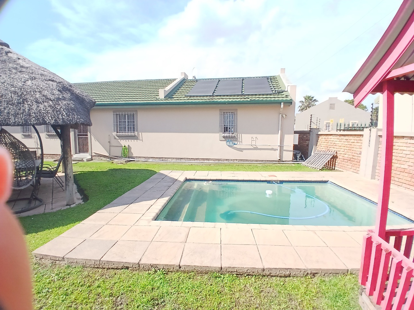 Discover this inviting 3-bedroom, 2-bathroom family home, including one en-suite, situated within a secure gated community in Dalpark Ext 1, Brakpan. The interior features an open-plan living area, seamlessly connecting a comfortable lounge to a modern kitchen. This well-appointed kitchen boasts light wood-look cabinetry, dark countertops, a stylish tiled backsplash, a freestanding gas range, and a practical breakfast bar, ideal for daily living and entertaining. Tiled flooring throughout ensures a clean and cohesive aesthetic. Outside, enjoy a refreshing swimming pool and a lapa, perfect for relaxation and hosting in the established garden. A covered patio offers a shaded retreat, while a double garage and ample covered parking, accessed via a paved driveway, provide convenience. Security is a priority, with the property benefiting from 24-hour security, an alarm system, and security bars on windows. This charming home presents a neat exterior with a beige facade and a practical green shade net carport. Key Features: * 3 Bedrooms, 2 Bathrooms (1 En-suite) * Open-Plan Living & Modern Kitchen * Swimming Pool & Lapa * Double Garage & Covered Parking * Gated Community with 24-Hour Security * Pet-Friendly