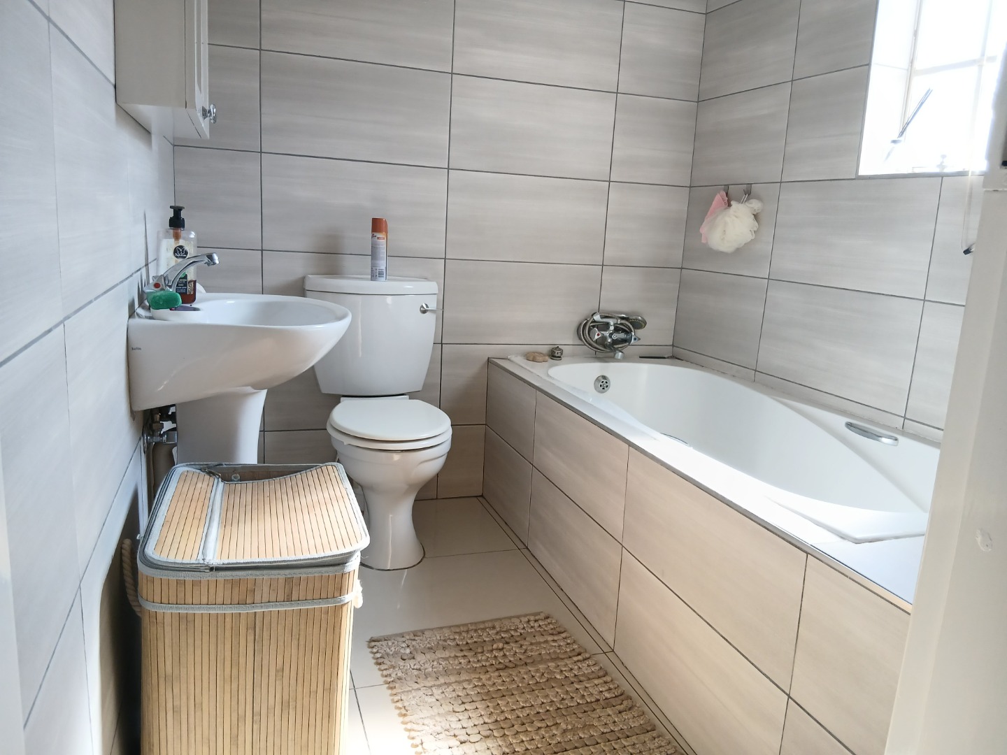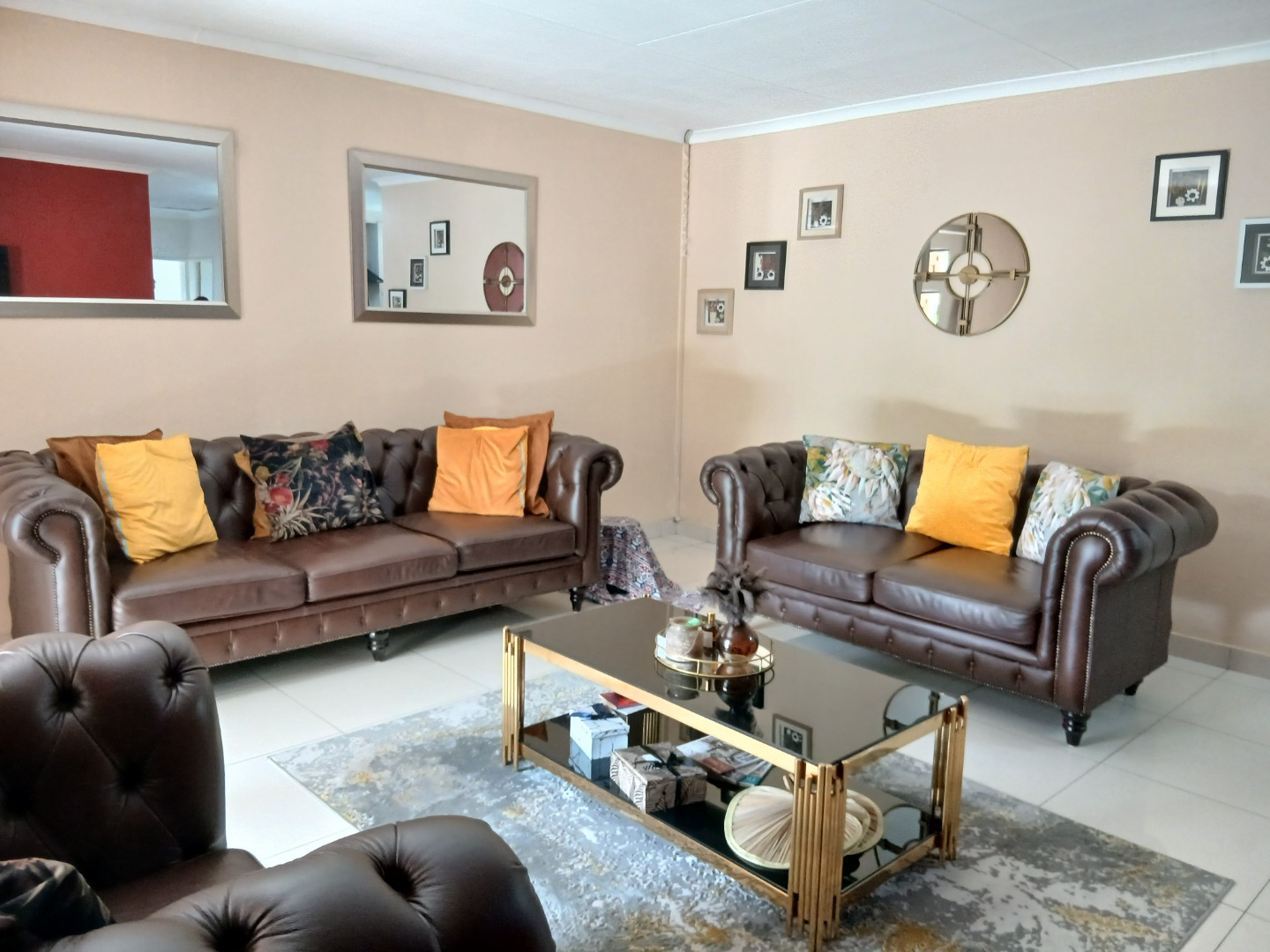 Discover this inviting 3-bedroom, 2-bathroom family home, including one en-suite, situated within a secure gated community in Dalpark Ext 1, Brakpan. The interior features an open-plan living area, seamlessly connecting a comfortable lounge to a modern kitchen. This well-appointed kitchen boasts light wood-look cabinetry, dark countertops, a stylish tiled backsplash, a freestanding gas range, and a practical breakfast bar, ideal for daily living and entertaining. Tiled flooring throughout ensures a clean and cohesive aesthetic. Outside, enjoy a refreshing swimming pool and a lapa, perfect for relaxation and hosting in the established garden. A covered patio offers a shaded retreat, while a double garage and ample covered parking, accessed via a paved driveway, provide convenience. Security is a priority, with the property benefiting from 24-hour security, an alarm system, and security bars on windows. This charming home presents a neat exterior with a beige facade and a practical green shade net carport. Key Features: * 3 Bedrooms, 2 Bathrooms (1 En-suite) * Open-Plan Living & Modern Kitchen * Swimming Pool & Lapa * Double Garage & Covered Parking * Gated Community with 24-Hour Security * Pet-Friendly