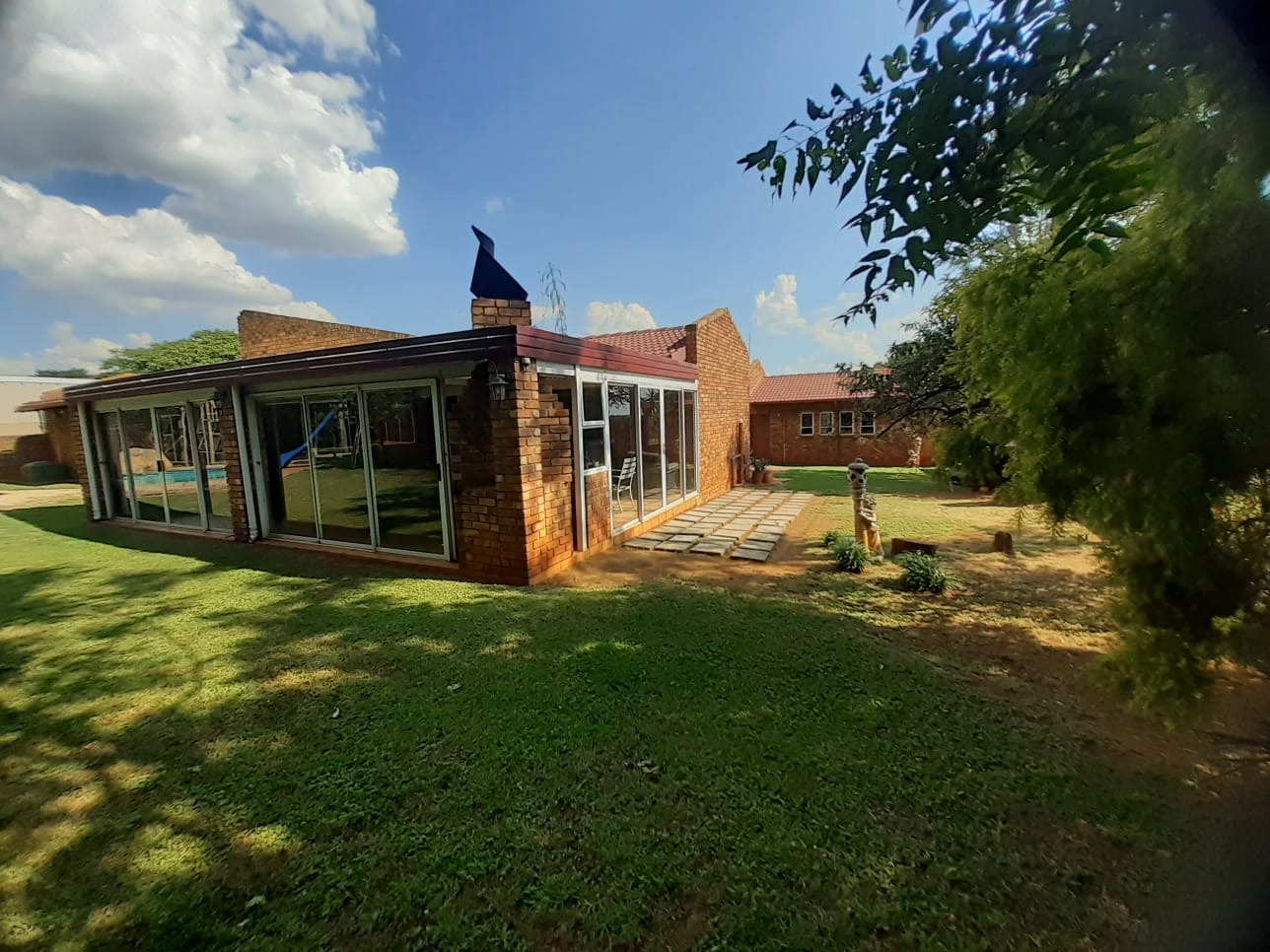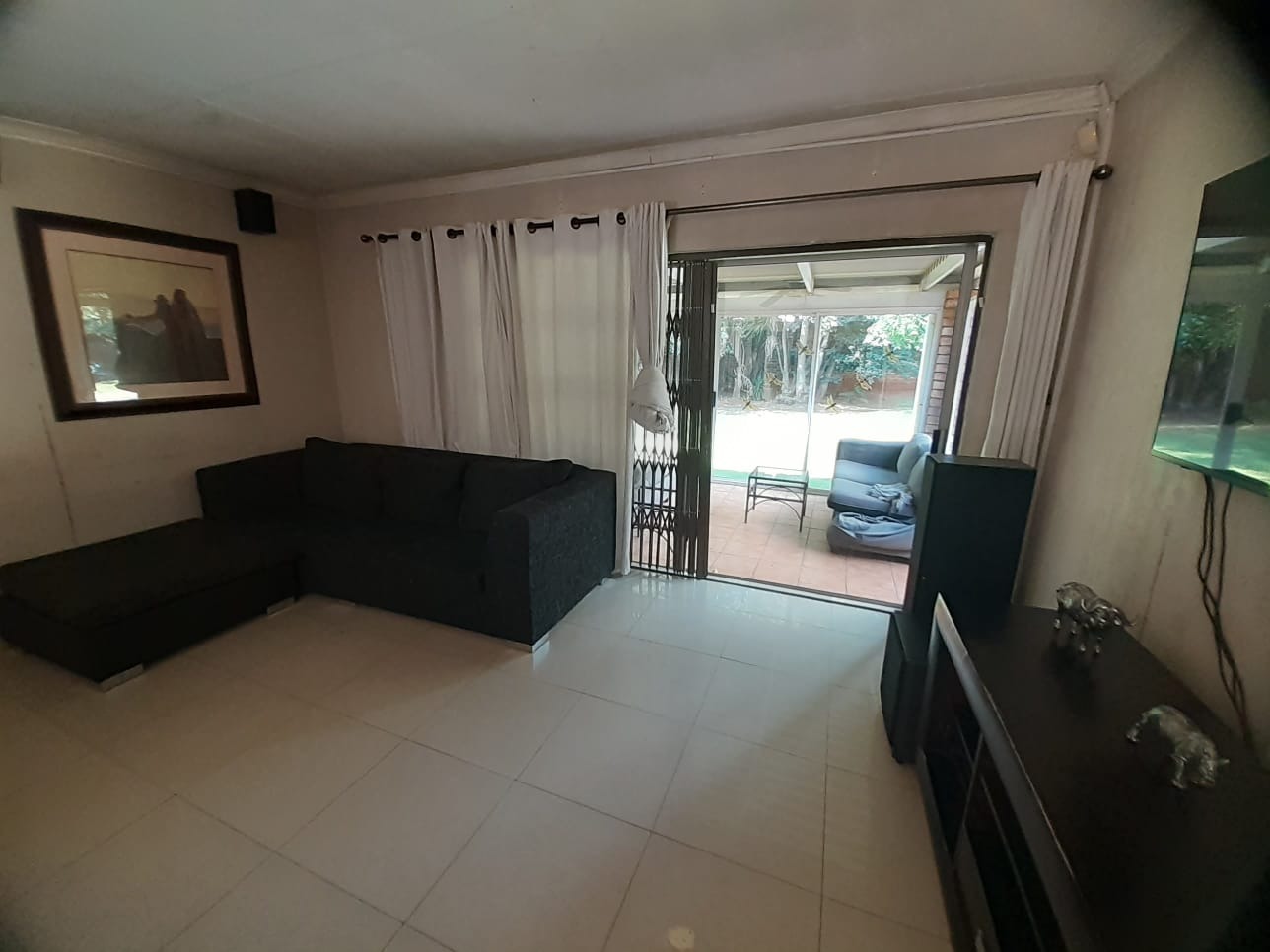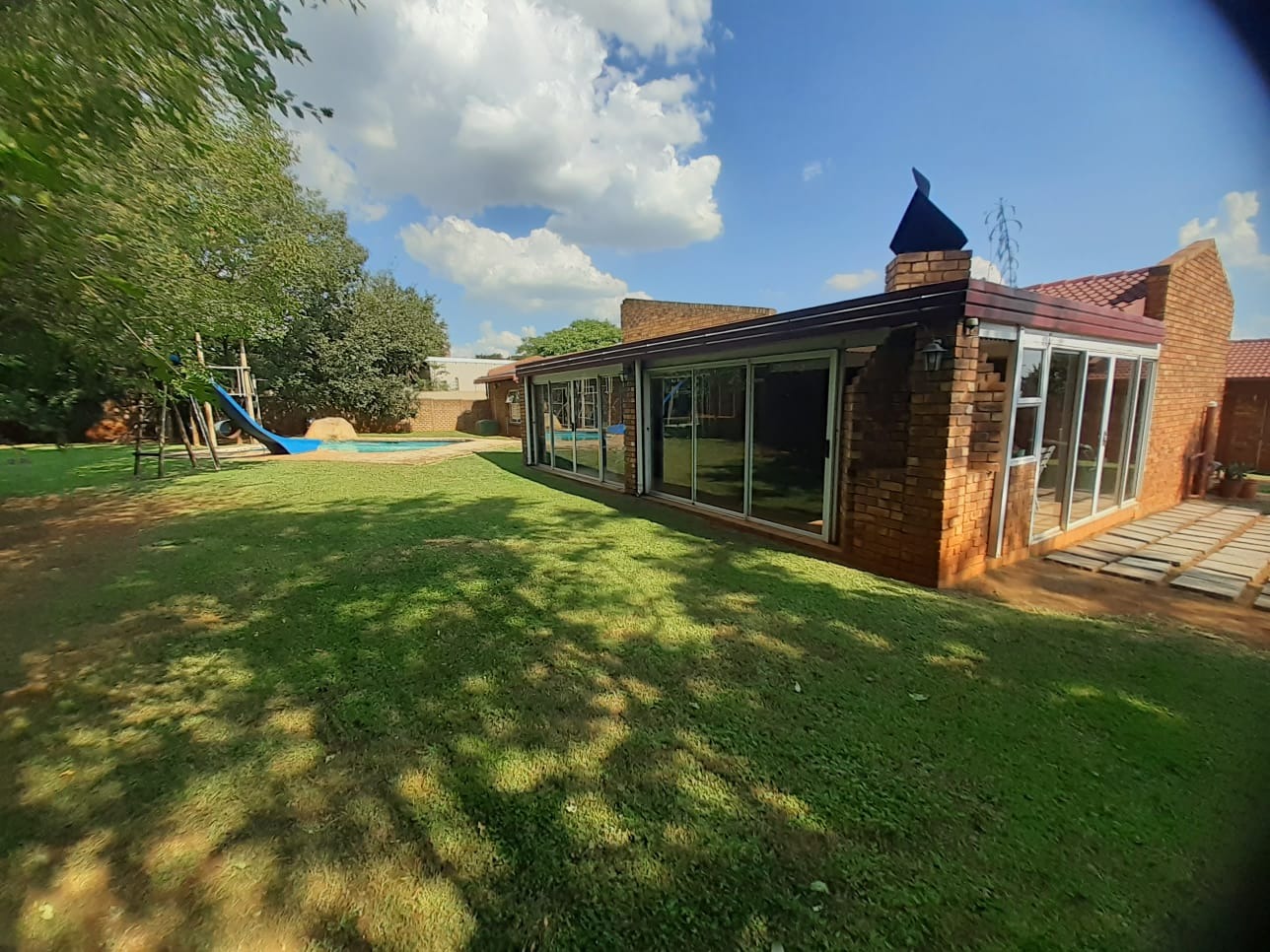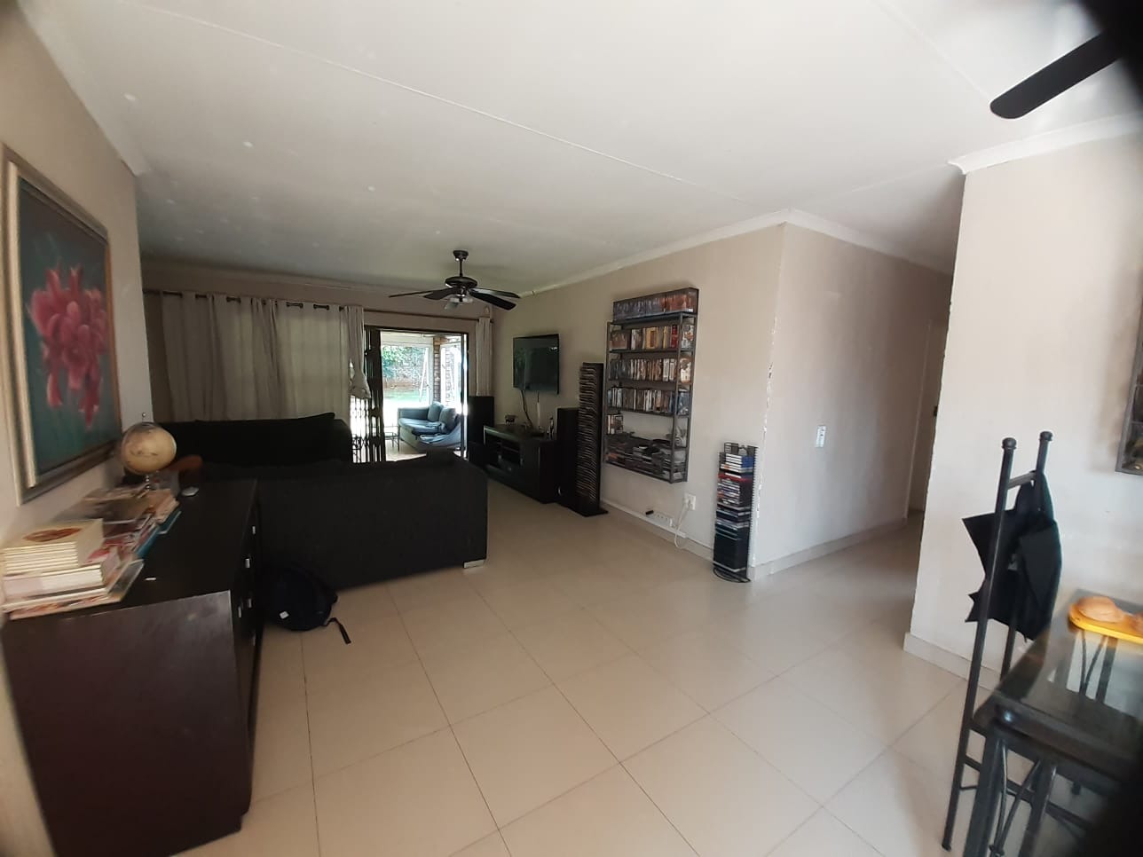 Step inside to find a well-appointed interior featuring tiled flooring throughout, ensuring easy maintenance. The home includes two spacious lounges and a dedicated dining room, providing versatile living areas for relaxation and entertaining. Natural light floods the rooms through large windows, highlighting characterful exposed brick accent walls in the living and dining spaces. The functional kitchen offers extensive light-colored cabinetry,granite tops, and built-in appliances including an oven, and gas hob.