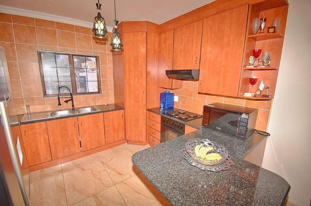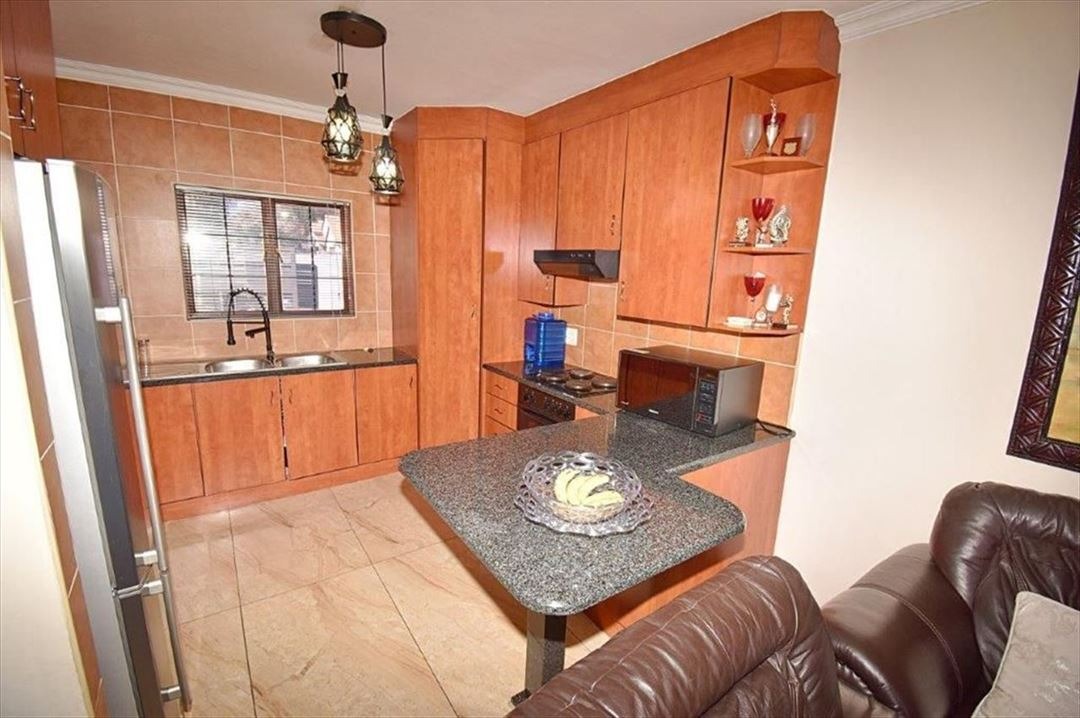 Open plan lounge and kitchen with granite tops, a breakfast counter. 3 Bedrooms. 2 Bathrooms. Main bedroom with an en-suite bathroom. Double garage with automated doors. Double shadenet parking. Private garden. Pets allowed.