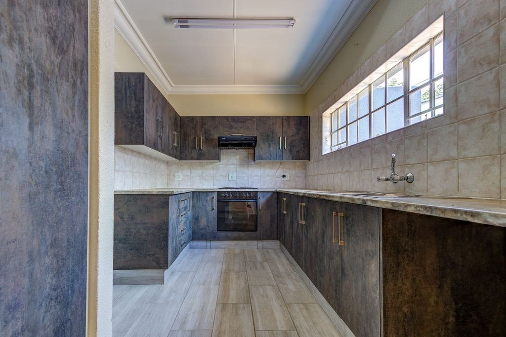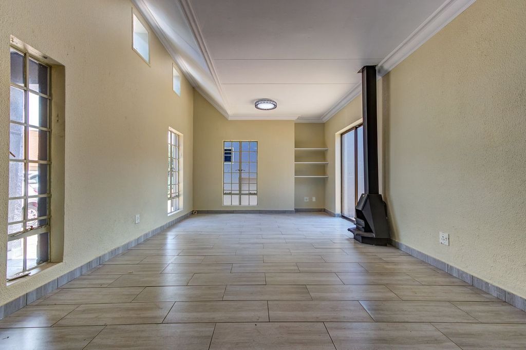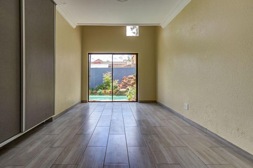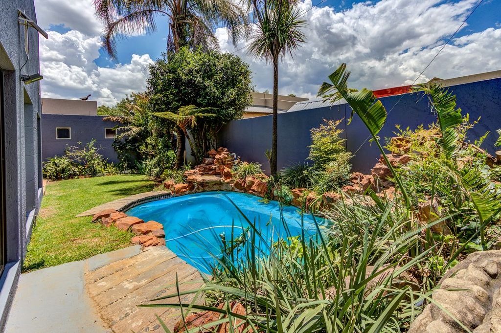 Discover this modern family home situated within a secure estate in Sonneveld, Brakpan. Boasting a contemporary architectural style with clean lines and a dark grey textured exterior, this property offers excellent kerb appeal. A prominent white double garage and an extensive paved driveway provide ample parking and storage, ensuring convenience for residents. The interior features a spacious 197 sqm floor plan, thoughtfully designed with modern, low-maintenance tiled flooring throughout. The bright living areas are enhanced by ample natural light from large windows and sliding glass doors, creating an inviting atmosphere. A functional fireplace adds warmth and character, complemented by built-in shelving and elegant crown molding. The home includes three comfortable bedrooms and two bathrooms, with one being an en-suite, providing privacy and comfort for the family. Air conditioning is also installed for climate control. The well-appointed kitchen showcases modern dark cabinetry, integrated oven, hob, and extractor fan, catering to all culinary needs. Sliding glass doors seamlessly connect the indoor living spaces to a private, tropical-themed backyard. Here, a uniquely shaped swimming pool with natural rock features and lush greenery offers a secluded oasis for relaxation and entertainment. The property also benefits from a built-in braai, perfect for outdoor gatherings, and allows pets. Additional practical features include outside toilets and fibre connectivity. Located in the desirable Sonneveld area, this home provides a secure and tranquil living environment within a security estate, complete with a security post. Sonneveld offers a balanced lifestyle with convenient access to local amenities and a strong community feel. Key Features: * 3 Bedrooms, 2 Bathrooms (1 En-suite) * Modern Kitchen with Built-in Appliances * Spacious Lounge with Fireplace and Air Conditioning * Private Tropical Backyard with Pool * Double Garage and Paved Driveway * Built-in Braai and Outside Toilets * Fibre Connectivity * Located in a Secure Estate