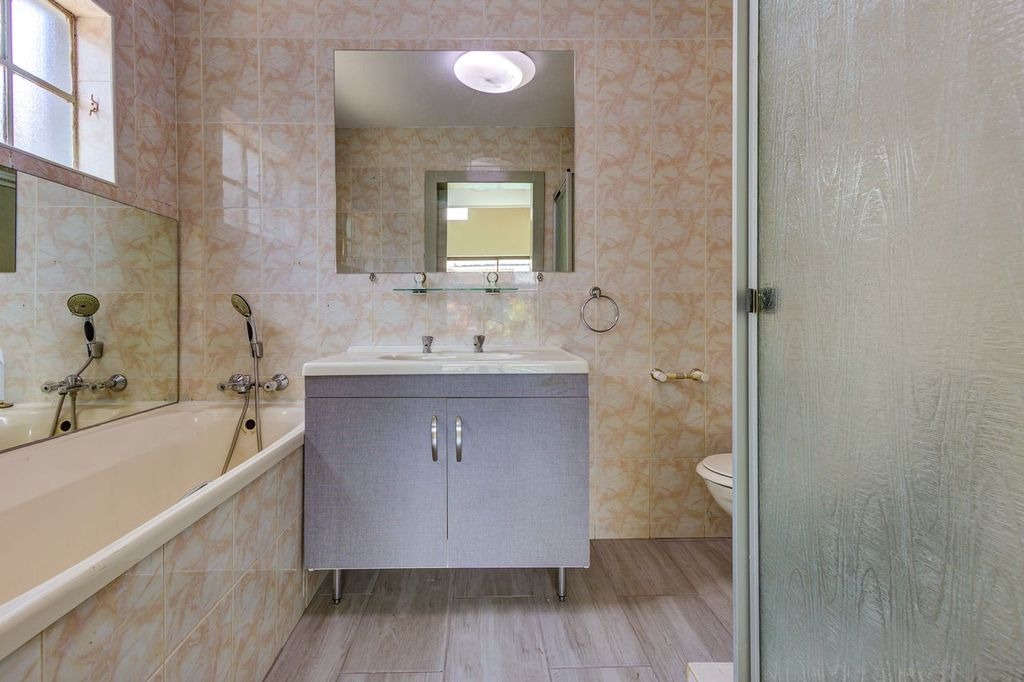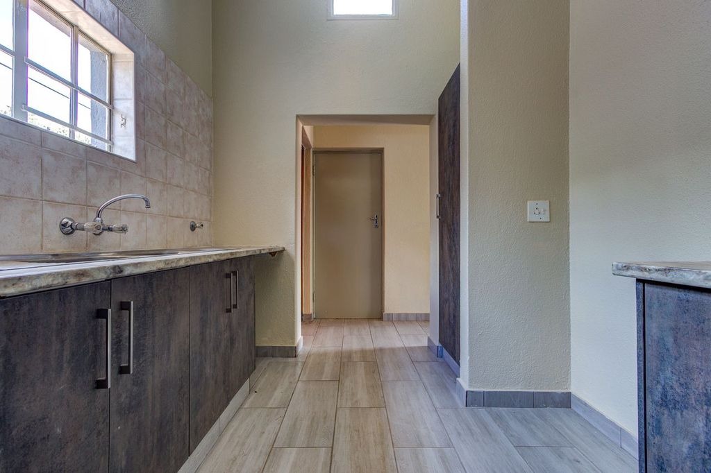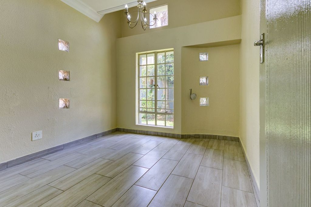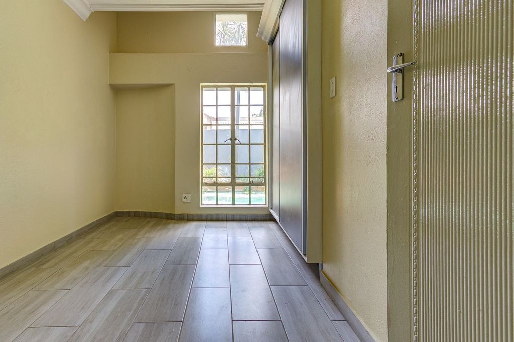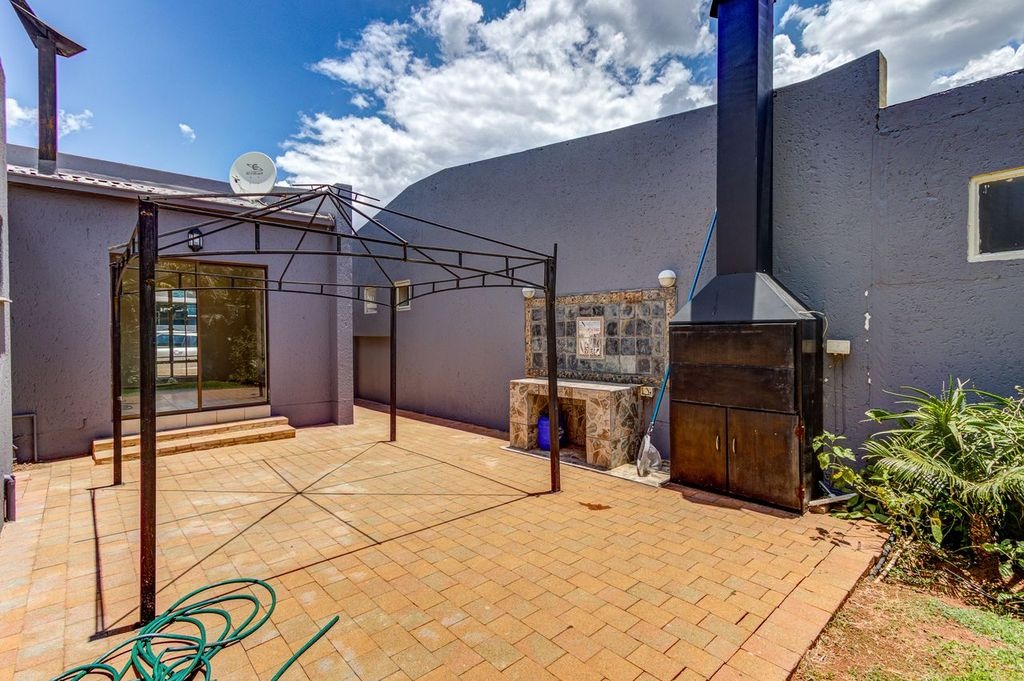 Discover this modern family home situated within a secure estate in Sonneveld, Brakpan. Boasting a contemporary architectural style with clean lines and a dark grey textured exterior, this property offers excellent kerb appeal. A prominent white double garage and an extensive paved driveway provide ample parking and storage, ensuring convenience for residents. The interior features a spacious 197 sqm floor plan, thoughtfully designed with modern, low-maintenance tiled flooring throughout. The bright living areas are enhanced by ample natural light from large windows and sliding glass doors, creating an inviting atmosphere. A functional fireplace adds warmth and character, complemented by built-in shelving and elegant crown molding. The home includes three comfortable bedrooms and two bathrooms, with one being an en-suite, providing privacy and comfort for the family. Air conditioning is also installed for climate control. The well-appointed kitchen showcases modern dark cabinetry, integrated oven, hob, and extractor fan, catering to all culinary needs. Sliding glass doors seamlessly connect the indoor living spaces to a private, tropical-themed backyard. Here, a uniquely shaped swimming pool with natural rock features and lush greenery offers a secluded oasis for relaxation and entertainment. The property also benefits from a built-in braai, perfect for outdoor gatherings, and allows pets. Additional practical features include outside toilets and fibre connectivity. Located in the desirable Sonneveld area, this home provides a secure and tranquil living environment within a security estate, complete with a security post. Sonneveld offers a balanced lifestyle with convenient access to local amenities and a strong community feel. Key Features: * 3 Bedrooms, 2 Bathrooms (1 En-suite) * Modern Kitchen with Built-in Appliances * Spacious Lounge with Fireplace and Air Conditioning * Private Tropical Backyard with Pool * Double Garage and Paved Driveway * Built-in Braai and Outside Toilets * Fibre Connectivity * Located in a Secure Estate
