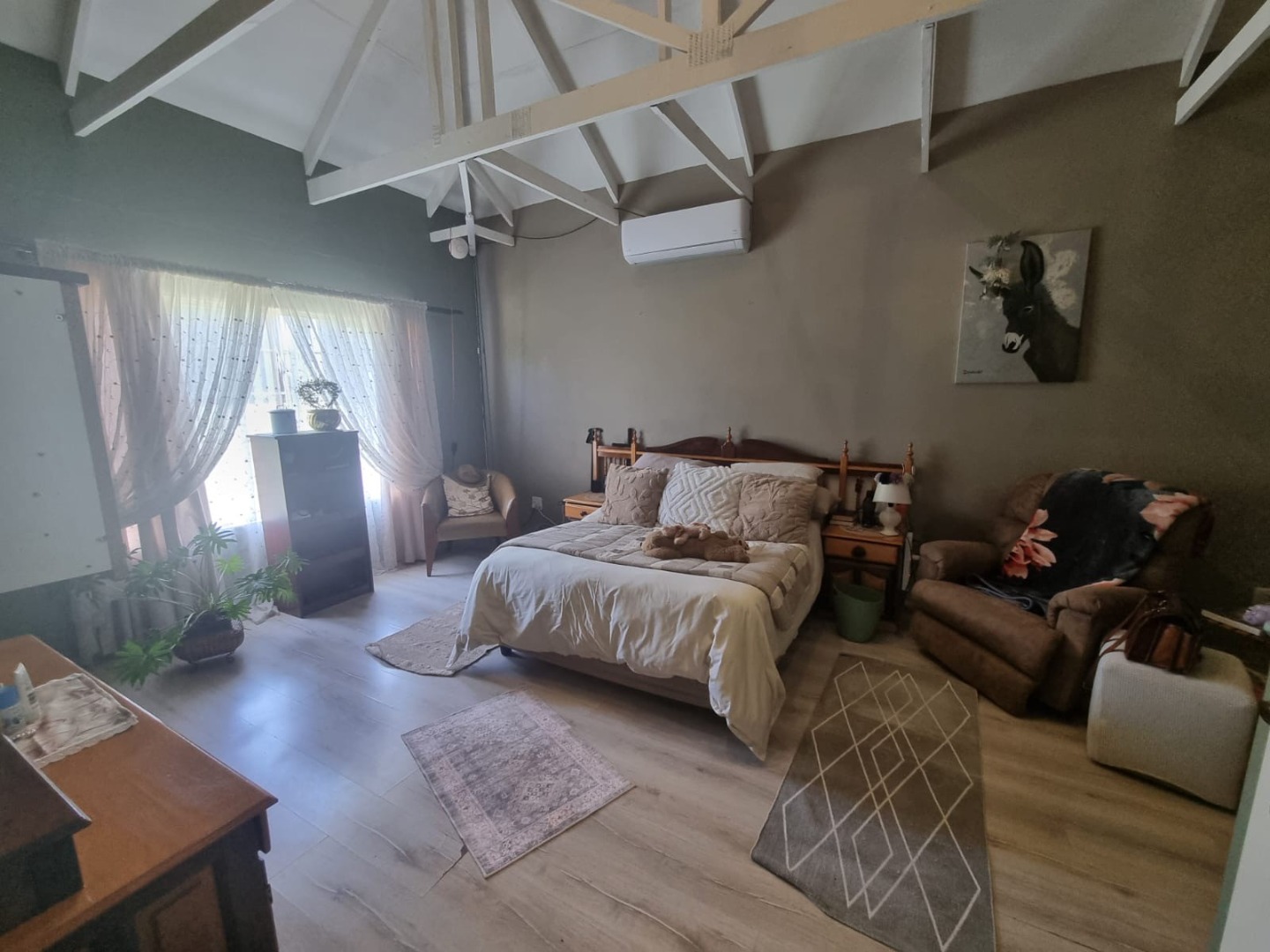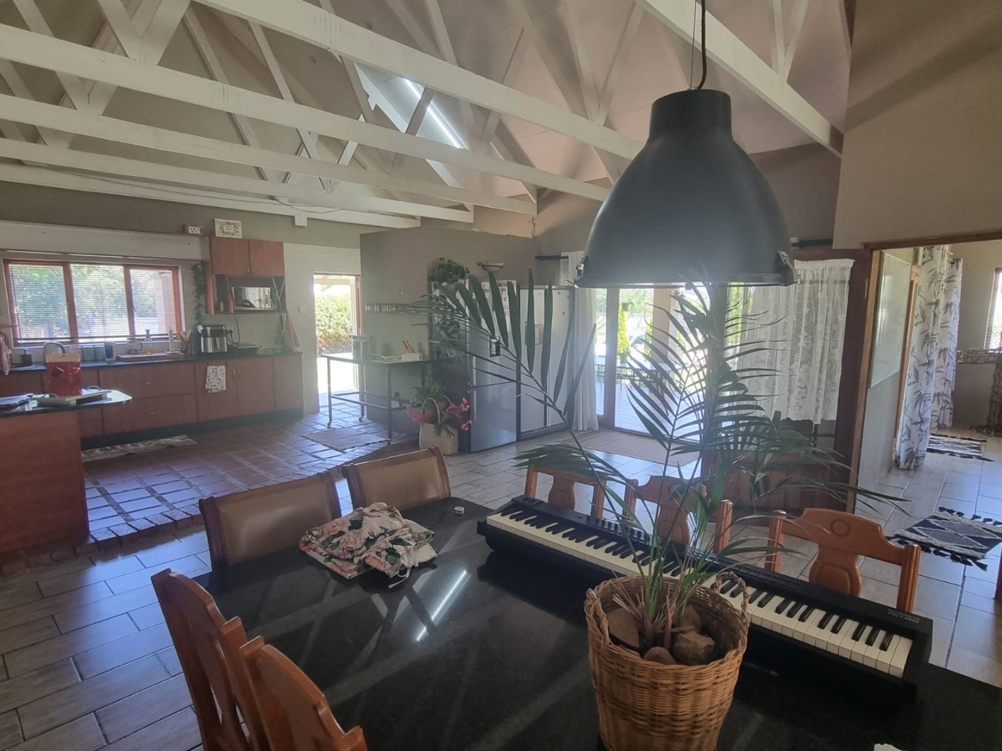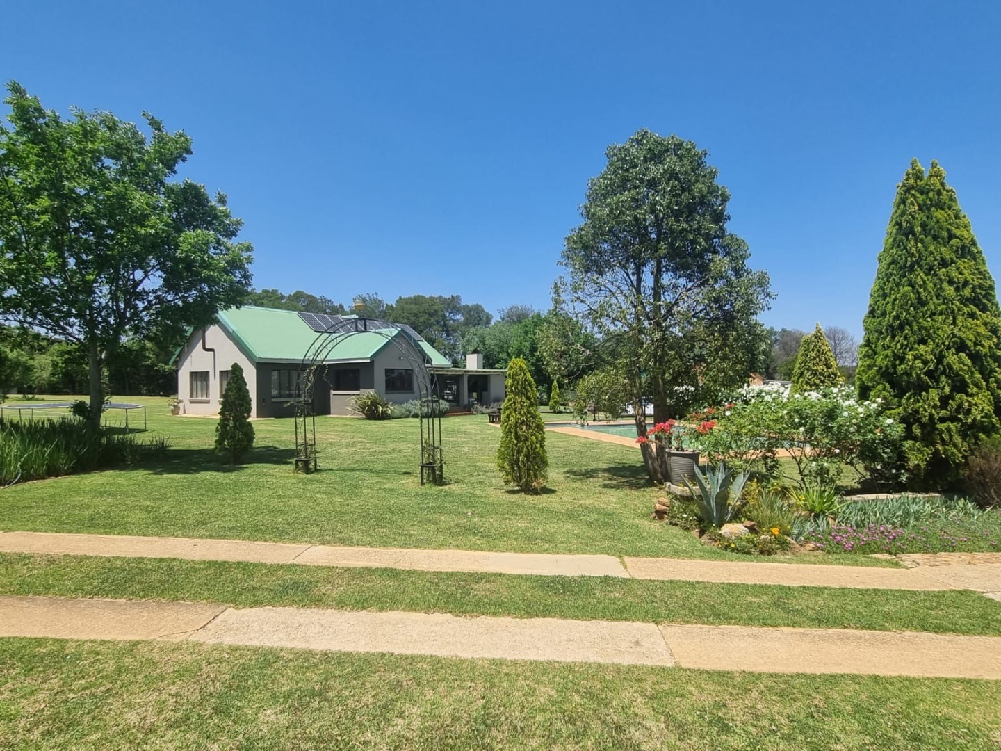 Discover this expansive lifestyle farm property located in Nestpark AH, Bronkhorstspruit, offering a blend of spacious living and outdoor amenities. This substantial residence spans 579.00 sqm on a generous 22000.00 sqm erf, providing ample room for comfortable family life and entertaining. The interior features a well-appointed layout with four bedrooms and three bathrooms, complemented by a convenient guest toilet. The home includes a dedicated study, a welcoming entrance hall, a spacious lounge, and a dining room, all designed with an open-plan flow. Practical elements such as a pantry, laundry room, wood ceilings, and special lighting enhance the living experience. Step outside to embrace the impressive outdoor offerings. The property boasts a private swimming pool, perfect for relaxation and recreation. An inviting covered patio with a built-in braai provides an ideal setting for outdoor dining and social gatherings. With two garages and six additional parking spaces, including a driveway, there is abundant secure parking for residents and guests. The large, well-maintained grounds feature mature trees, creating a serene and private environment. Security is well-addressed with an alarm system, access gate, and a totally walled perimeter, ensuring peace of mind. The property also benefits from a borehole and water tanks, contributing to water resilience. This lifestyle farm offers a unique opportunity for those seeking a spacious home with extensive outdoor features in a tranquil setting. Key Features: * 4 Bedrooms, 3 Bathrooms * Guest Toilet & Study * Lounge, Dining Room, Kitchen, Pantry * Private Swimming Pool * Covered Patio with Built-in Braai * 2 Garages, 6 Parking Spaces * Borehole & Water Tanks * Alarm System & Access Gate * Totally Walled Property * Wood Ceilings & Special Lights